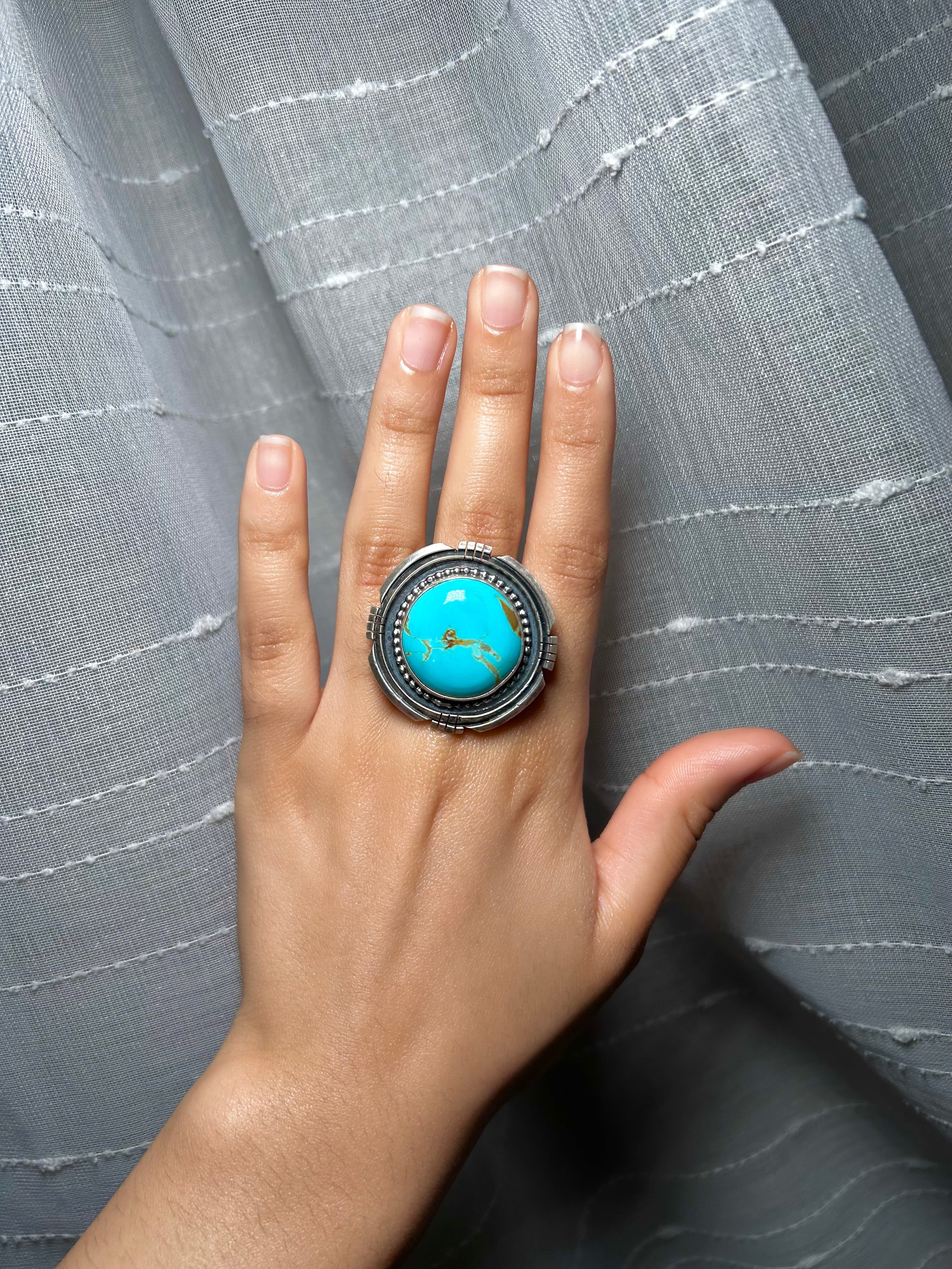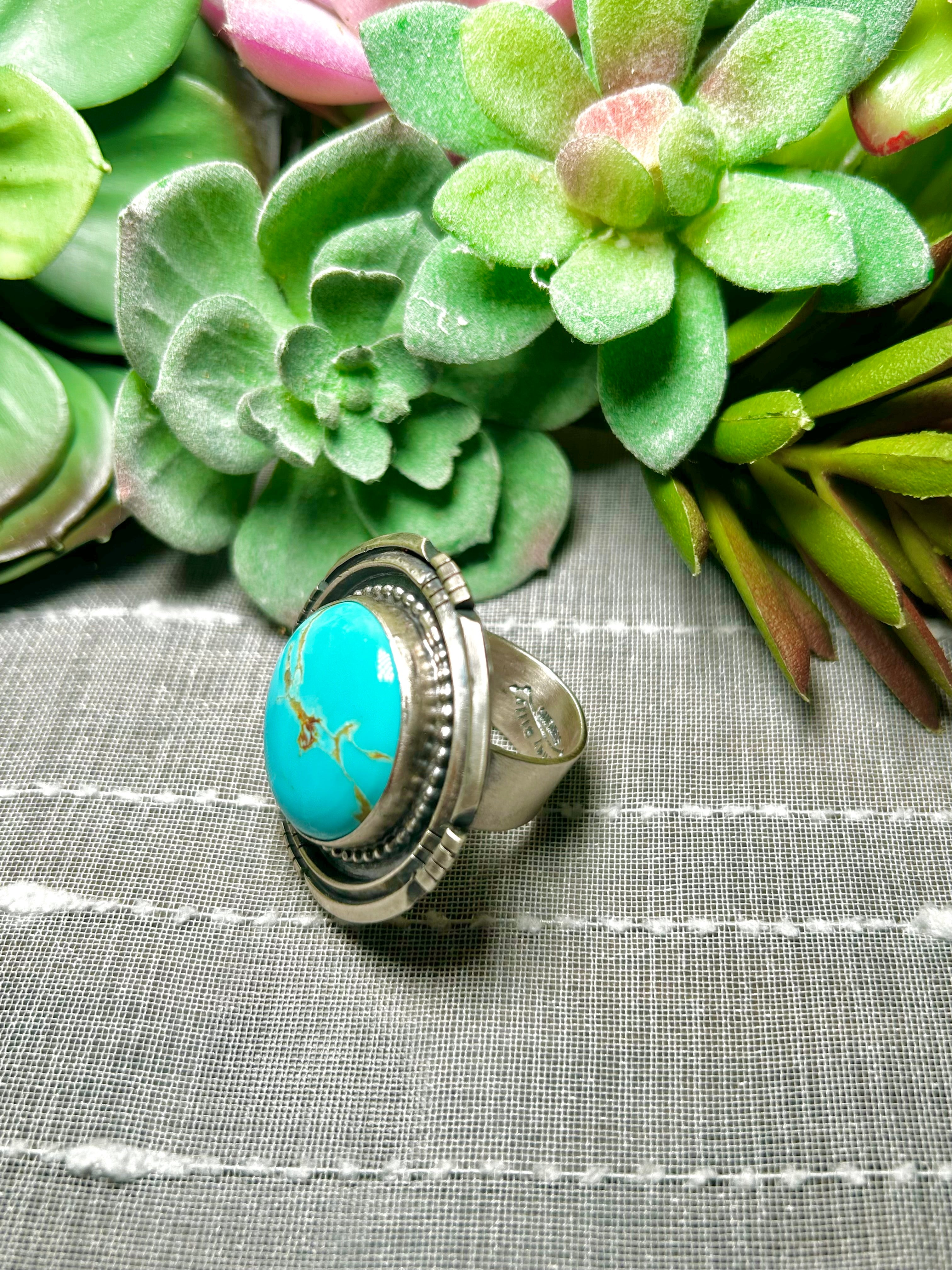 Navajo Made Kingman Turquoise & Sterling Silver Ring Size 8.25