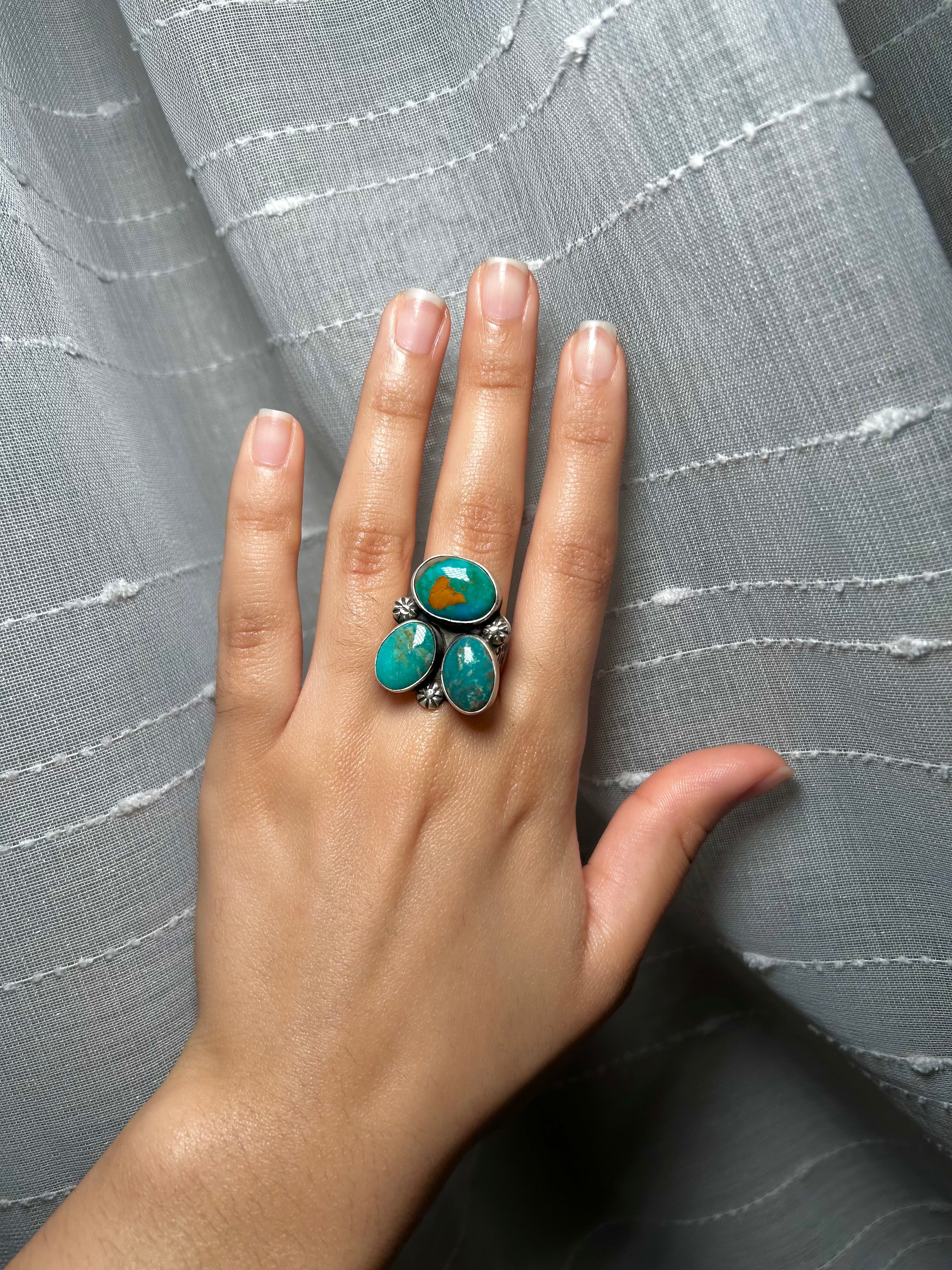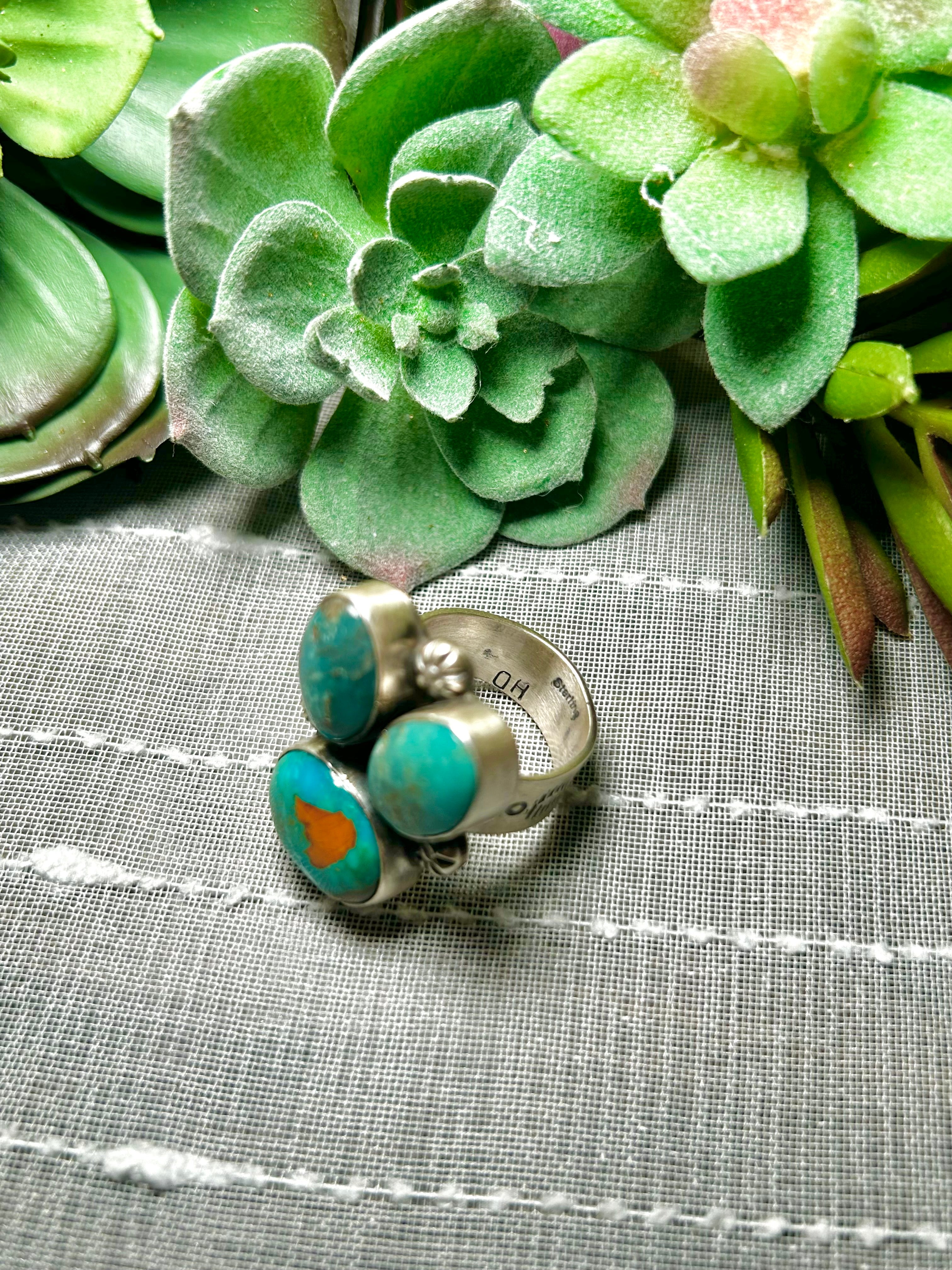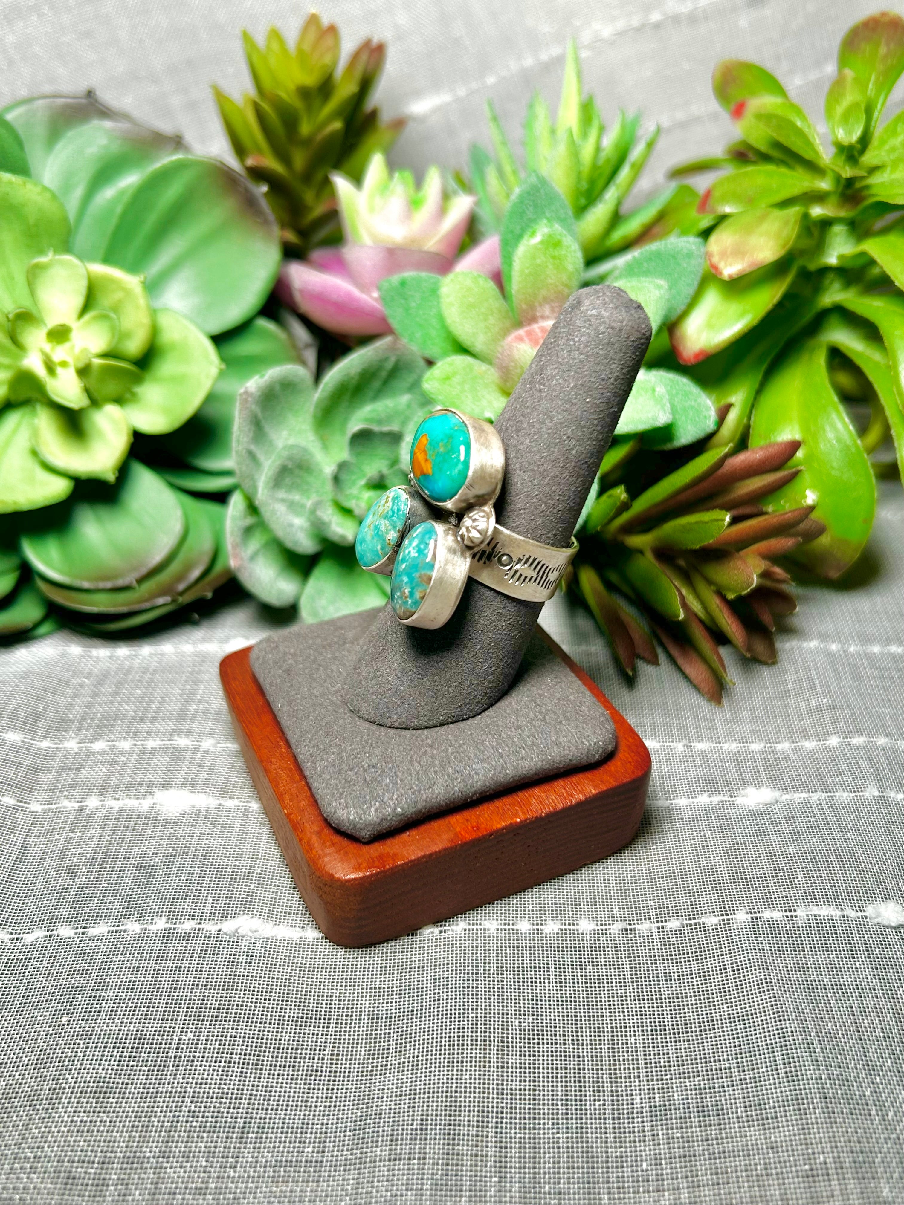 Navajo Made Kingman Turquoise & Sterling Silver Ring Size 8.25