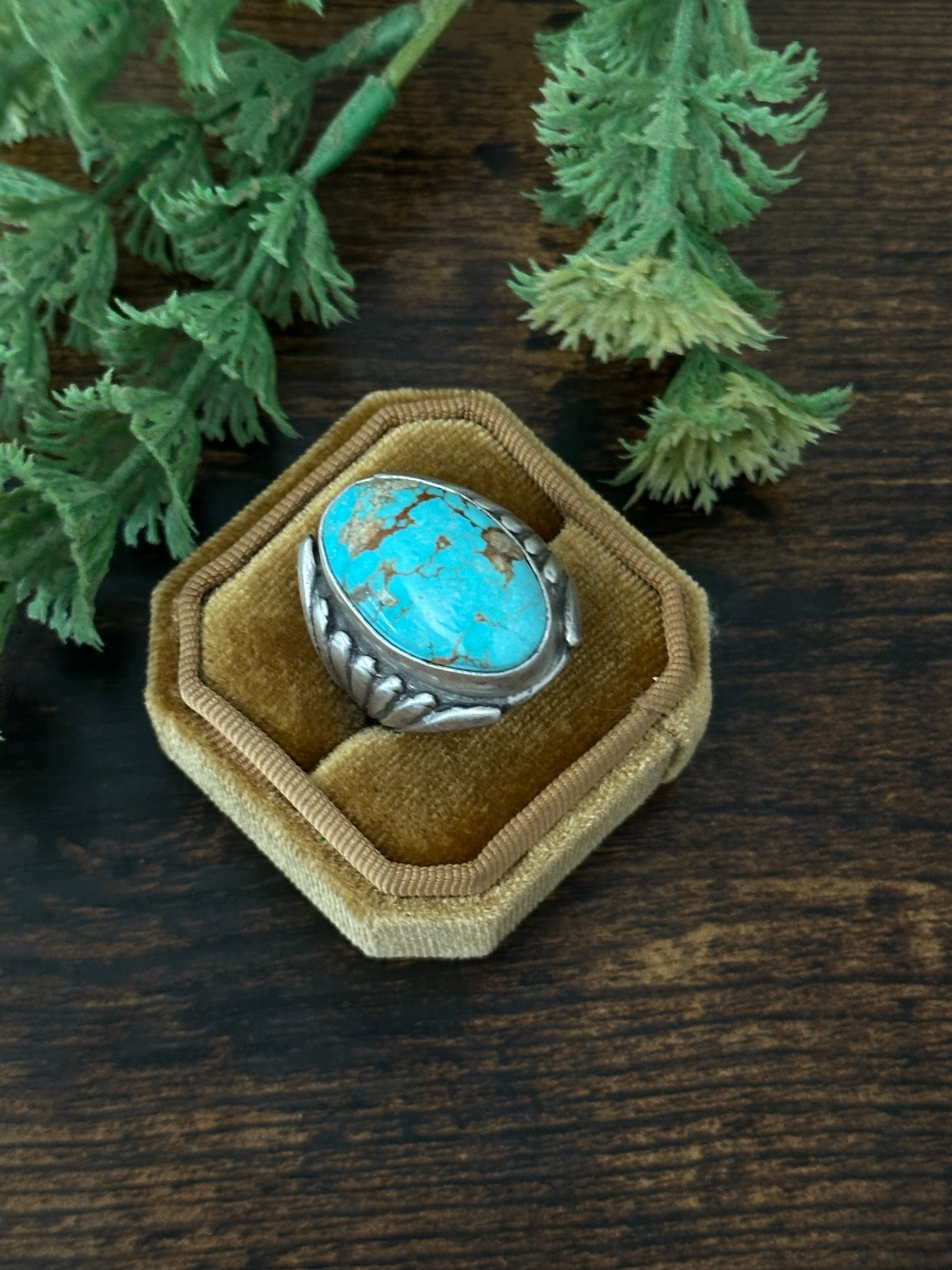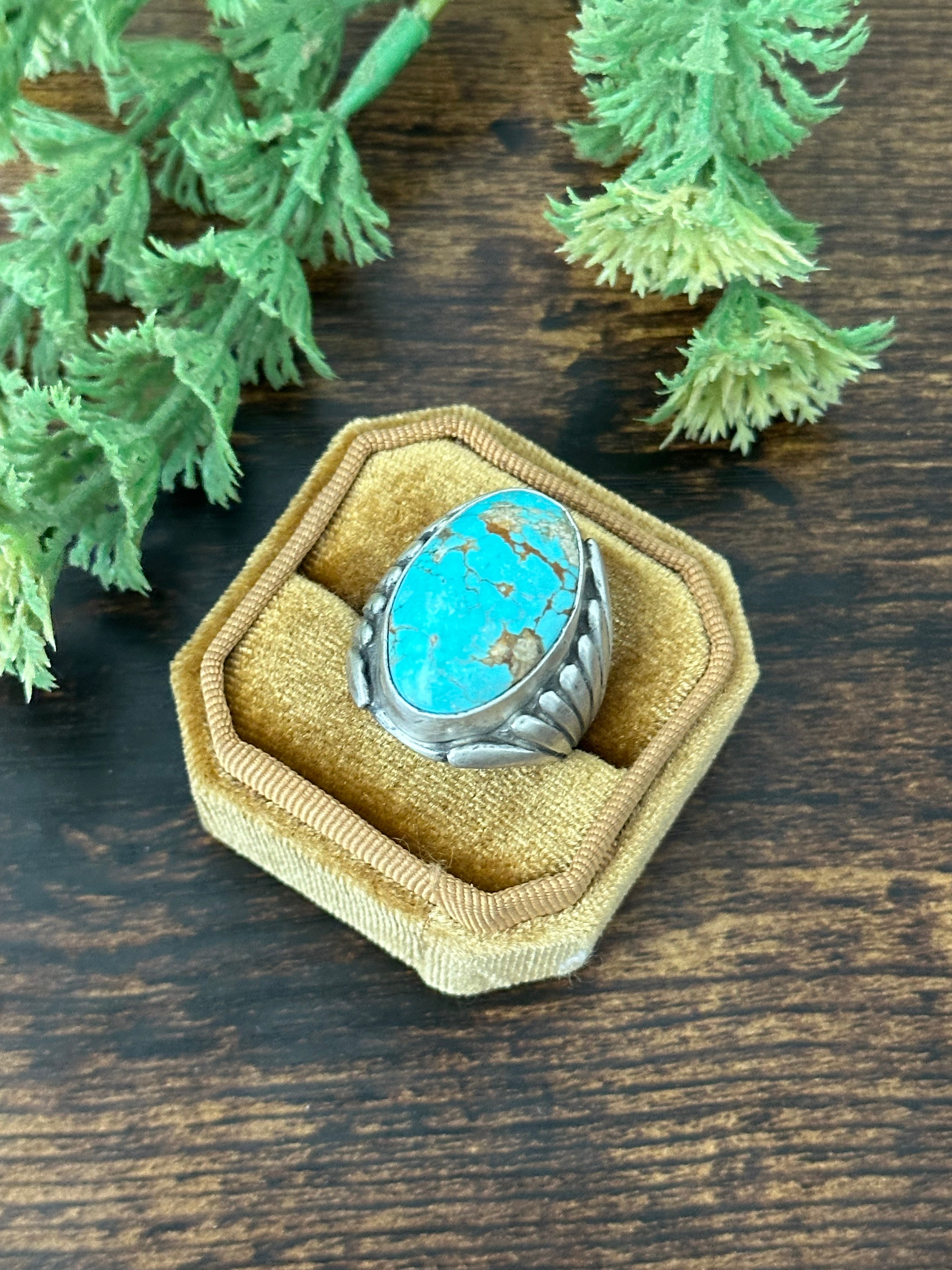 Navajo Made Kingman Turquoise & Sterling Silver Ring Size 9.5