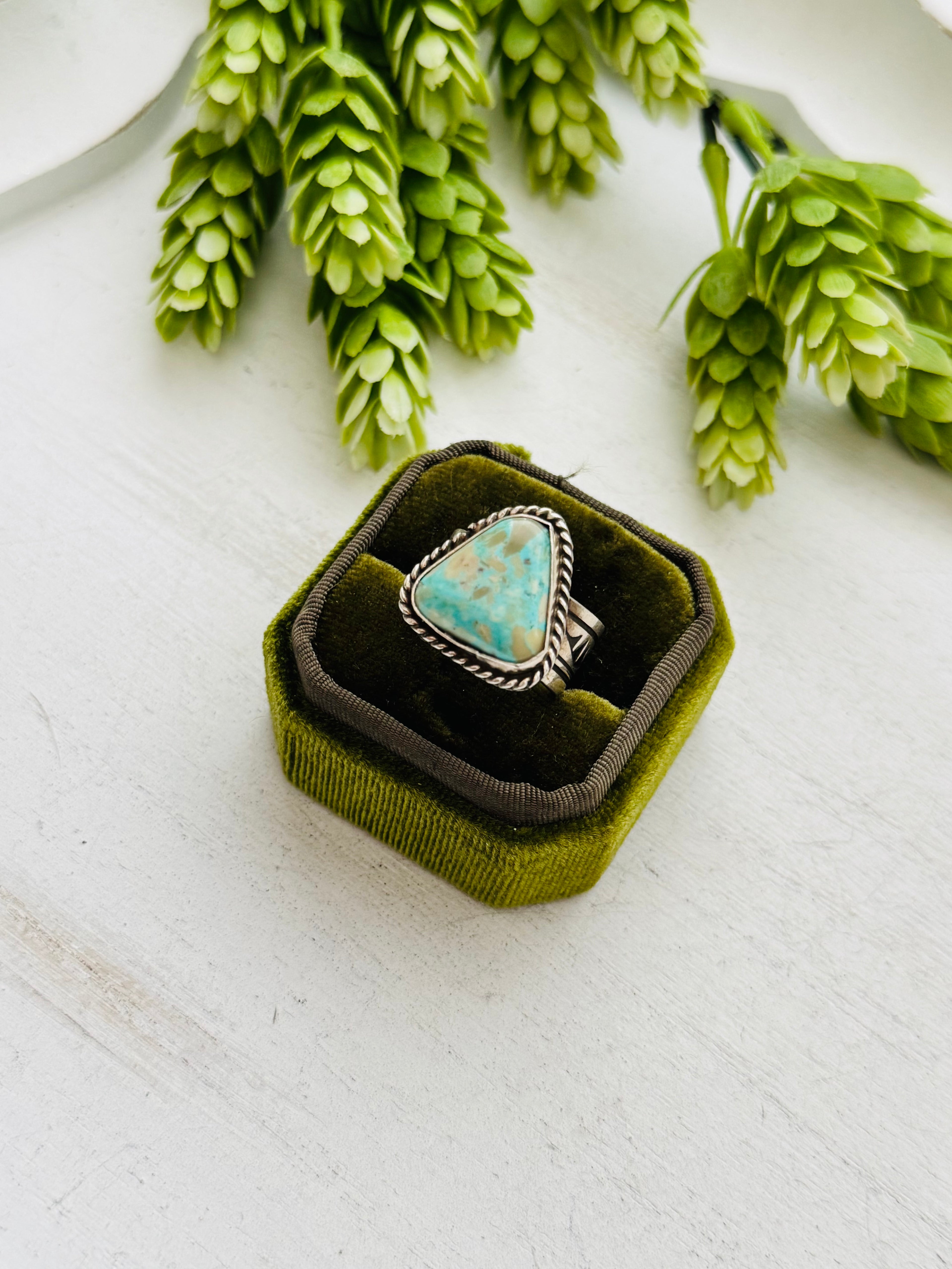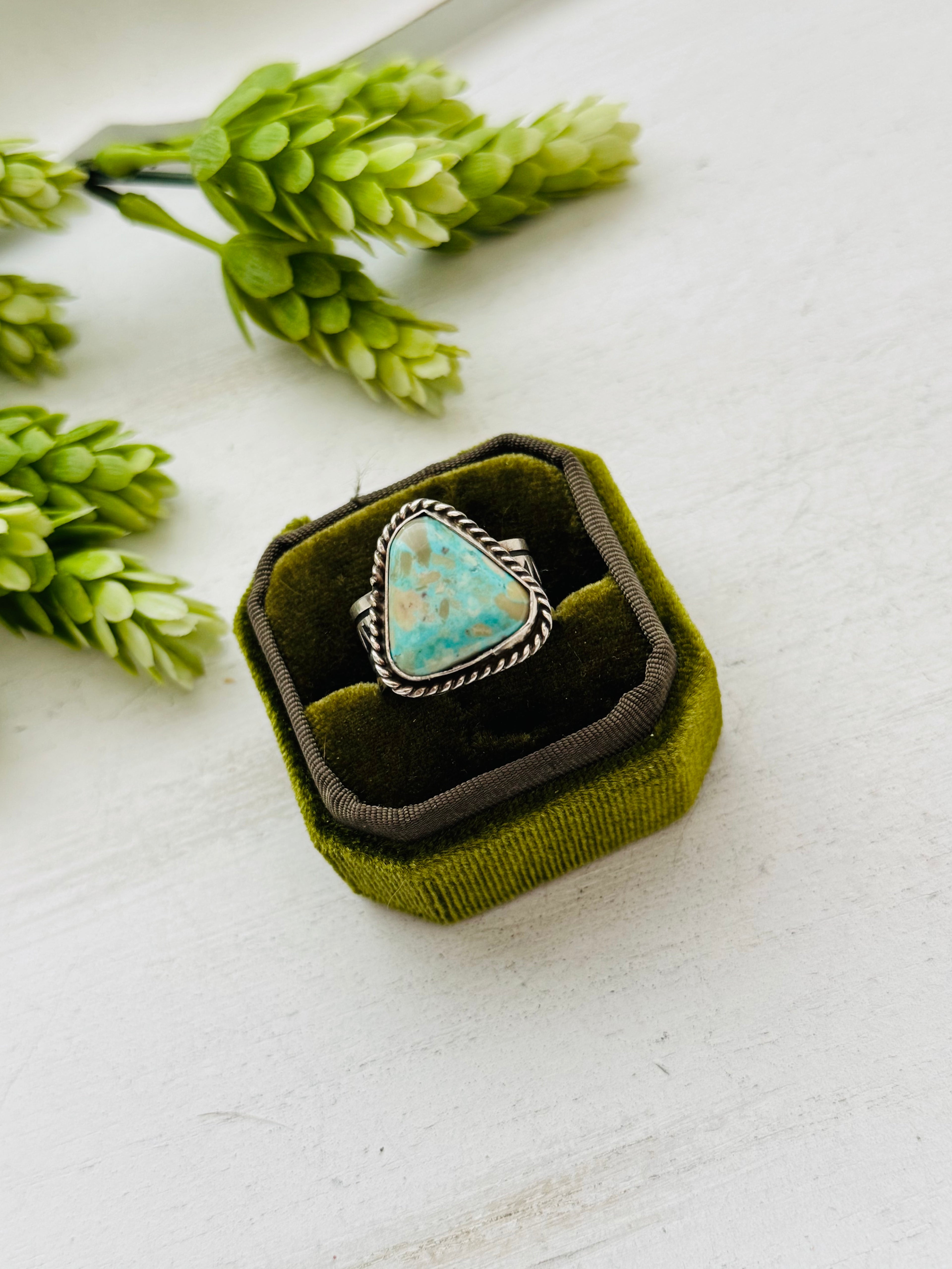 Navajo Made Kingman Turquoise & Sterling Sliver Ring Size 9