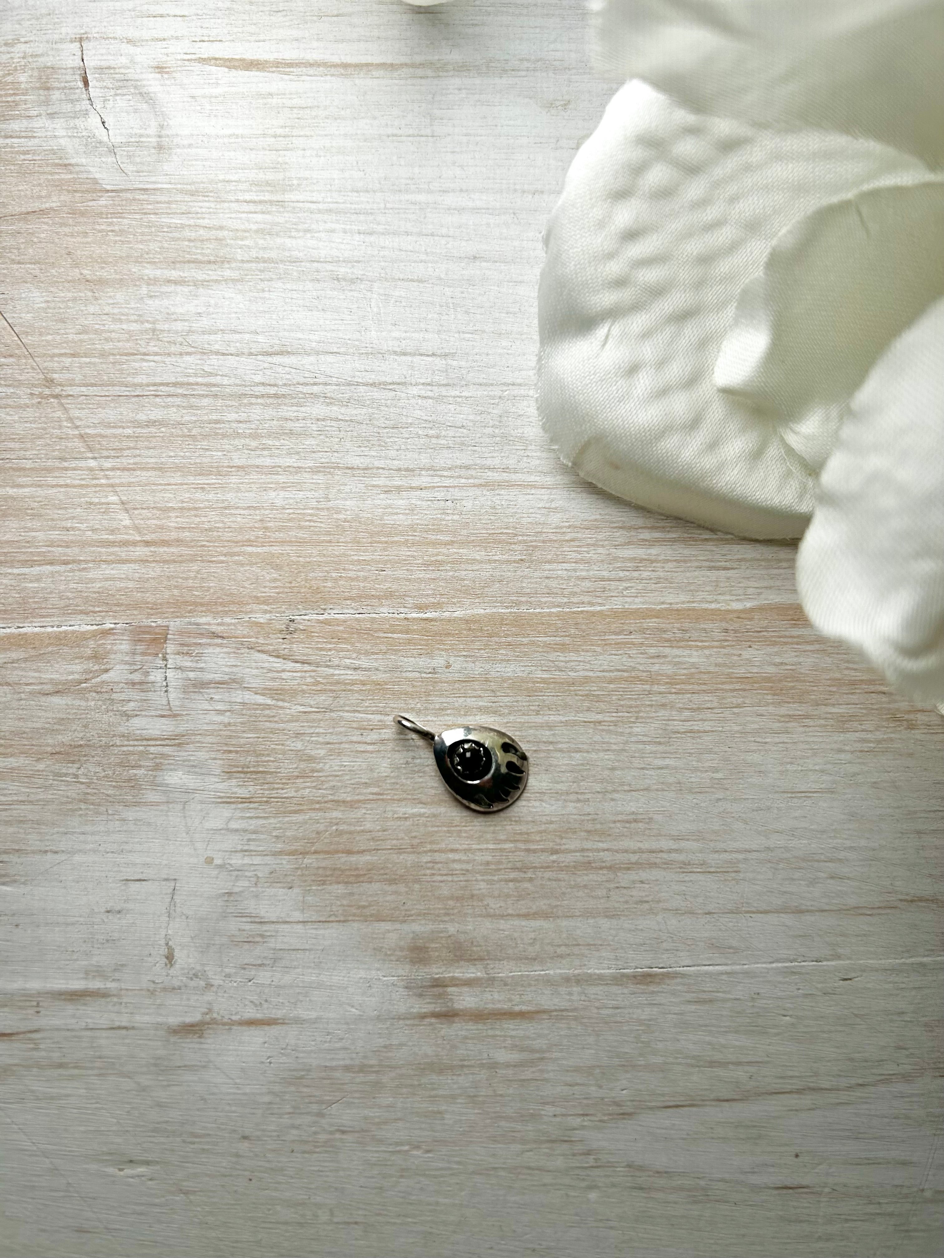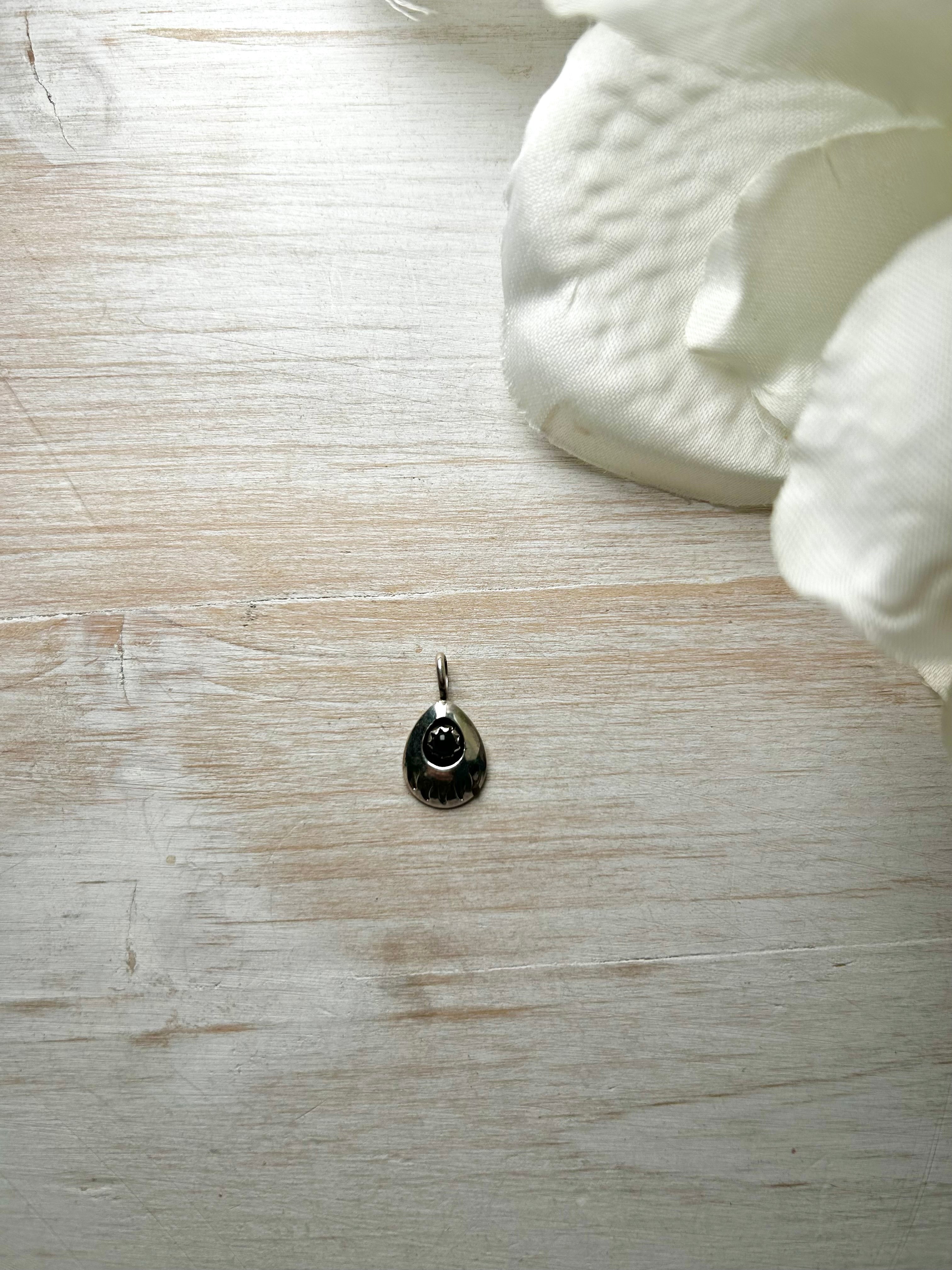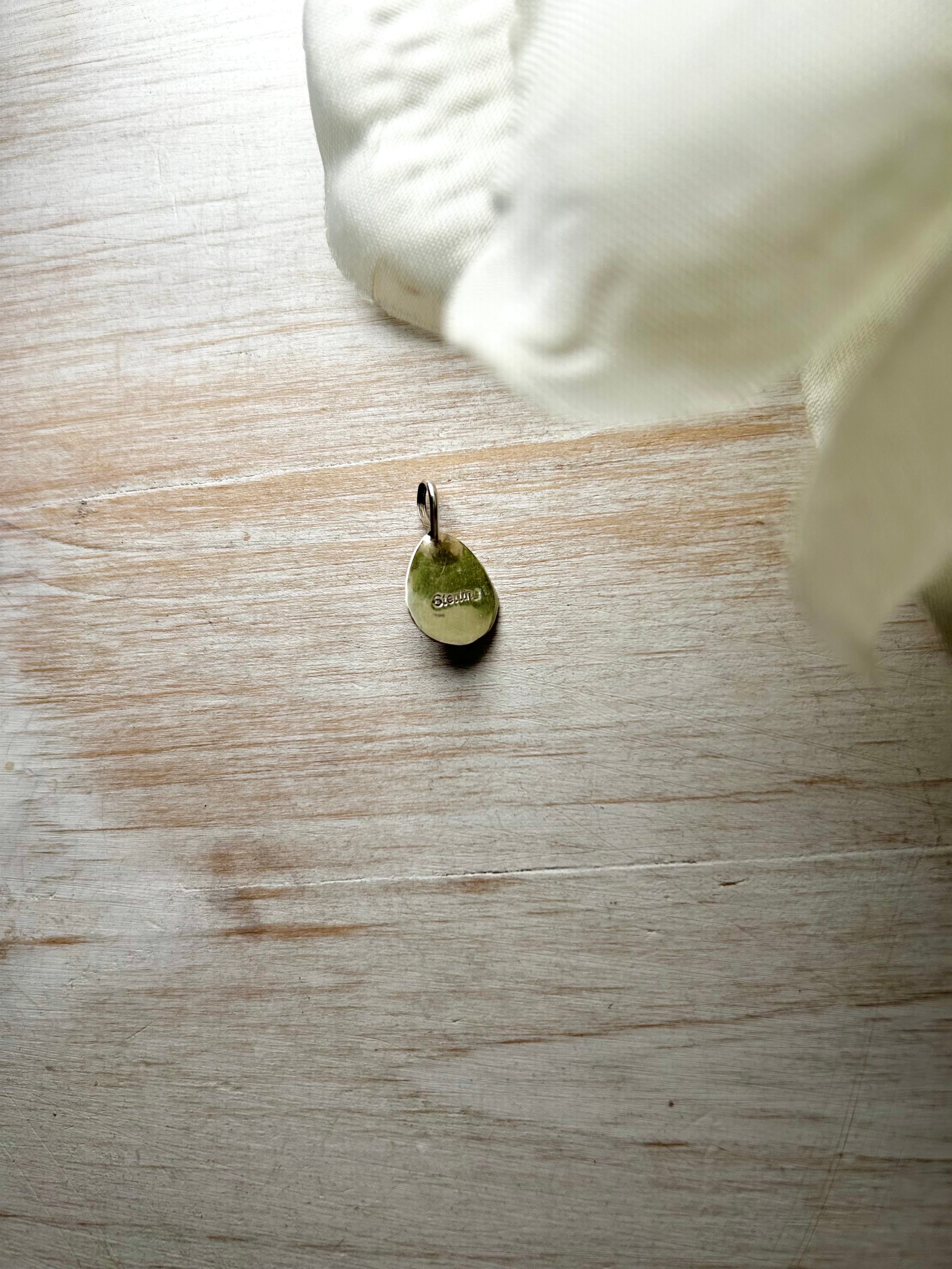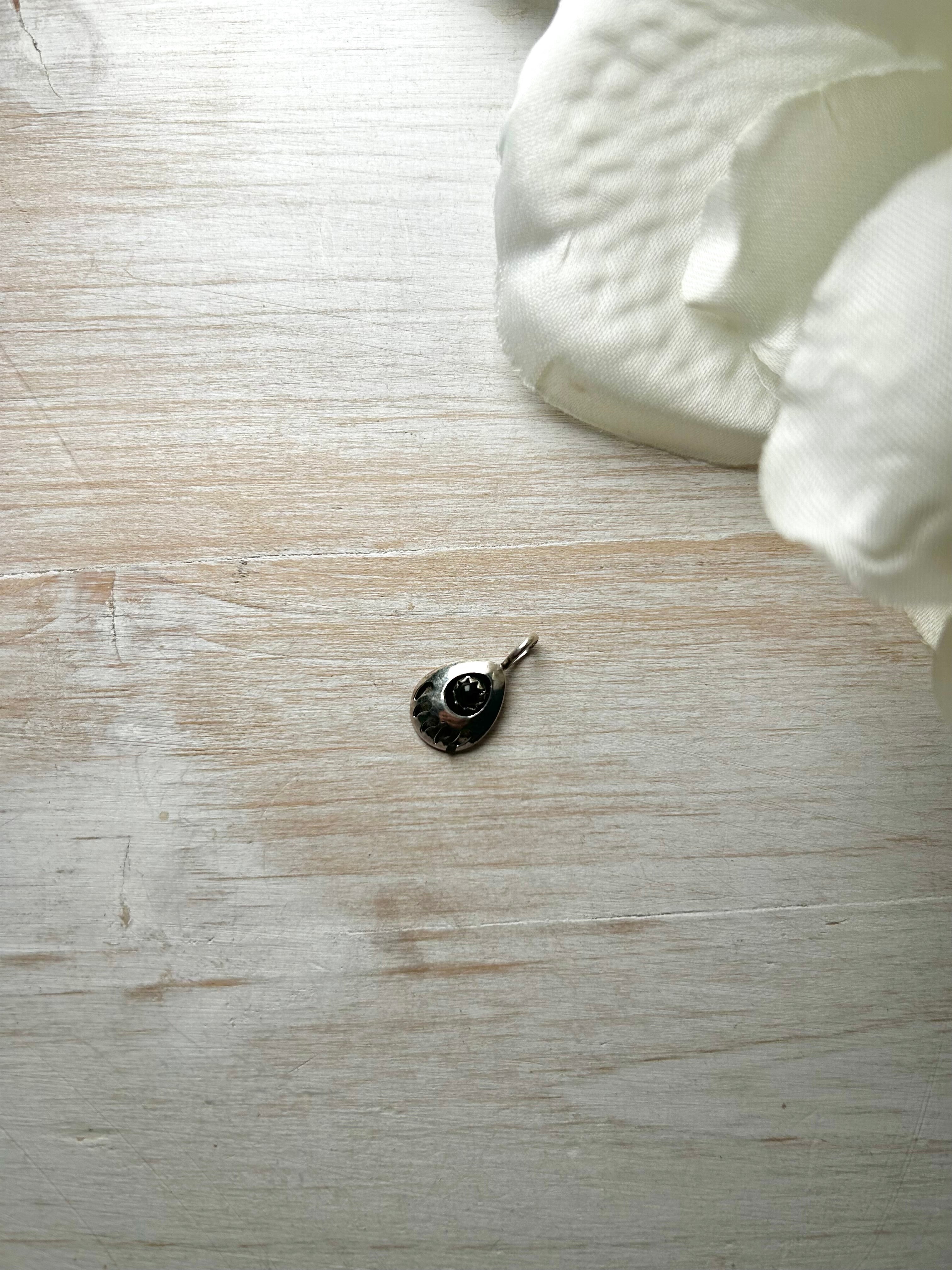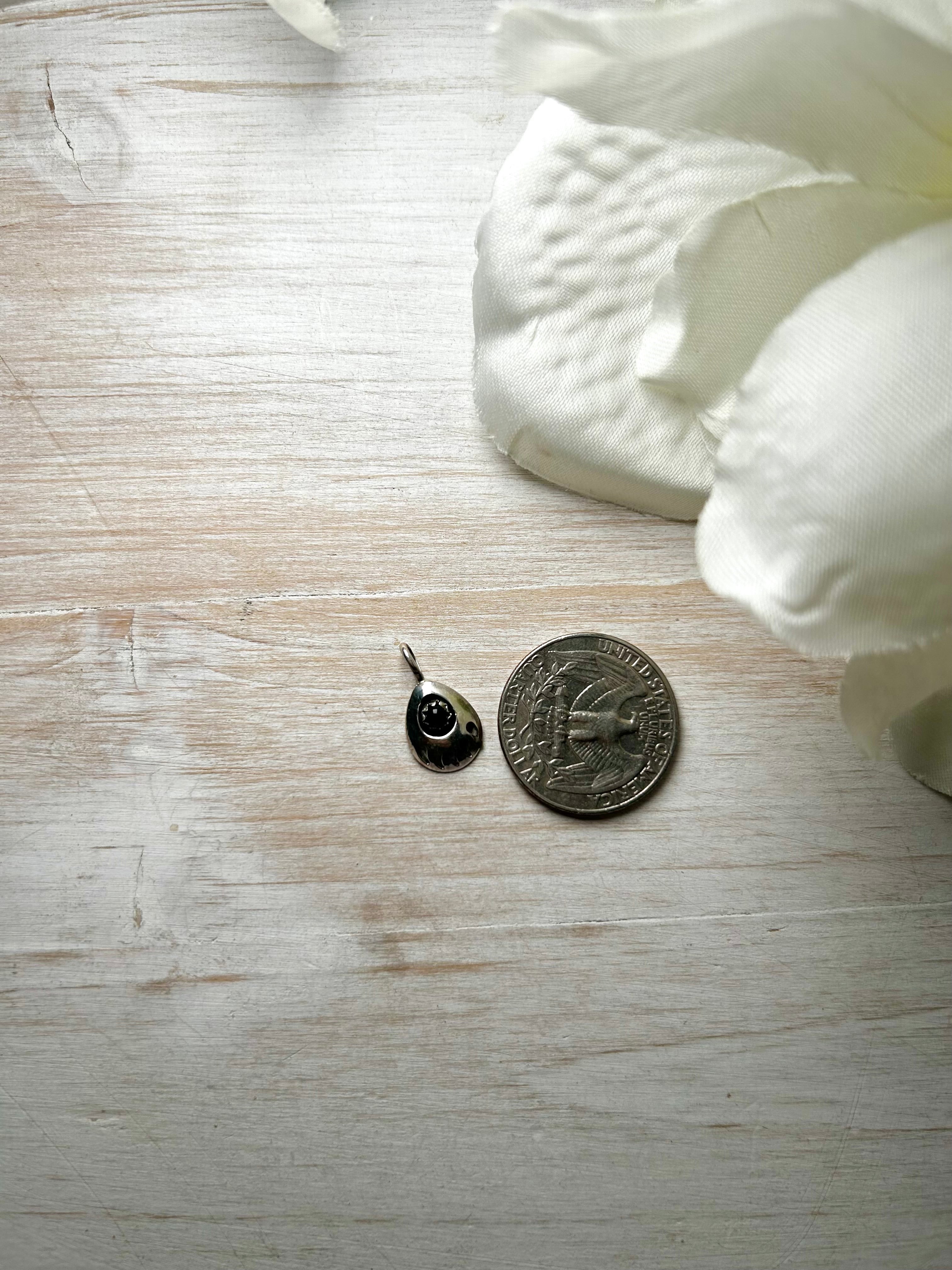 Navajo Made Onyx & Sterling Silver Pendant. It measures 3/4 of an inch long and 3/8 of an inch wide. Signed by the artist and stamped sterling silver. Pendant only!