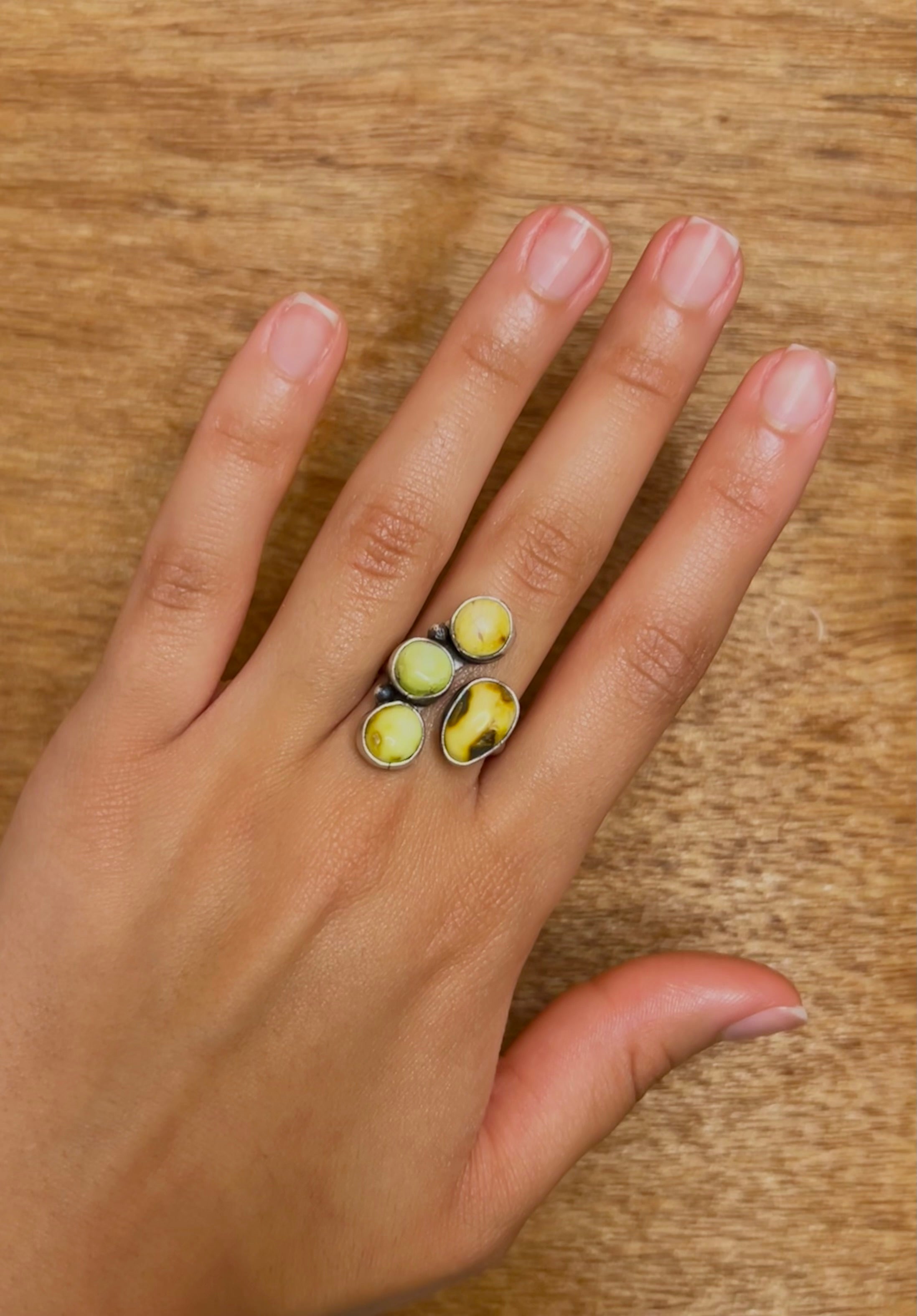 Eli Skeets Navajo Handmade Palomino Variscite & Sterling Sliver Adjustable Ring