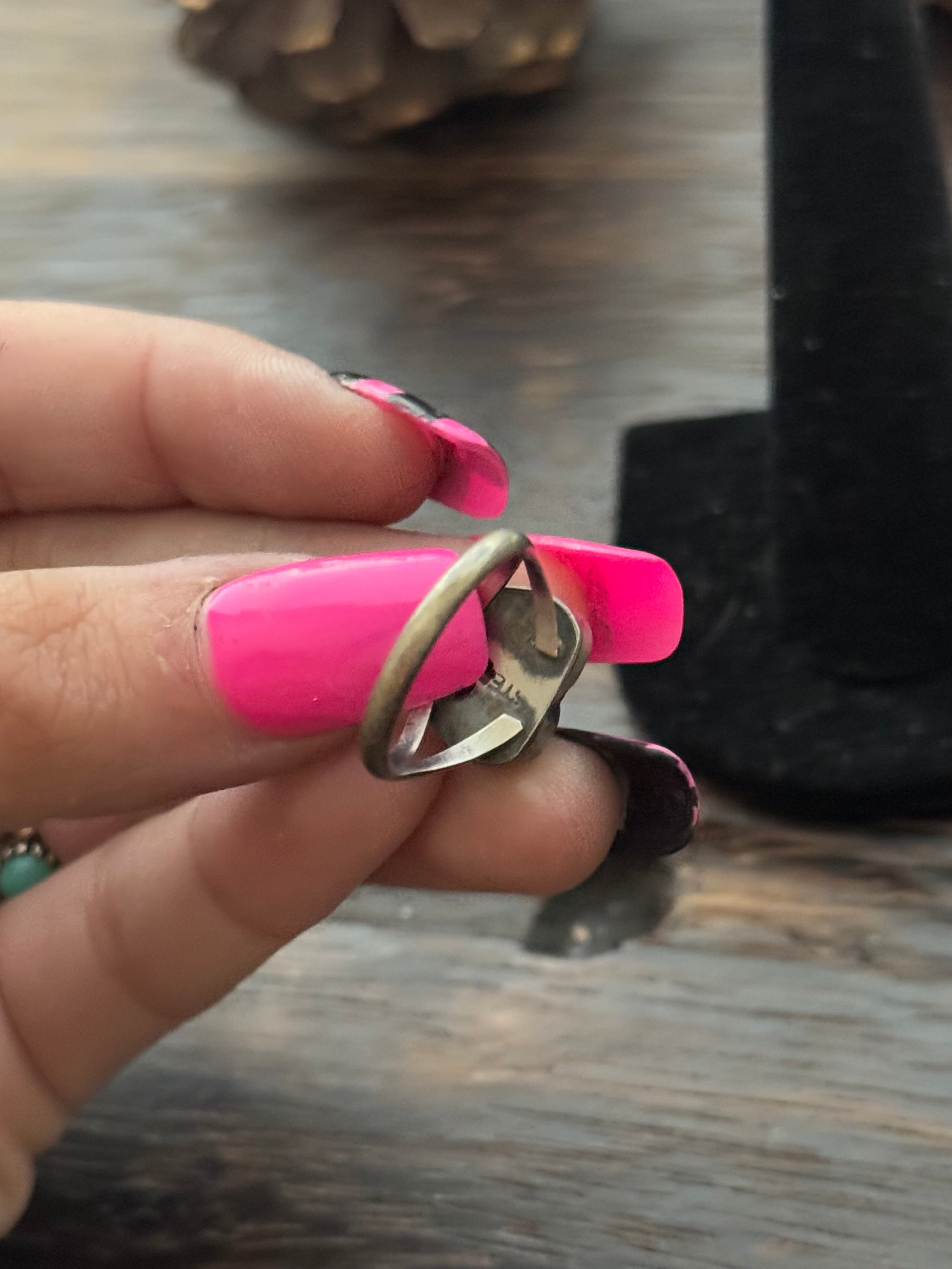 Navajo Made Larimar & Sterling Silver Heart Ring Size 5.75