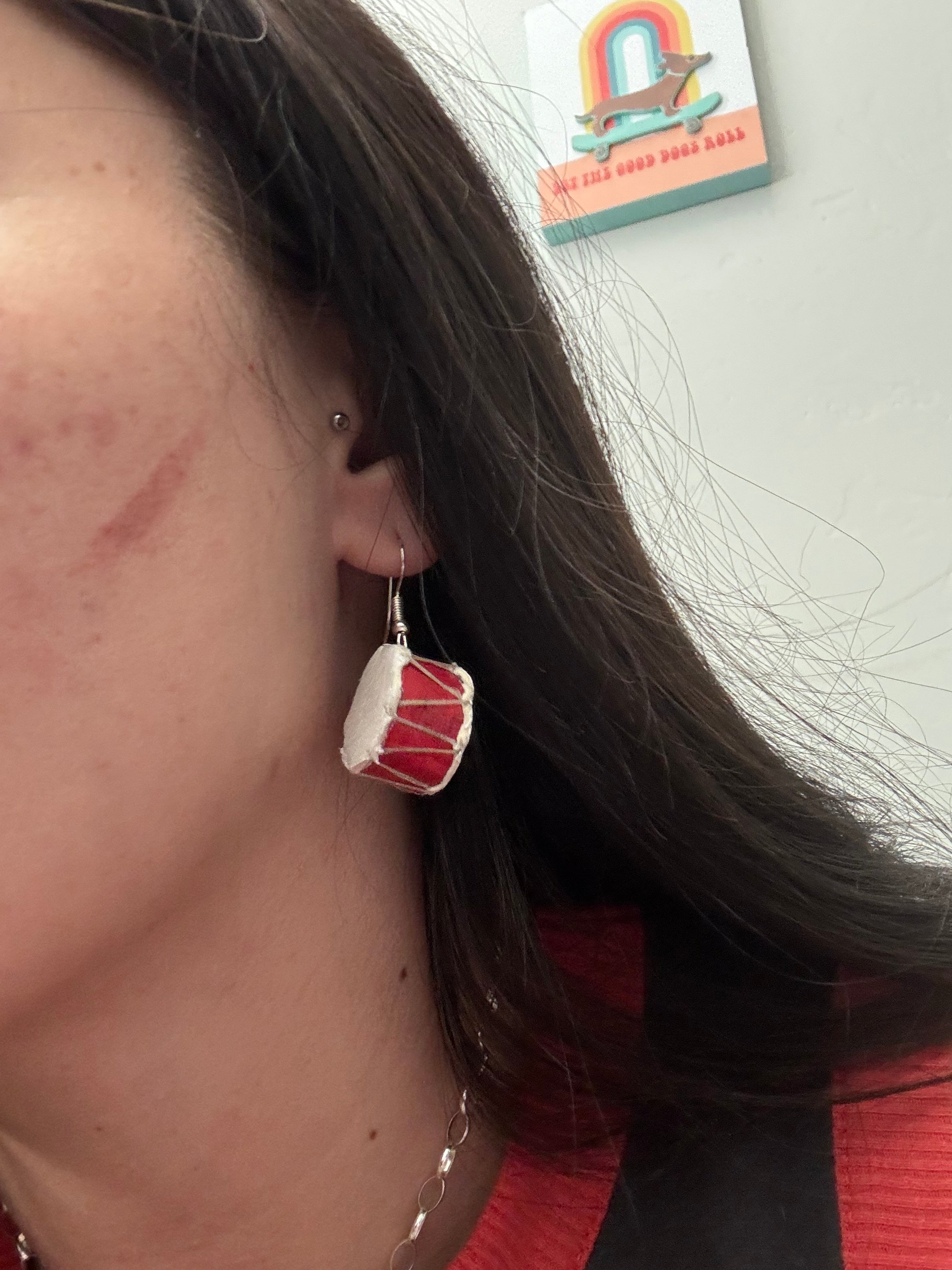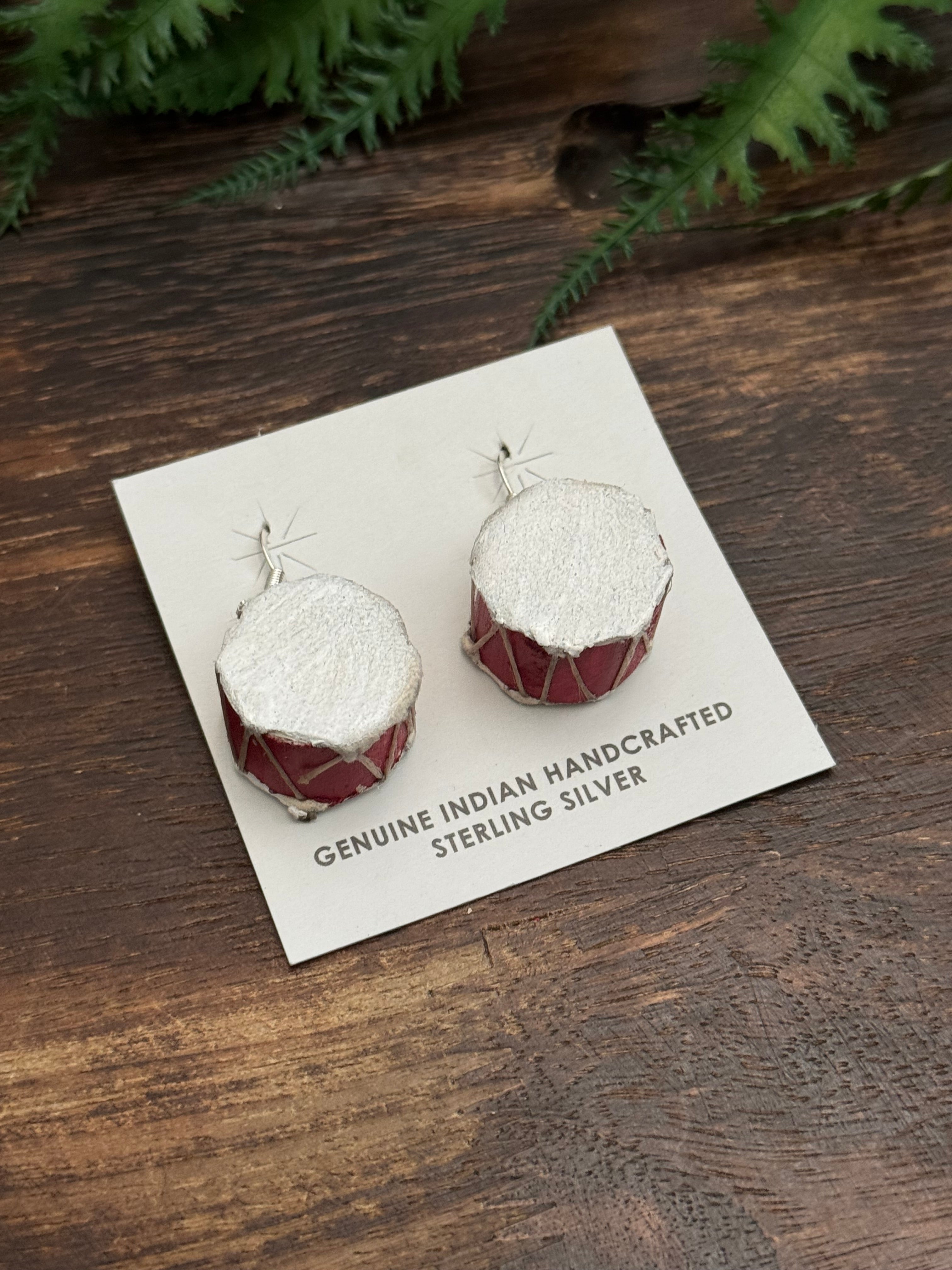 - These are must haves for your everyday wear. Navajo Made Leather & Sterling Silver Dangle Drum Earrings. It measures 1 3/4 inches long. Signed by the artist and stamped sterling silver.
