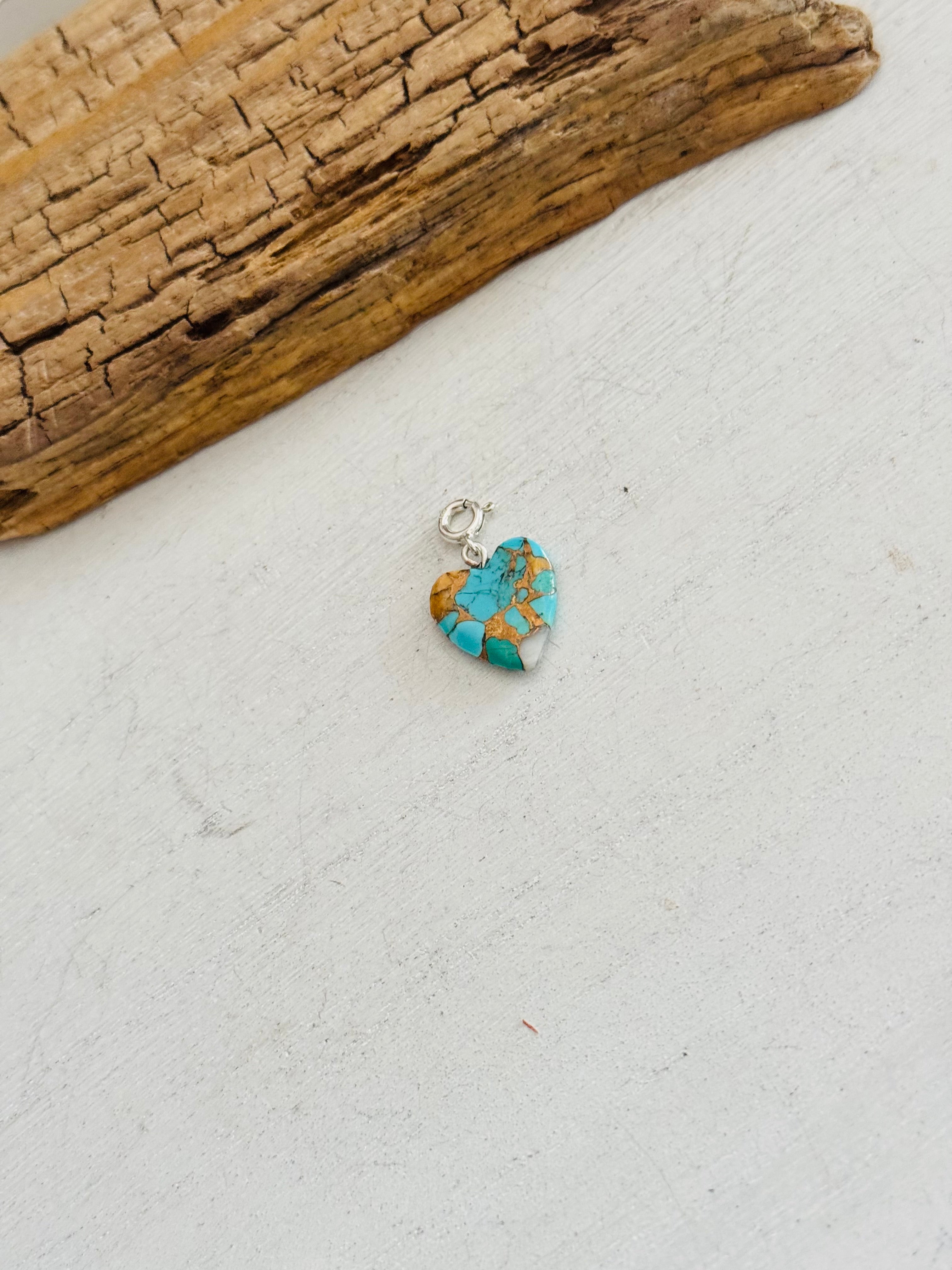 Navajo Made Mohave Turquoise & Sterling Silver Heart Charms