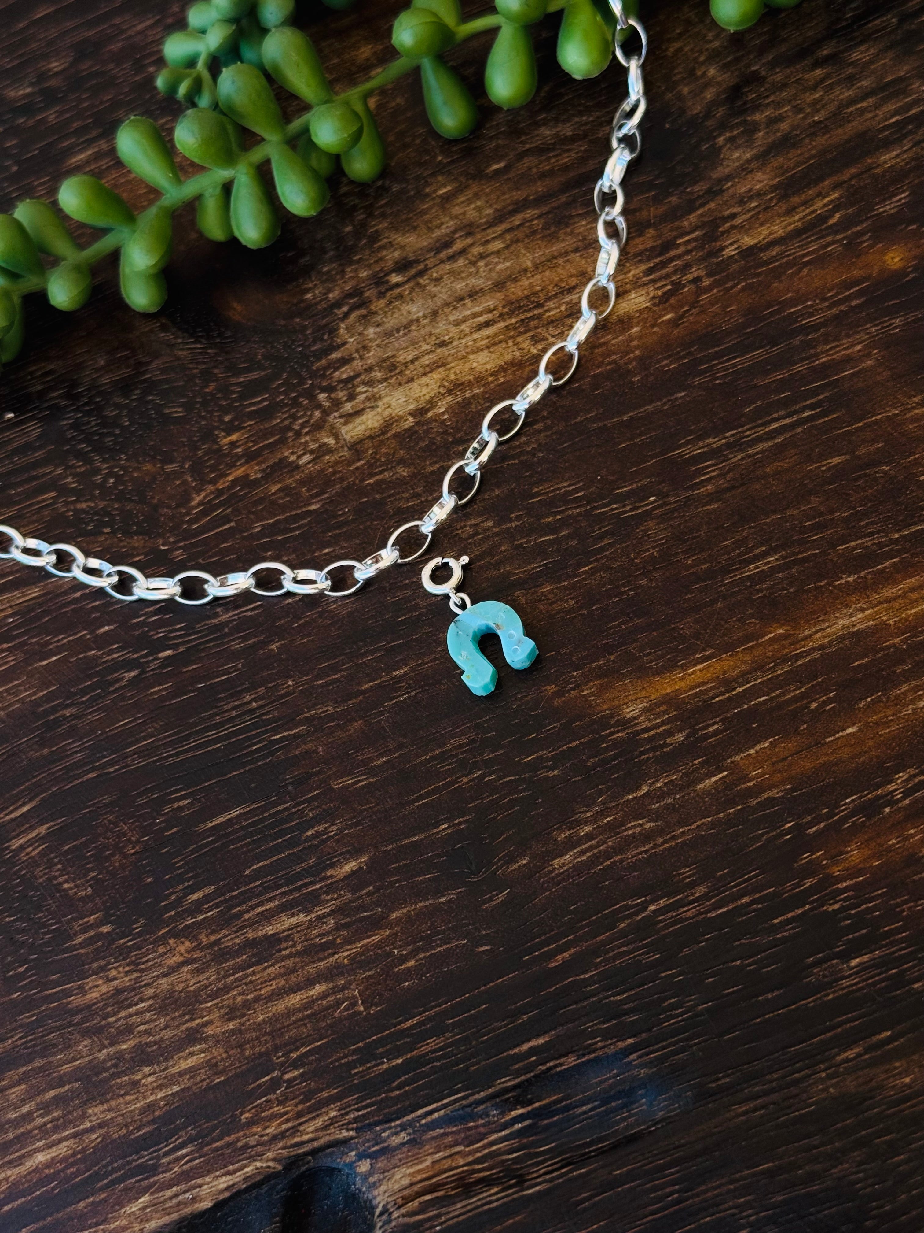 Navajo Made Mohave Turquoise & Sterling Silver Horse Shoe Charms