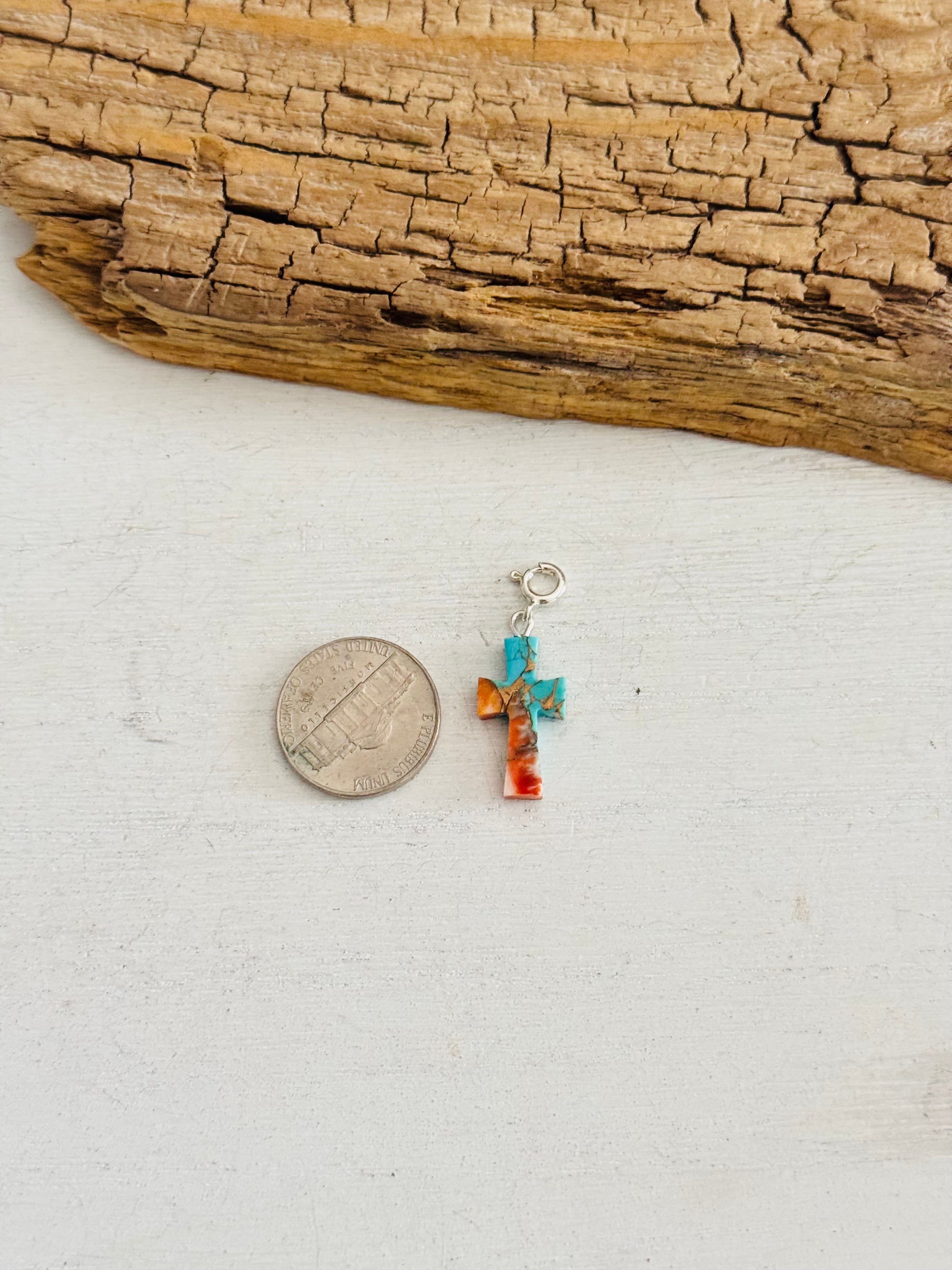 Navajo Made Mohave Turquoise & Sterling Silver Cross Charms