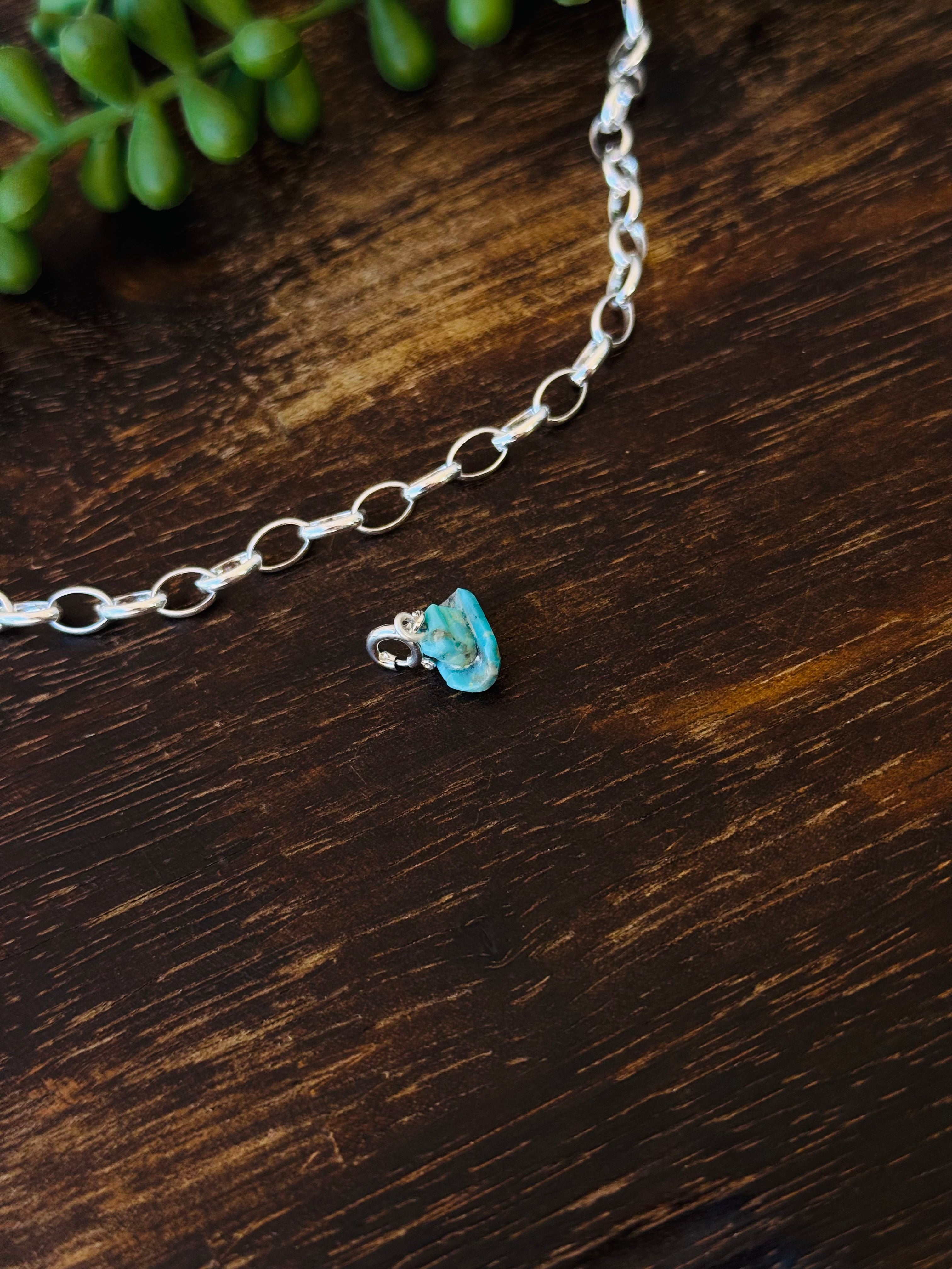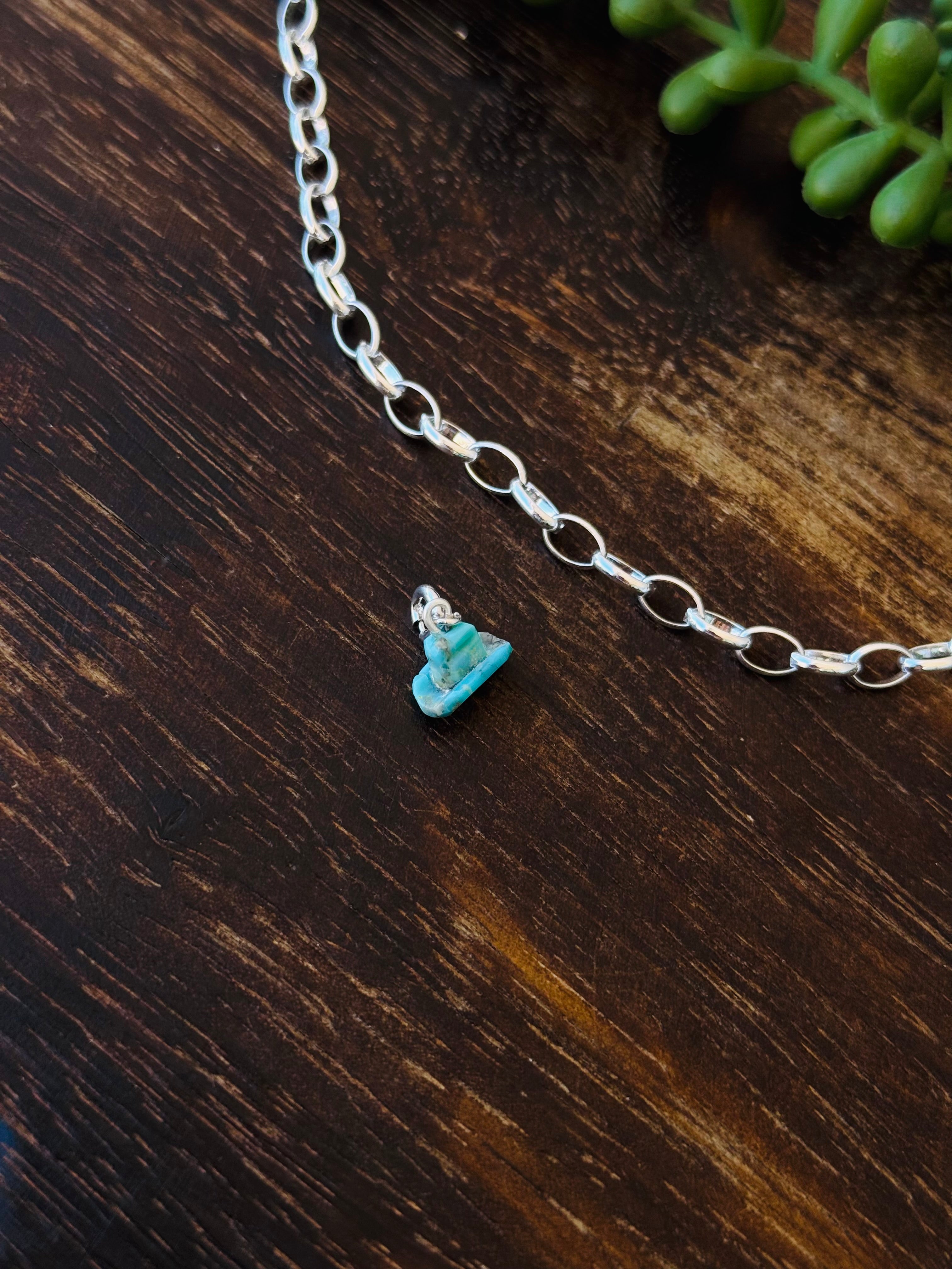 Navajo Made Mohave Turquoise & Sterling Silver Charms. It measures 3/4 of an inch long. **Native** Stones will differ due to natural stones.