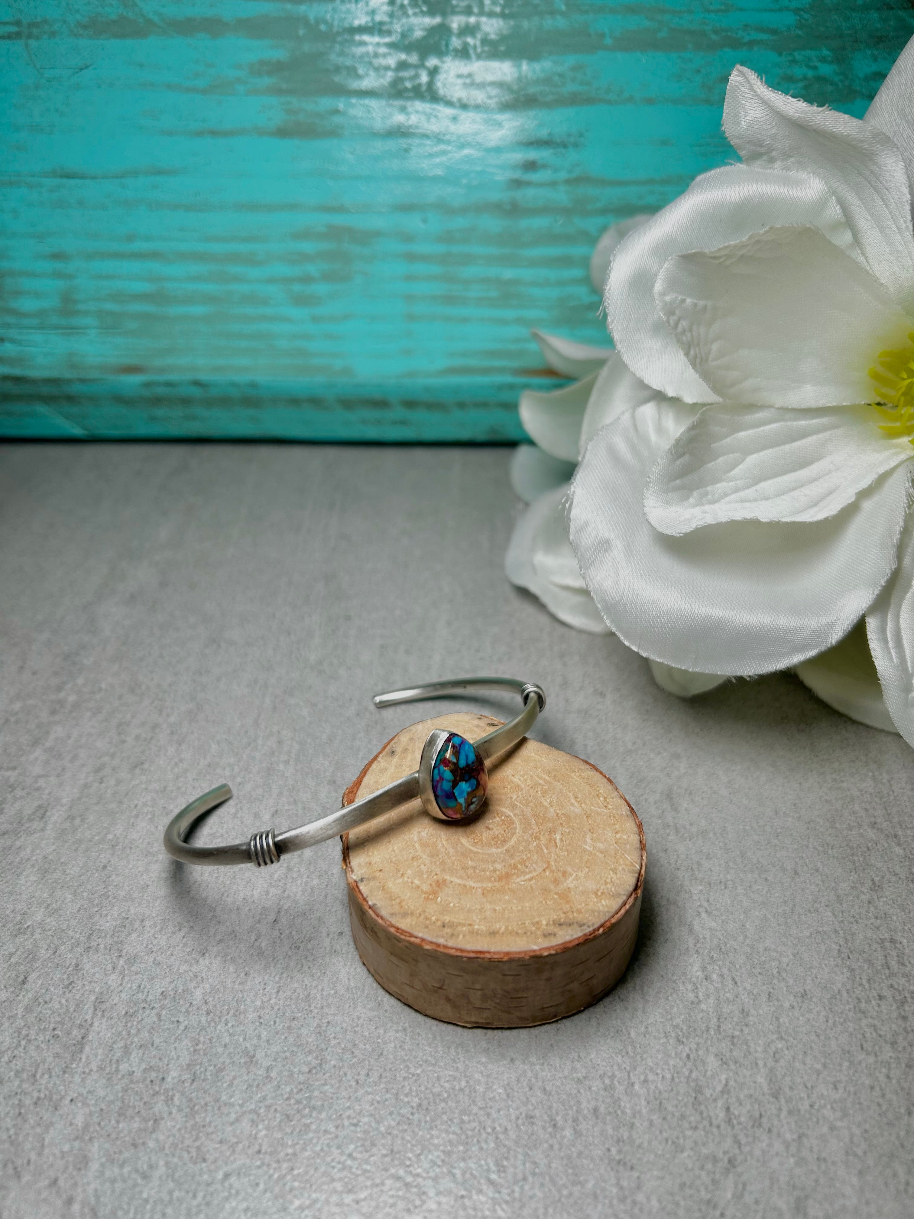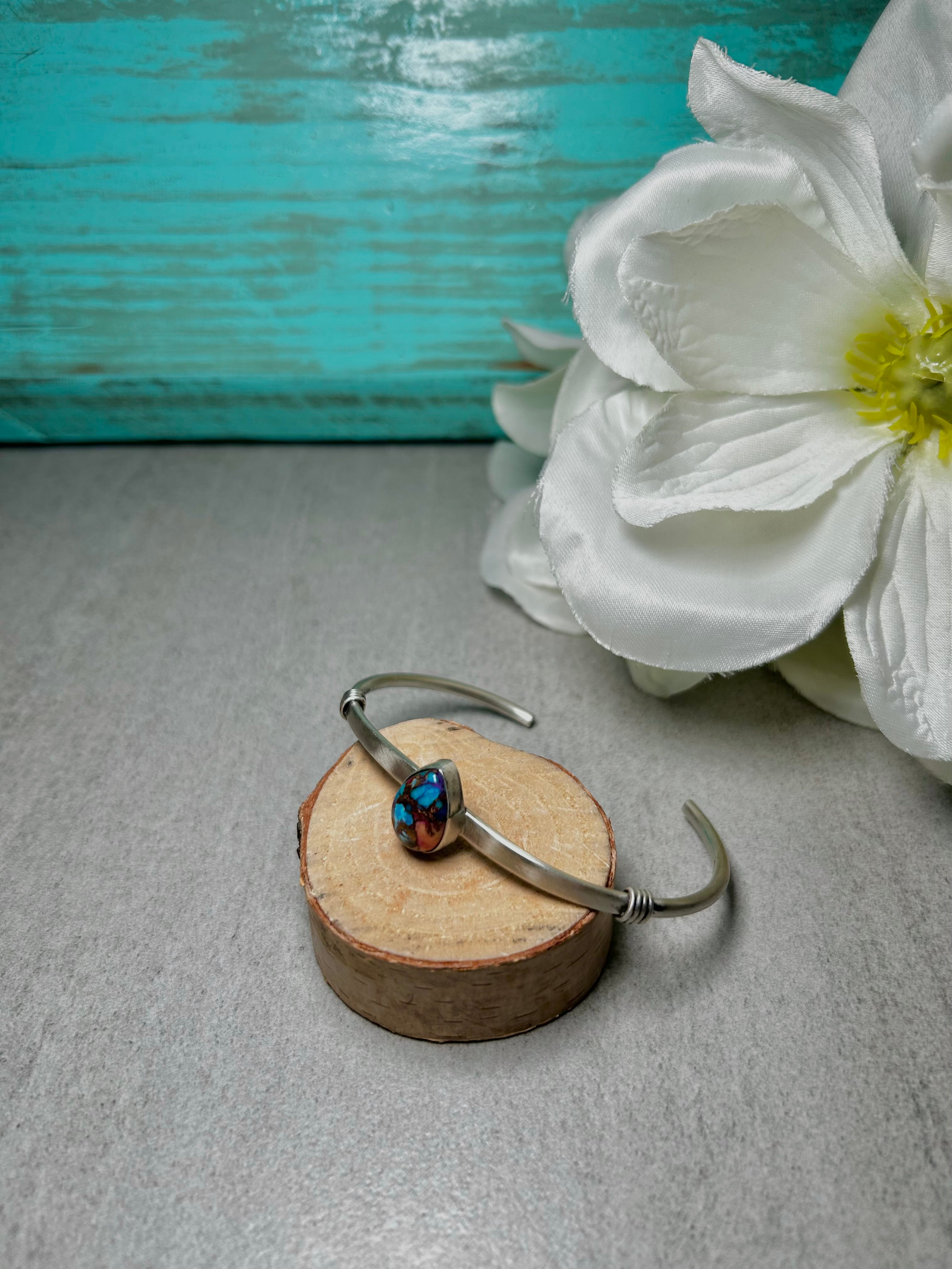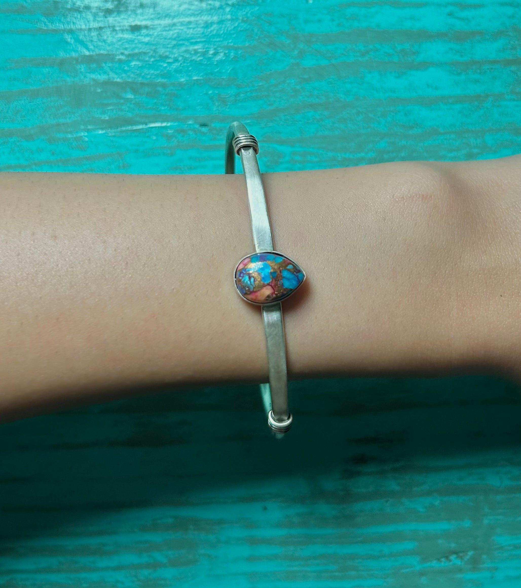 Navajo Made Mohave Turquoise & Sterling Silver Cuff Bracelet