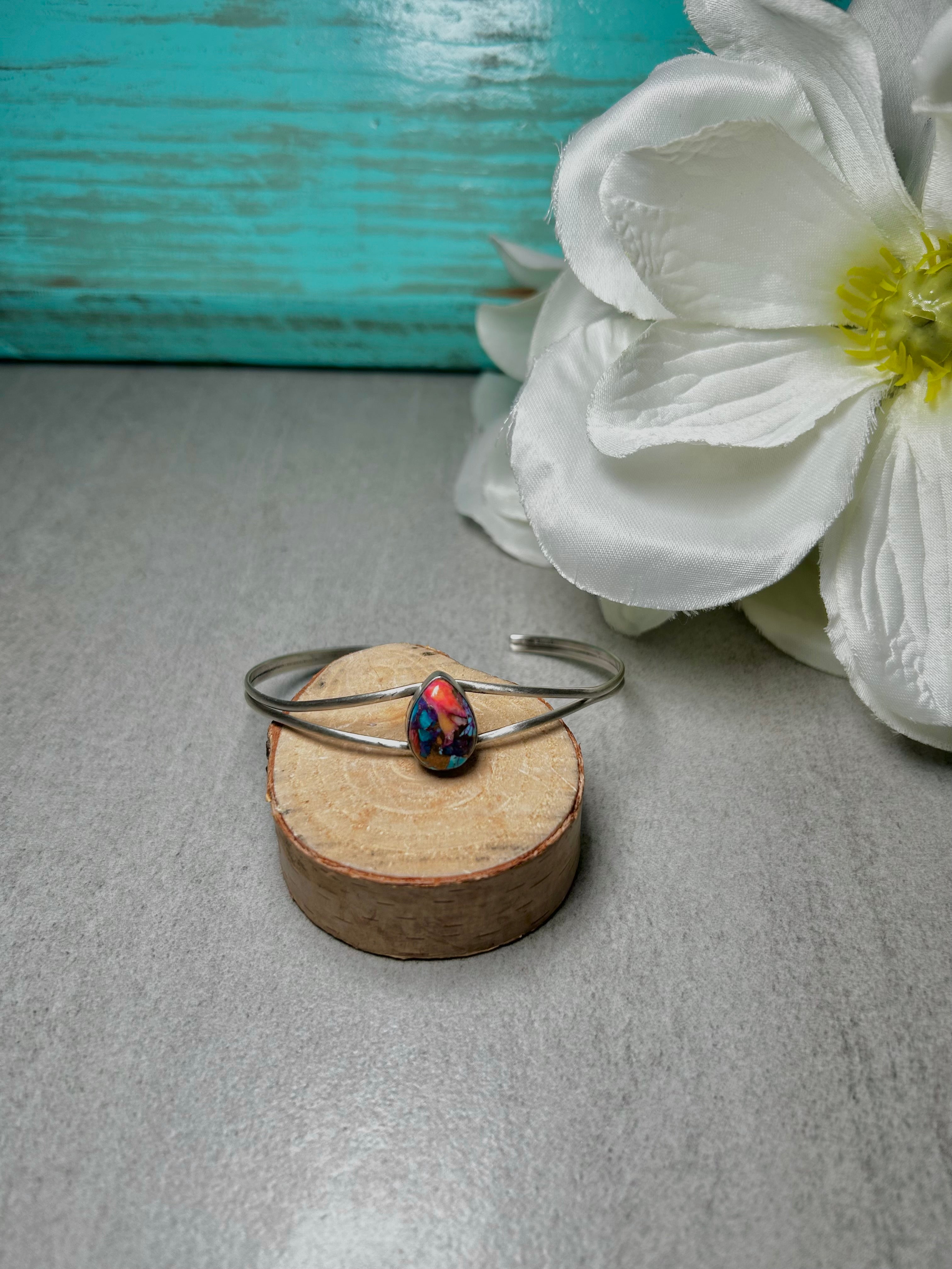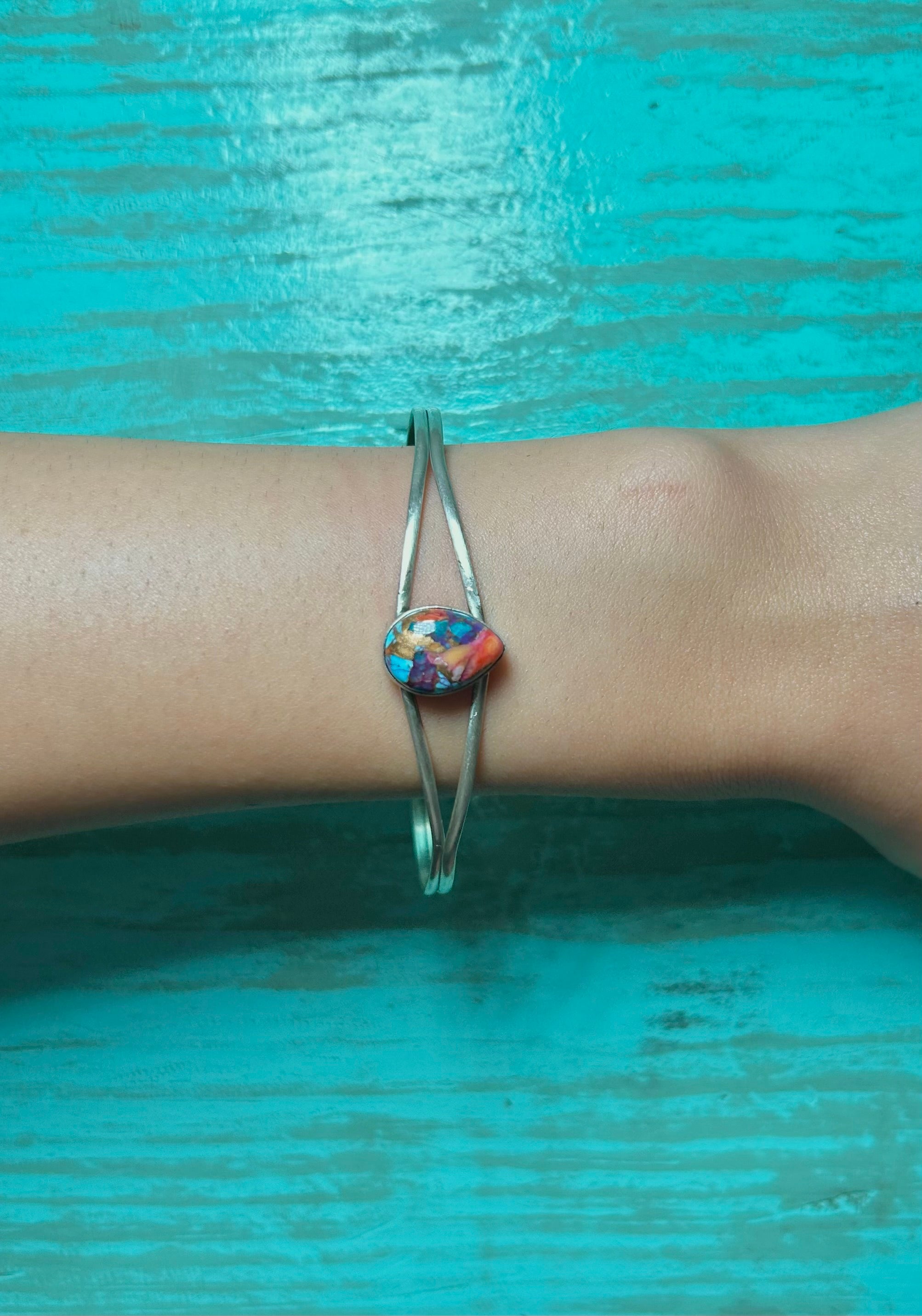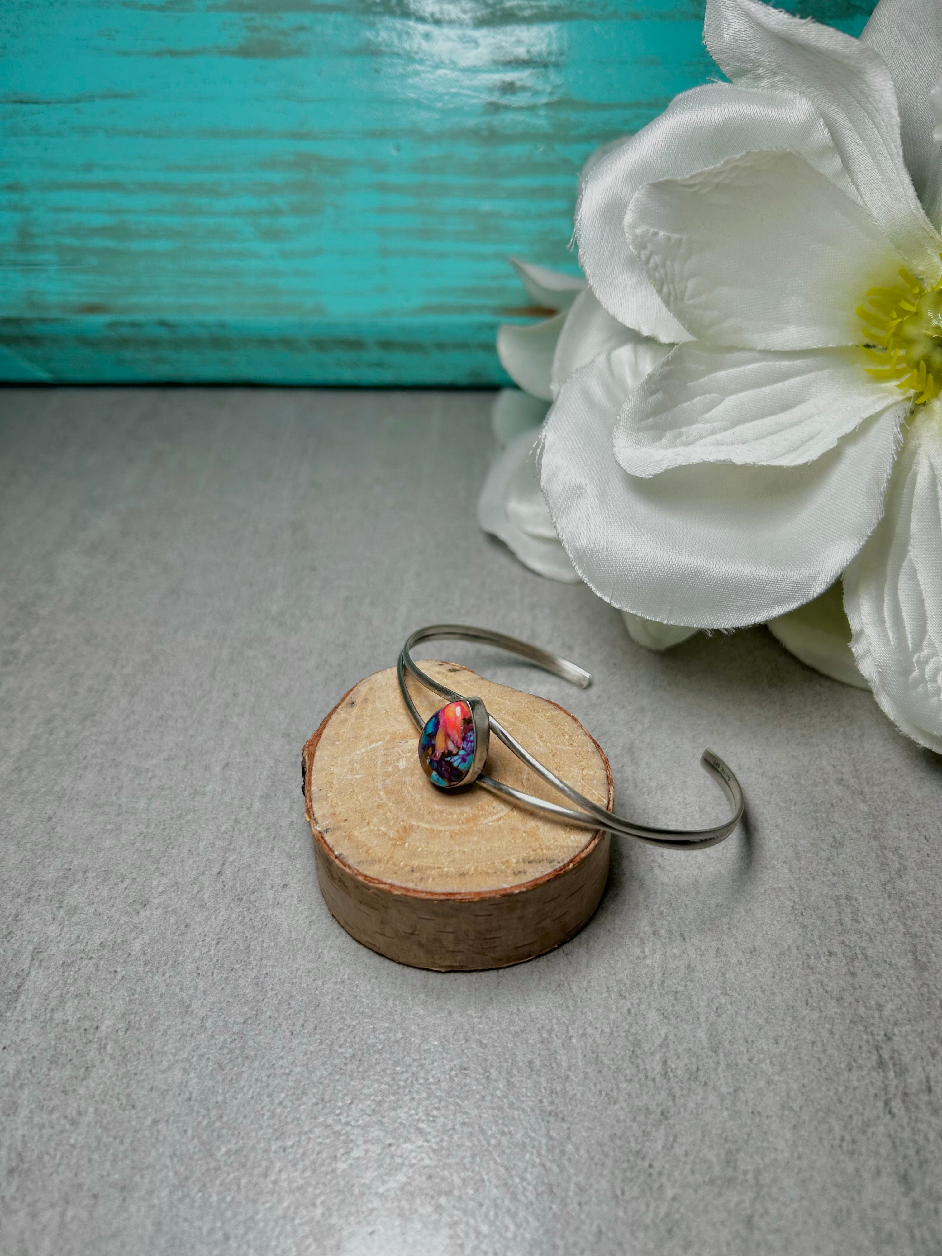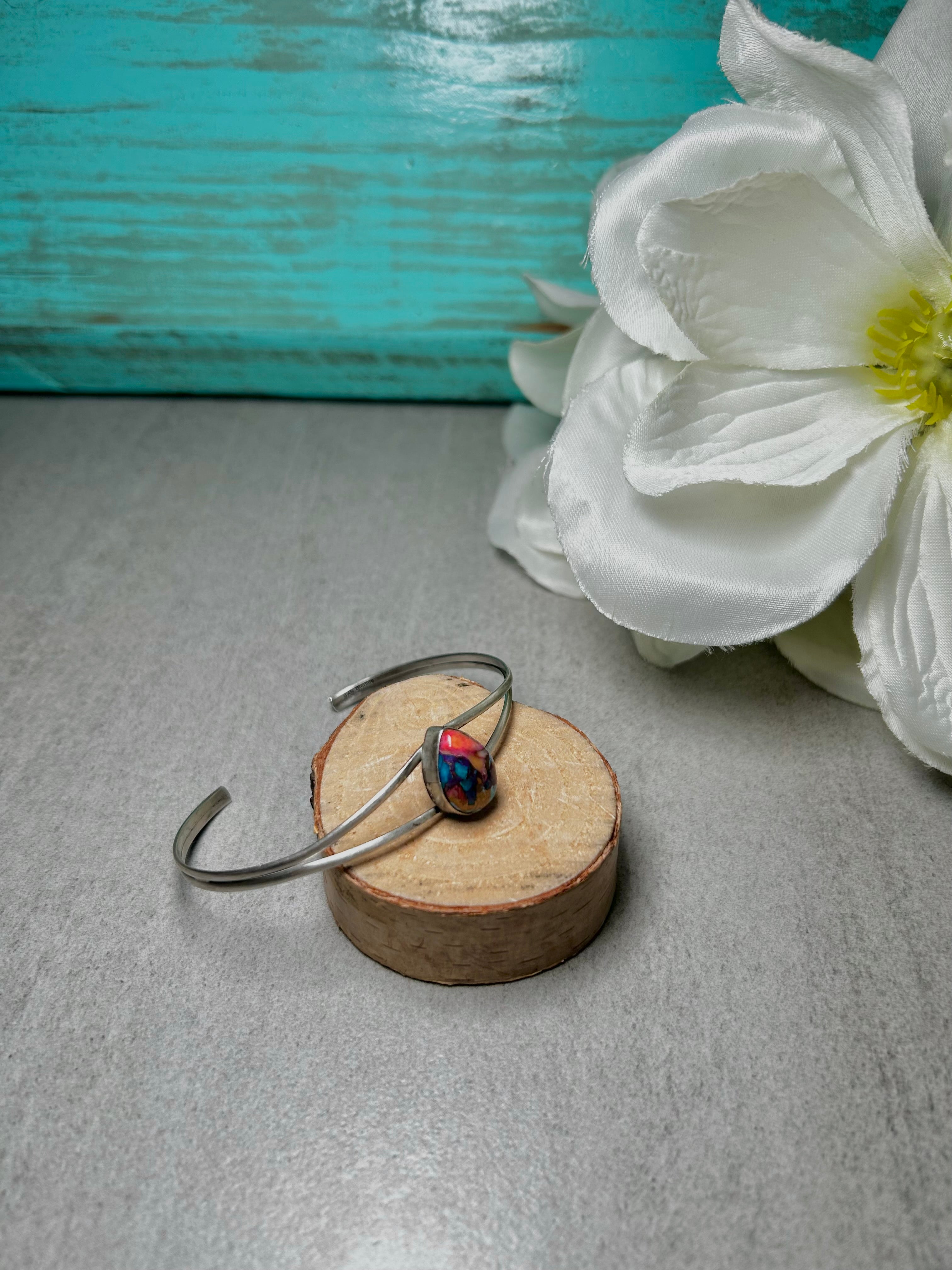 Navajo Made Mohave Turquoise & Sterling Silver Cuff Bracelet