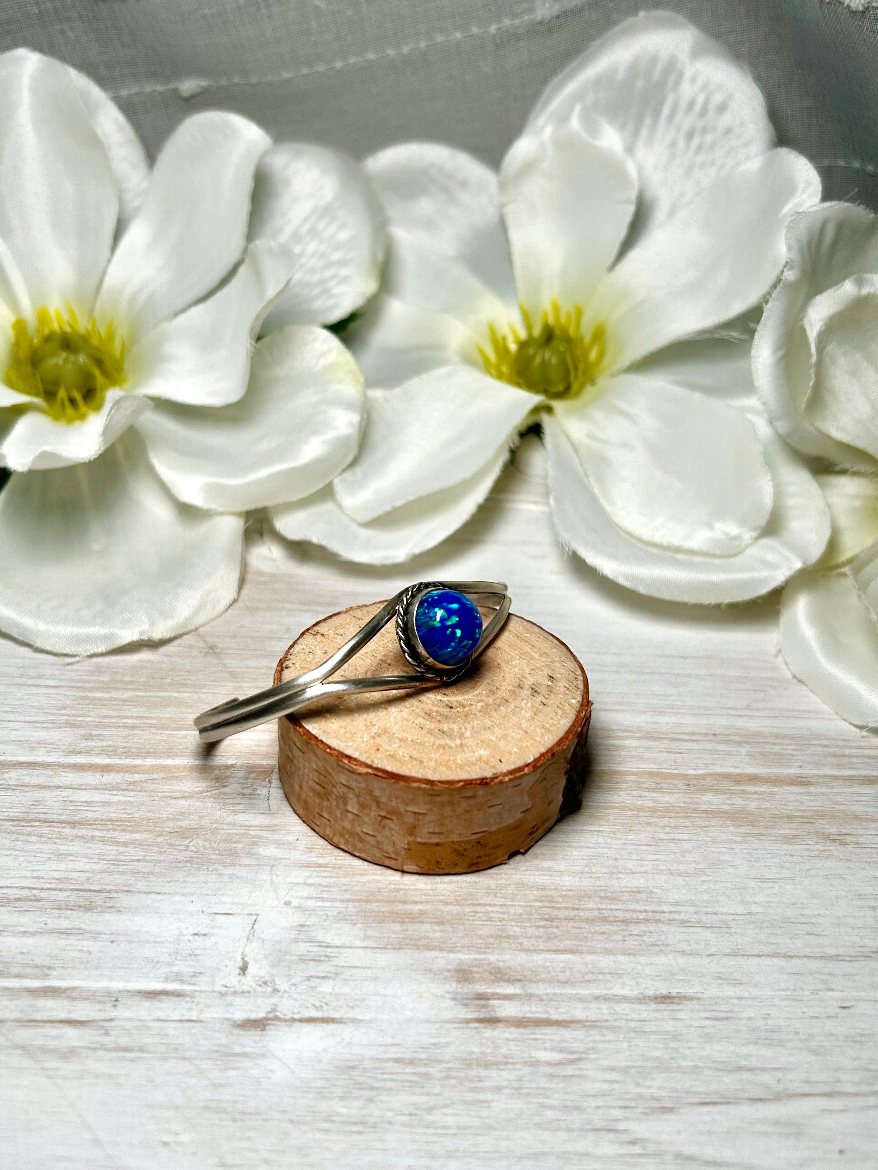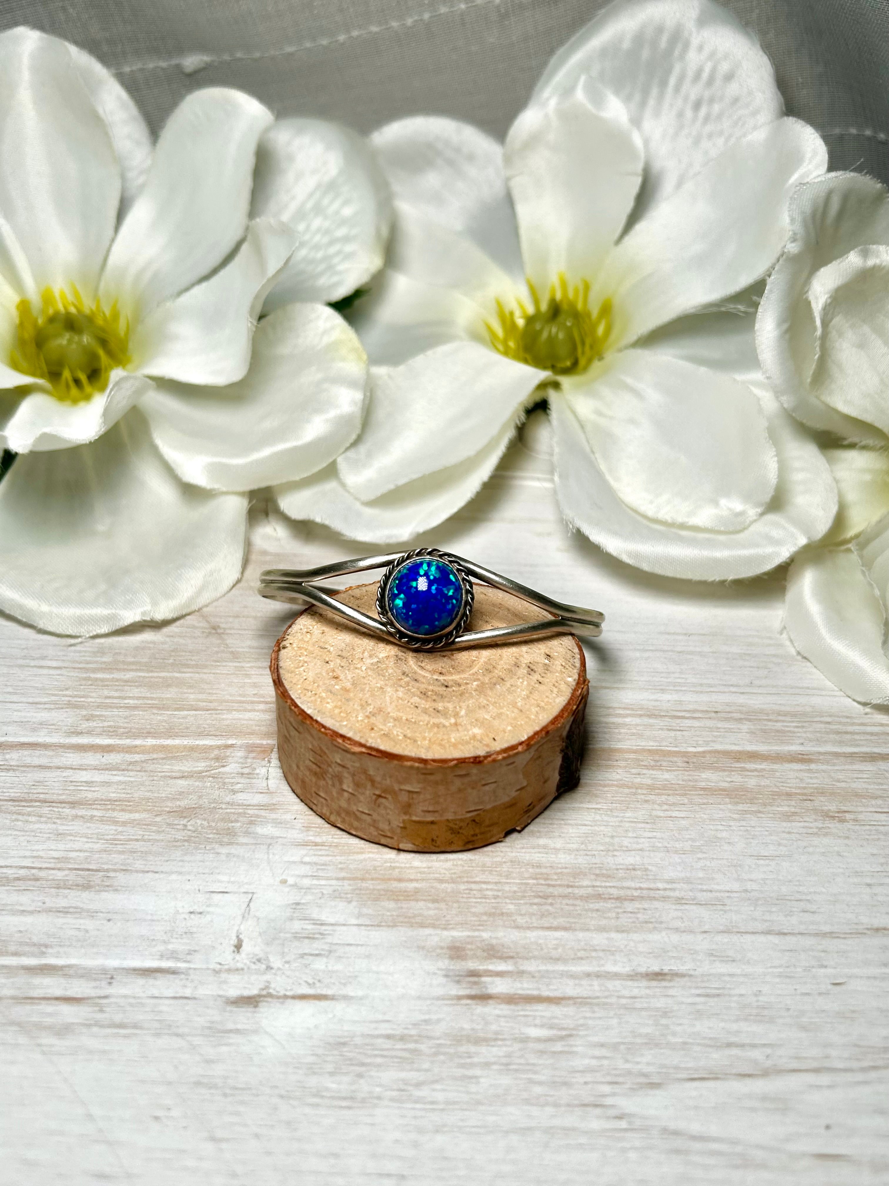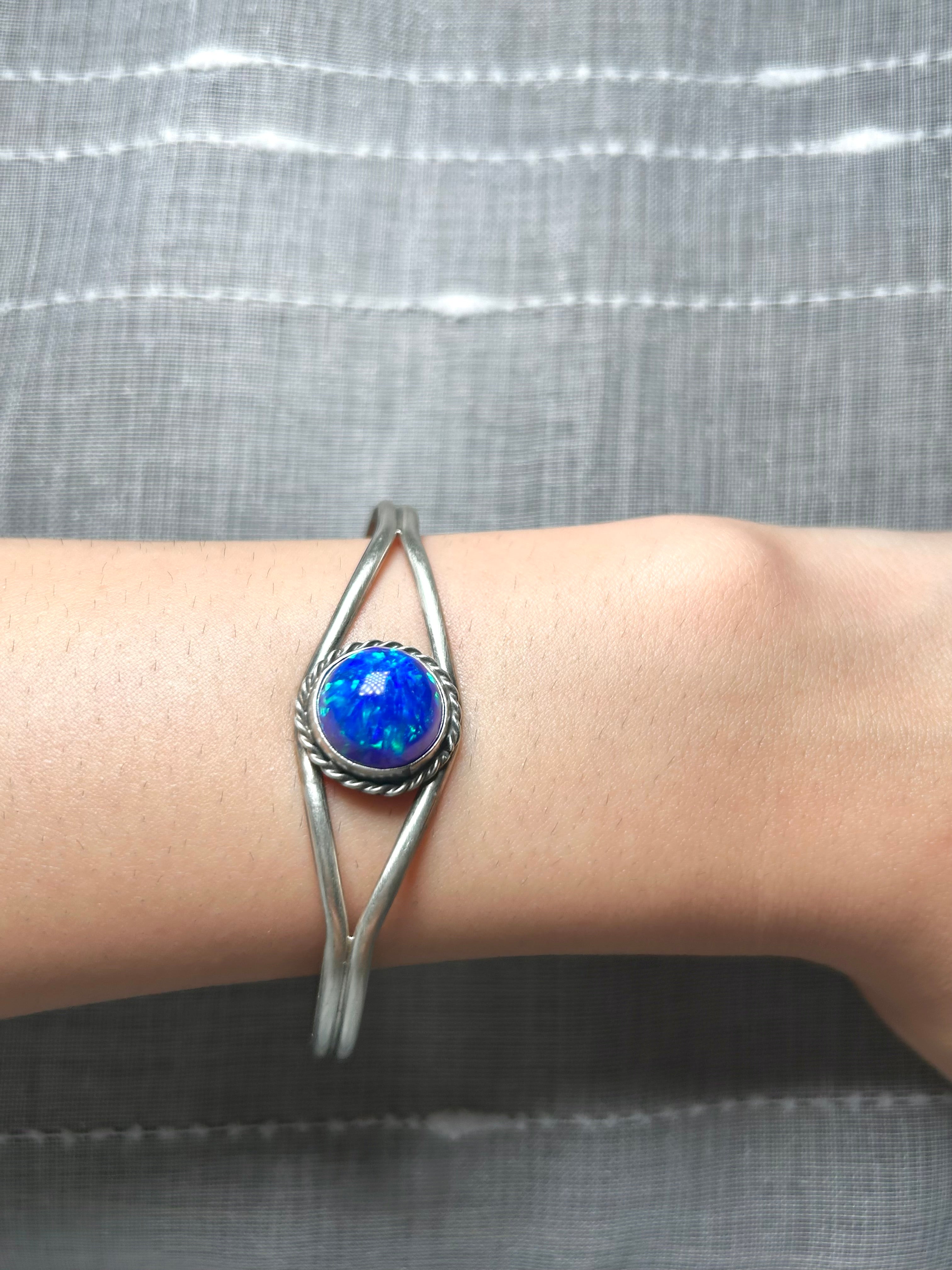 Navajo Man-Made Opal & Sterling Silver Cuff Bracelet
