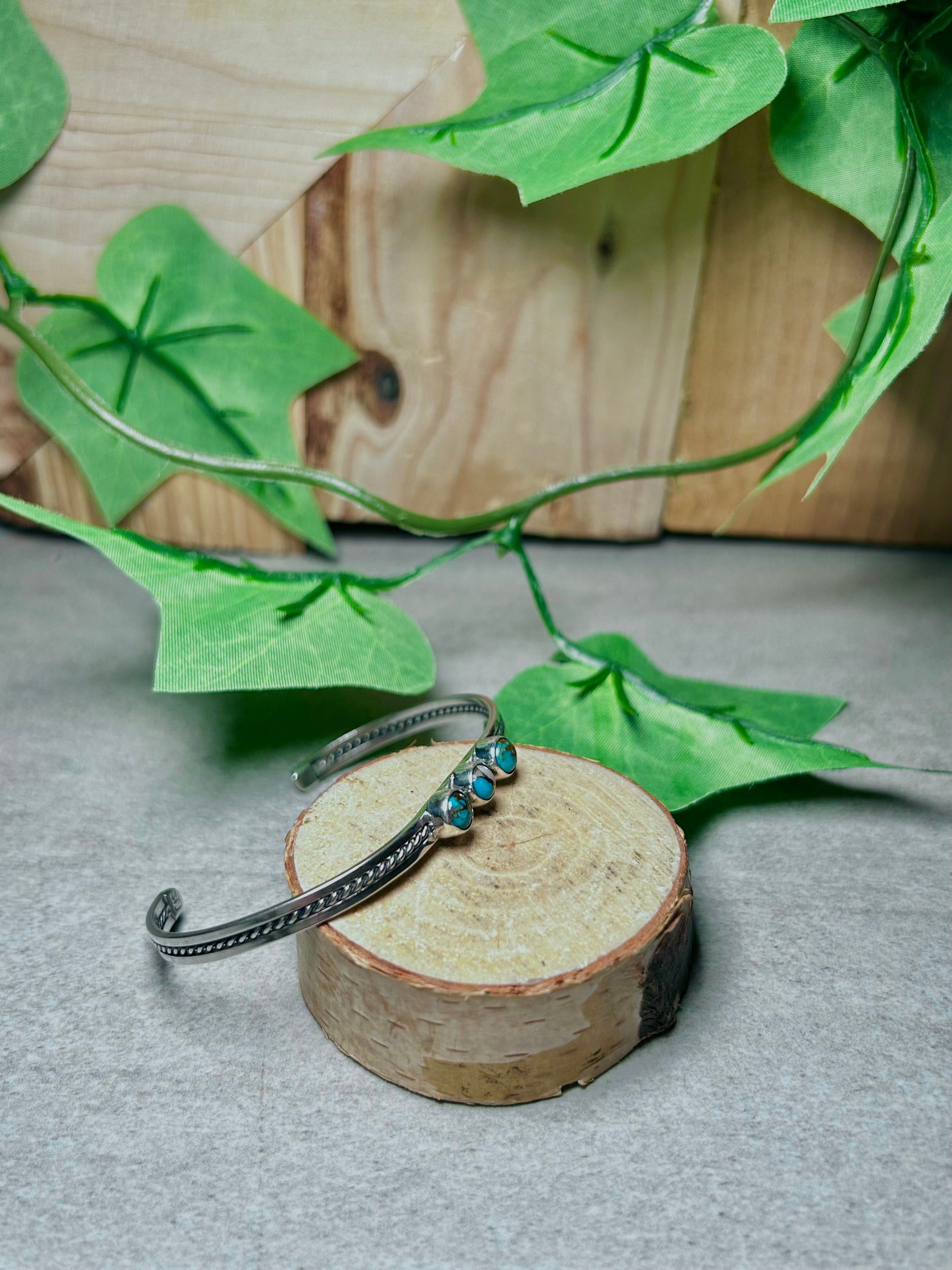 Navajo Made Mohave Turquoise & Sterling Silver Cuff Bracelet