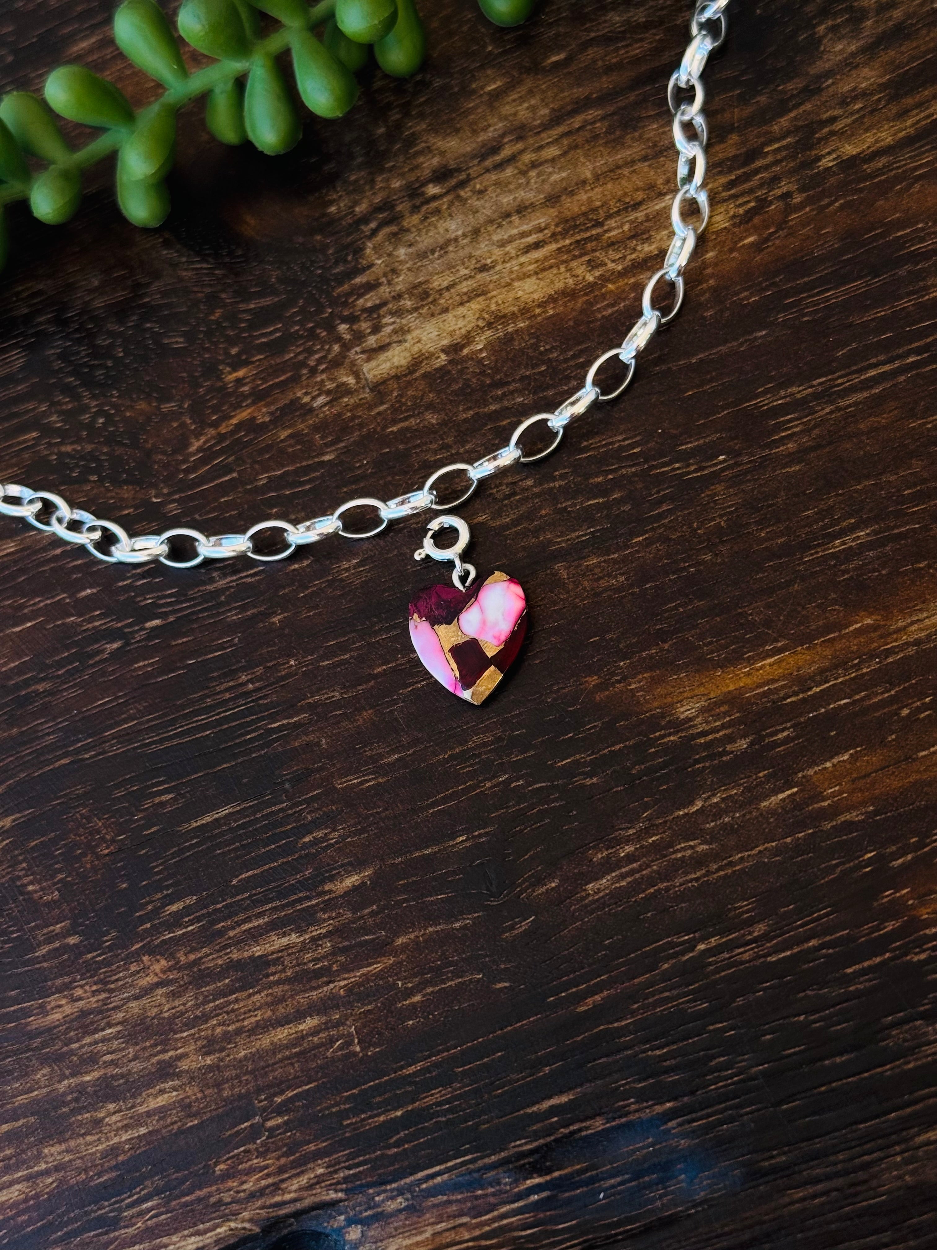 Navajo Made Rose Dalia & Sterling Silver Heart Charms. It measures 1 inch long. **Native** Stones will differ due to natural stones.