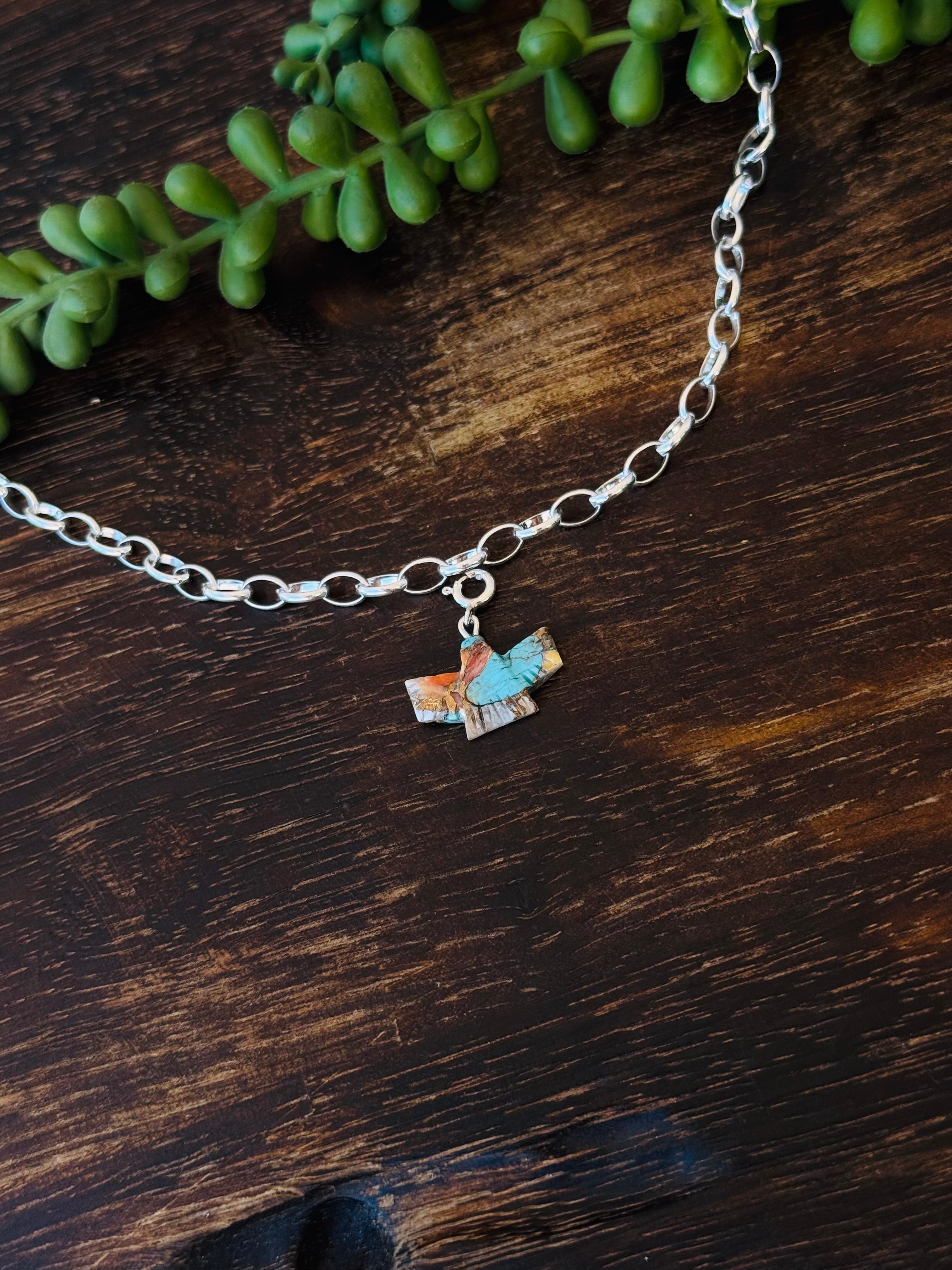 Navajo Made Mohave Turquoise & Sterling Silver Charms. It measures 1 inch long. **Native** Stones will differ due to natural stones.