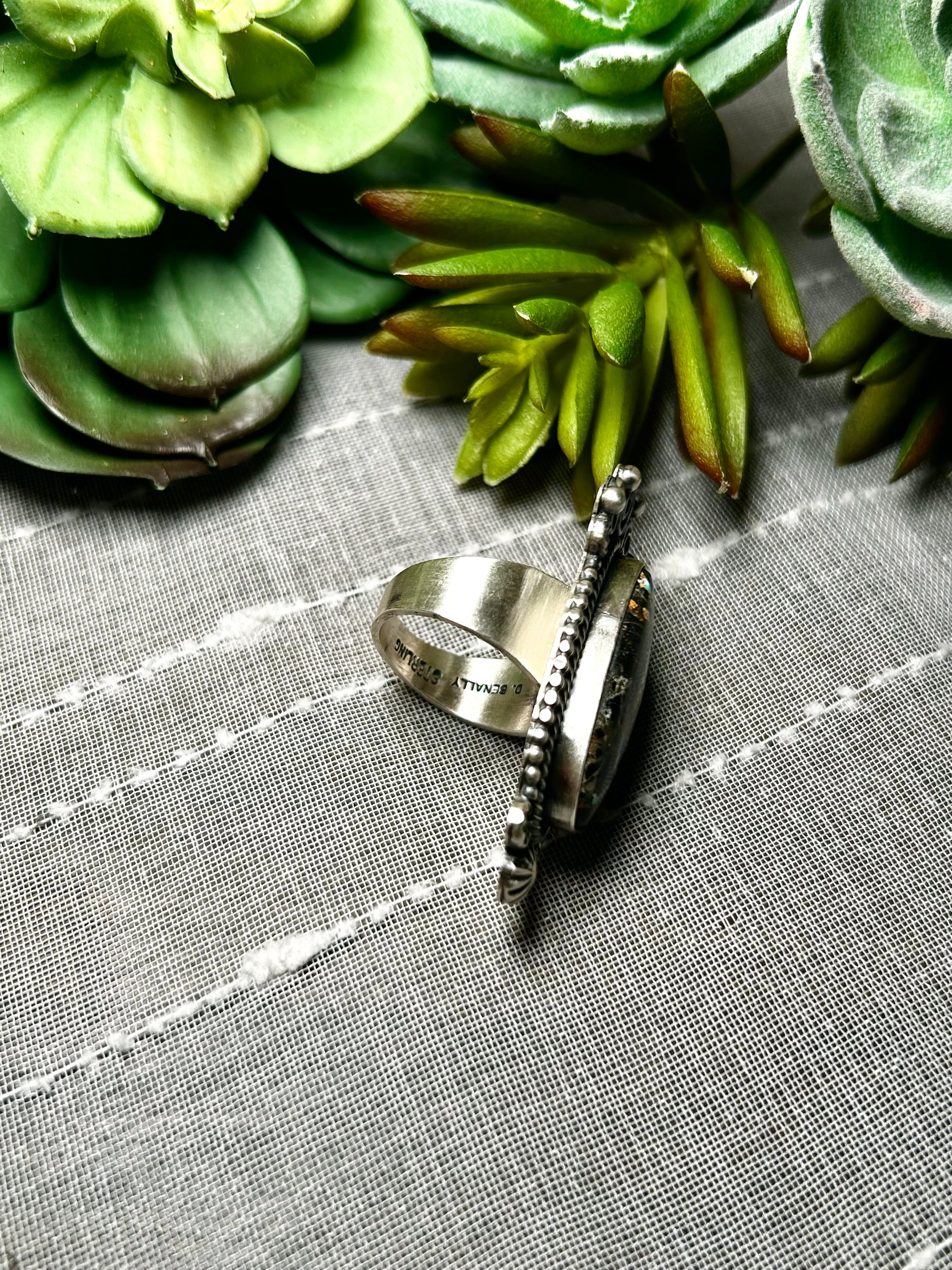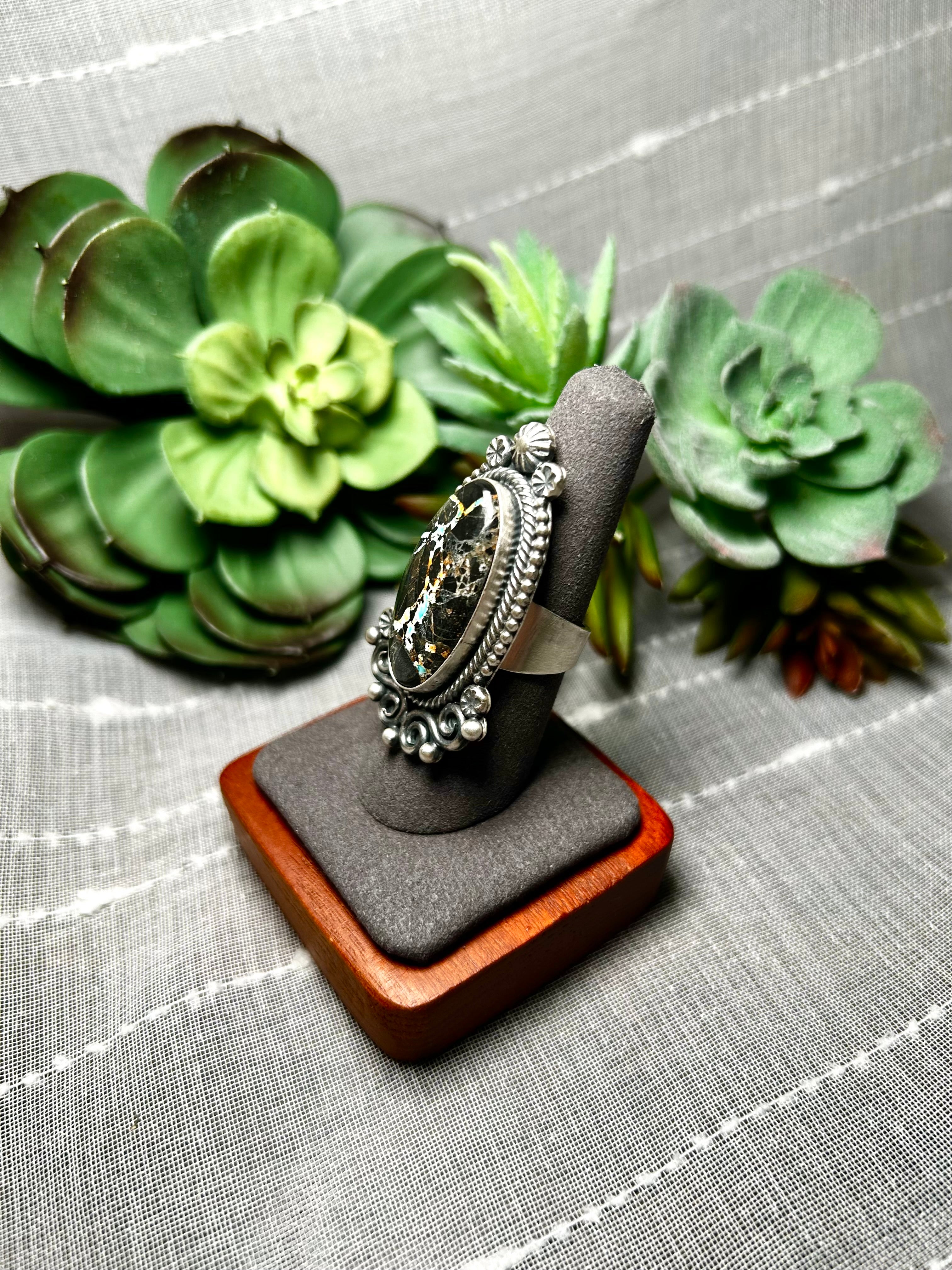 Navajo Made Black Jack Turquoise & Sterling Silver Ring Size 7.75