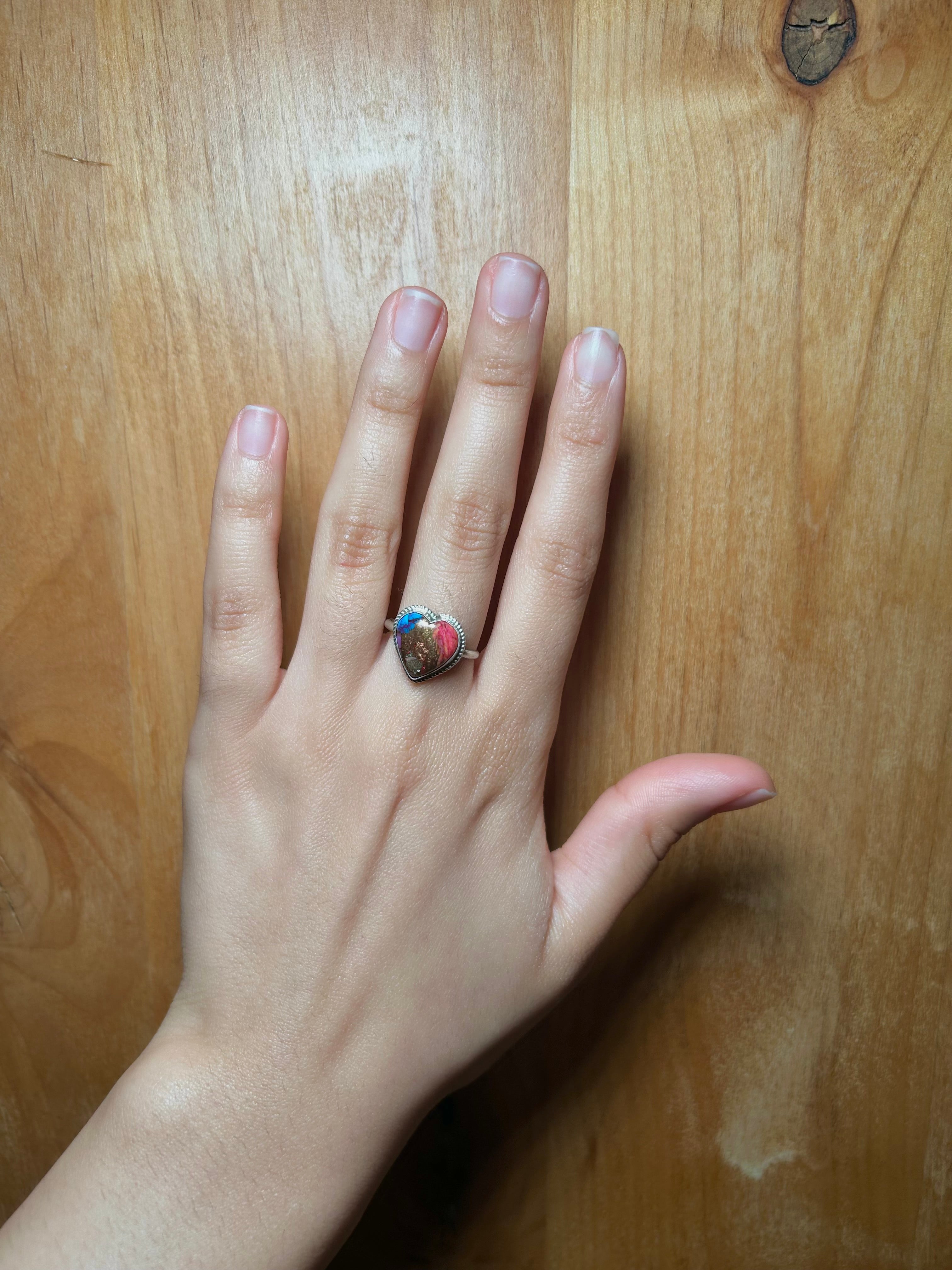 Navajo Made Mohave Turquoise & Sterling Silver Ring Size 7.75