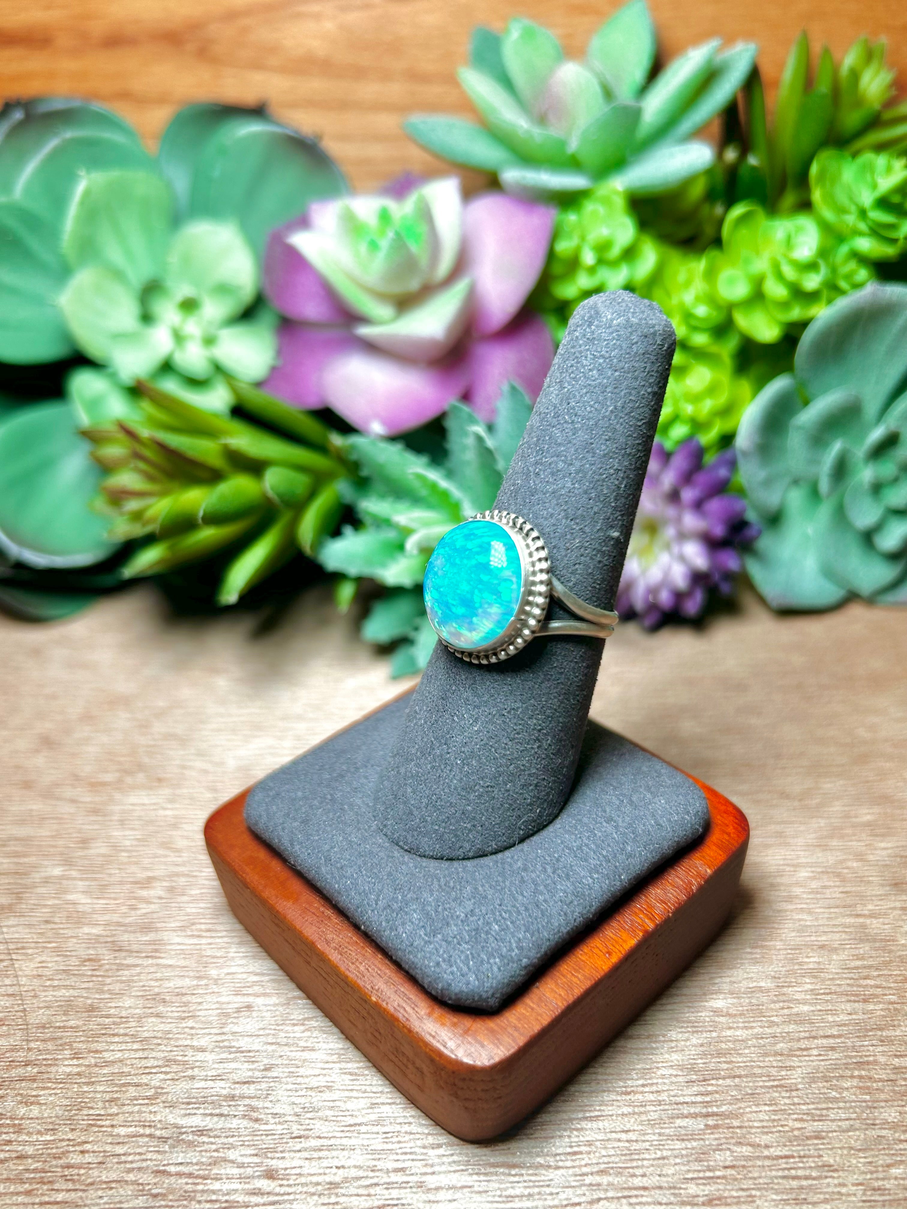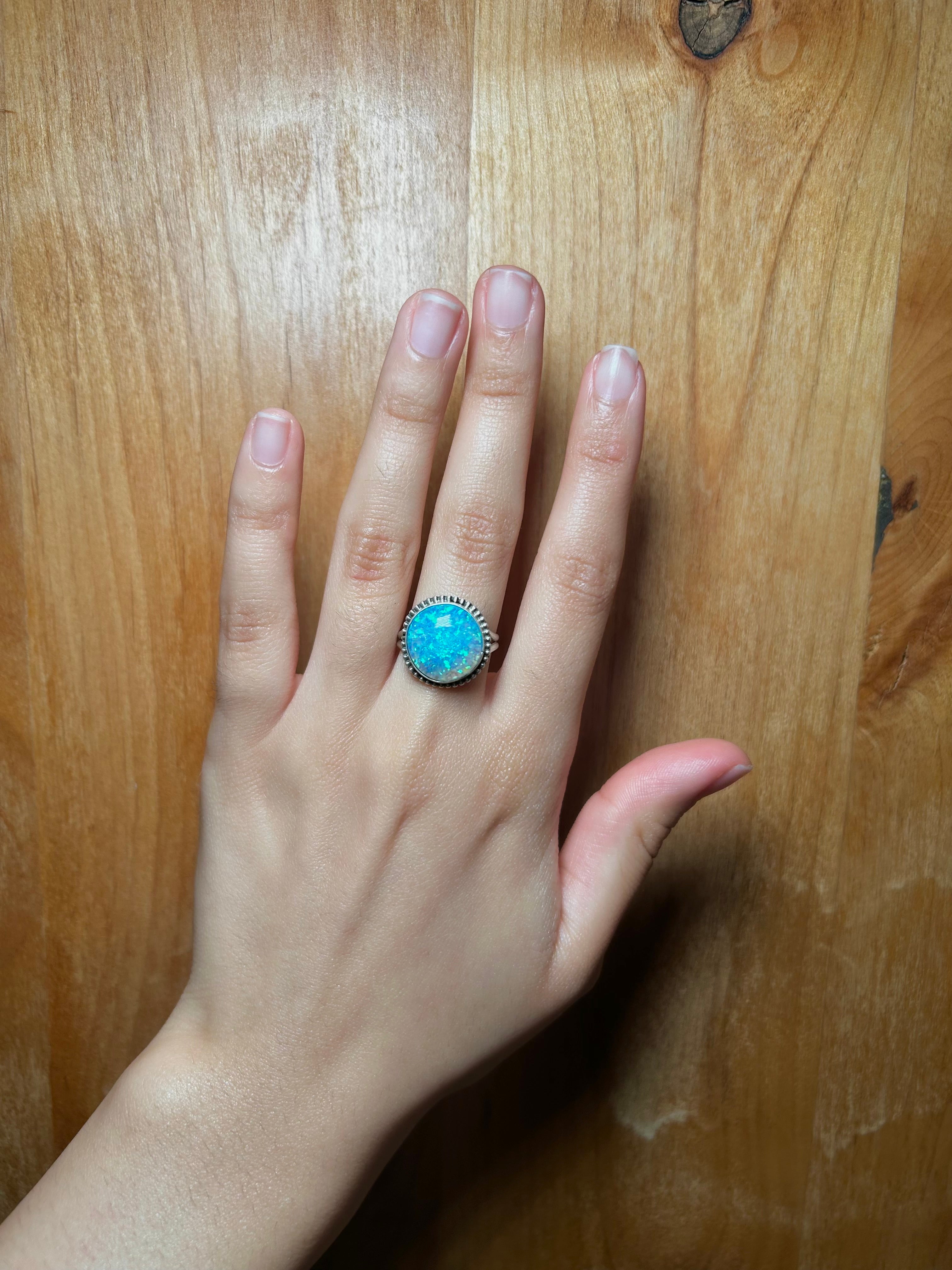 Navajo Made Opal & Sterling Silver Ring Size 8.25