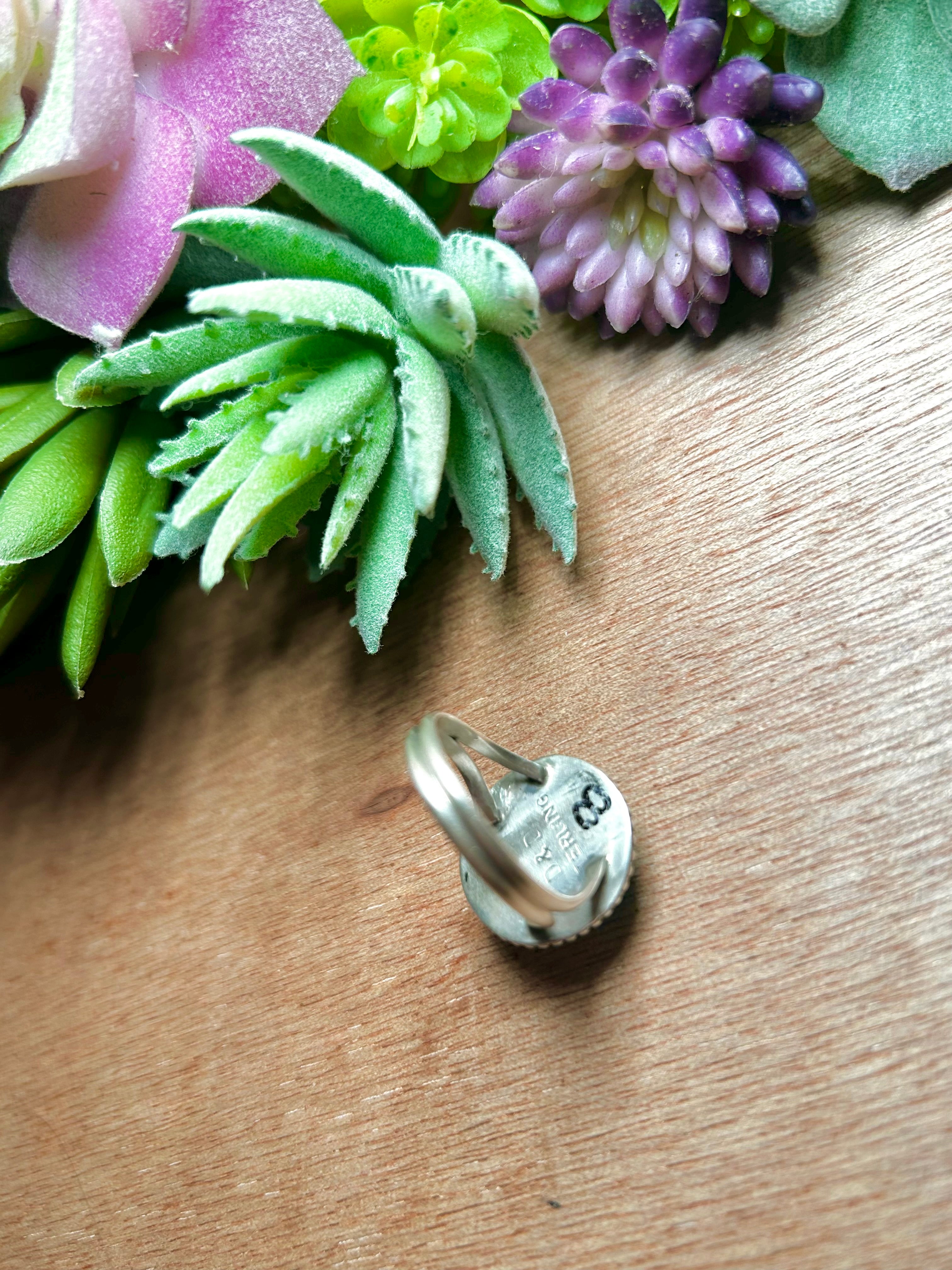 Navajo Made Opal & Sterling Silver Ring Size 8.25. It measures 5/8 of an inch long and 5/8 of an inch wide. Signed by the artist and stamped sterling silver.