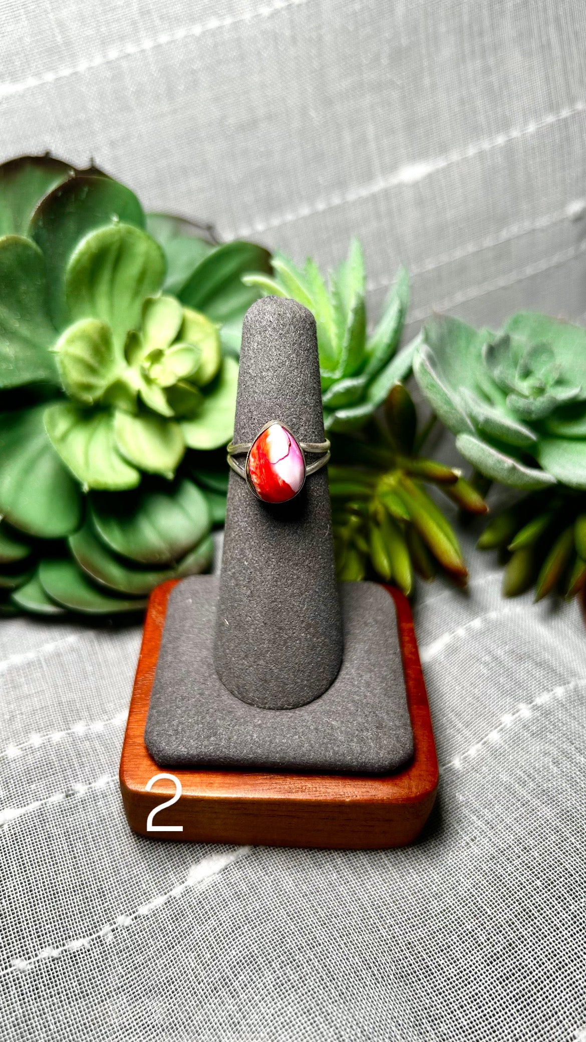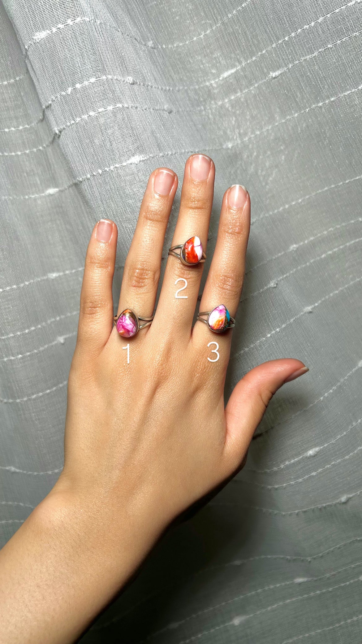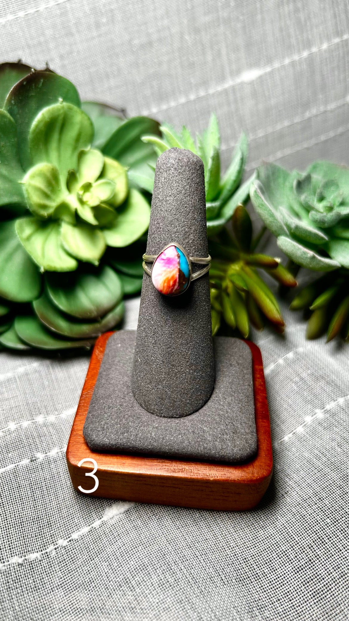 Navajo Made Mohave Turquoise & Sterling Silver Ring. It measures 1/2 of an inch long and 3/8 of an inch wide. Signed by the artist and stamped sterling silver.