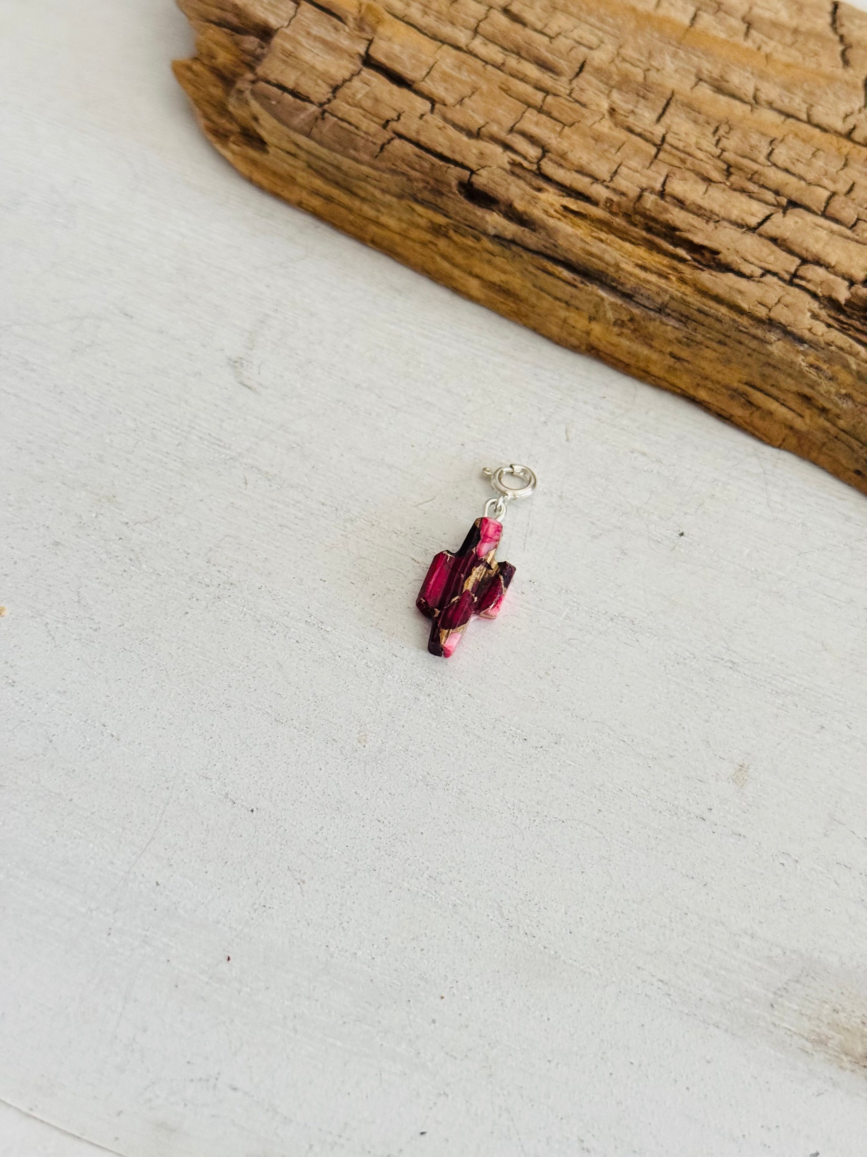 Navajo Made Rose Dahlia & Sterling Silver Saguaro Charms
