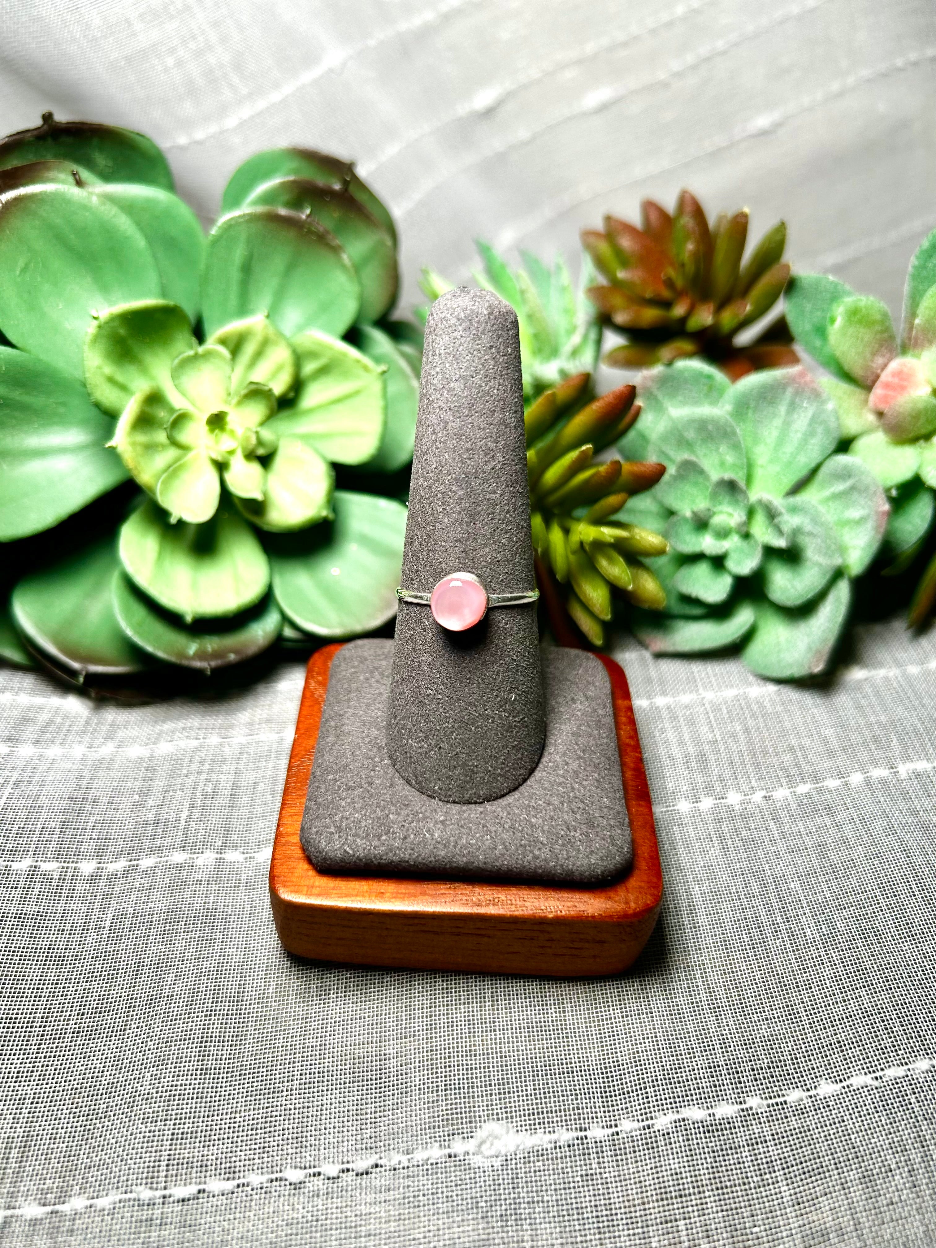 Navajo Made Mother of Pearl & Sterling Silver Ring. It measures 1/4 of an inch long and 1/4 of an inch wide. Signed by the artist and stamped sterling silver.