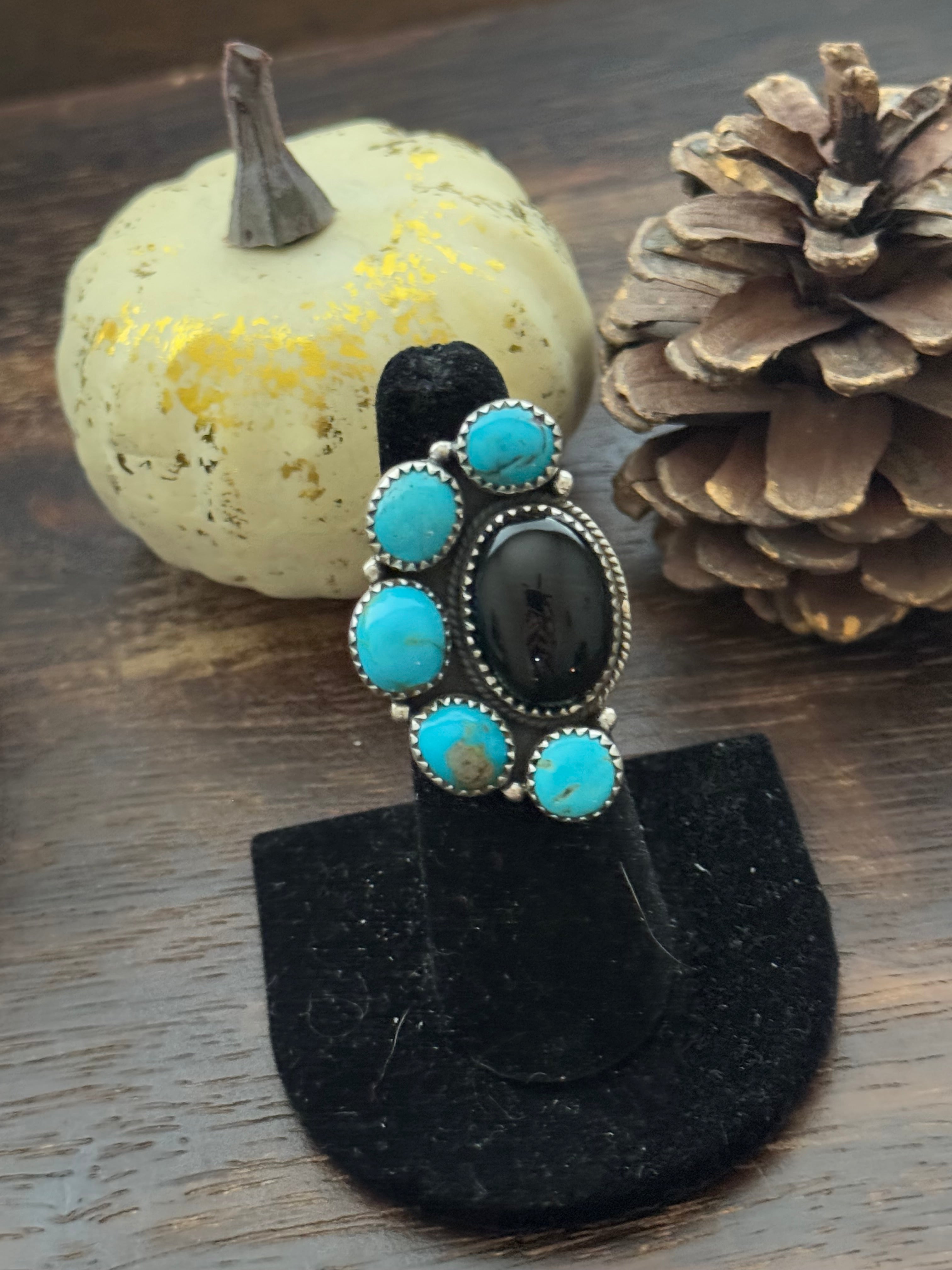 Navajo Made Multi Stone & Sterling Silver Adjustable Ring