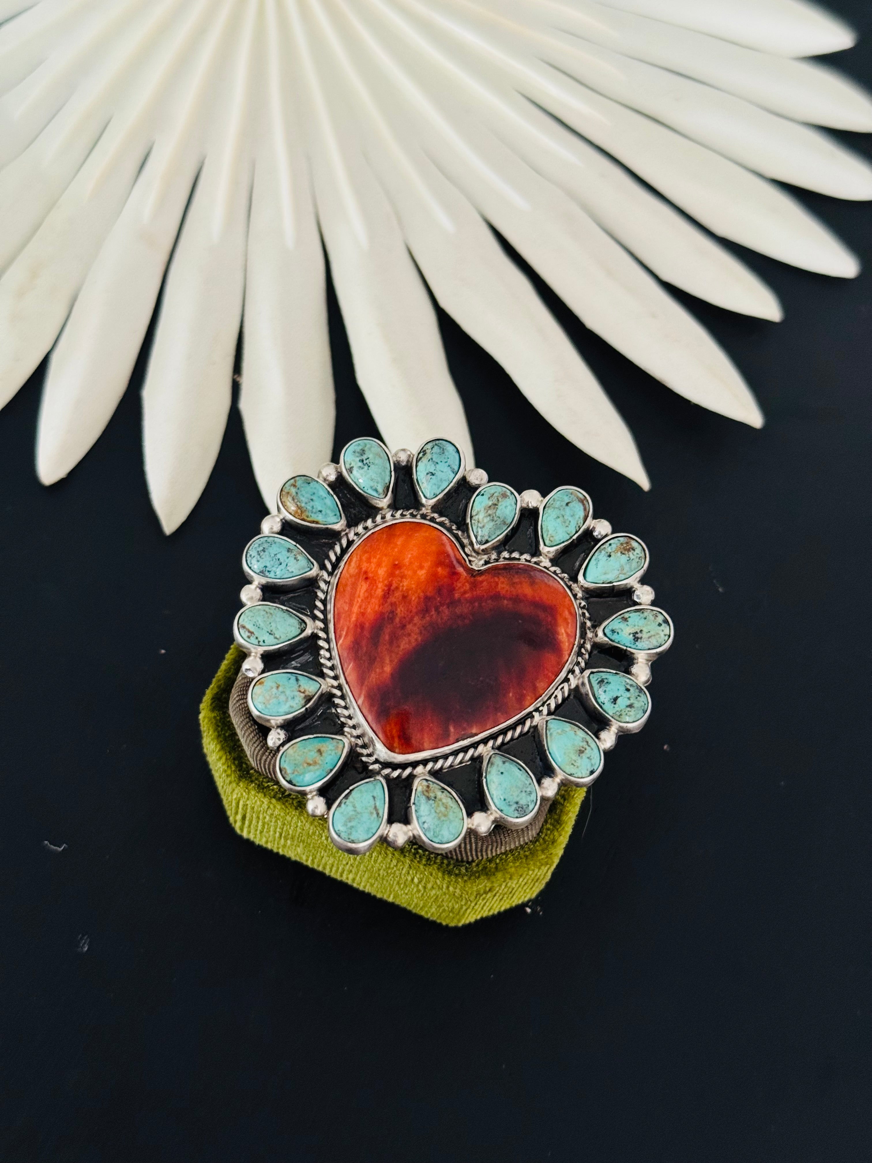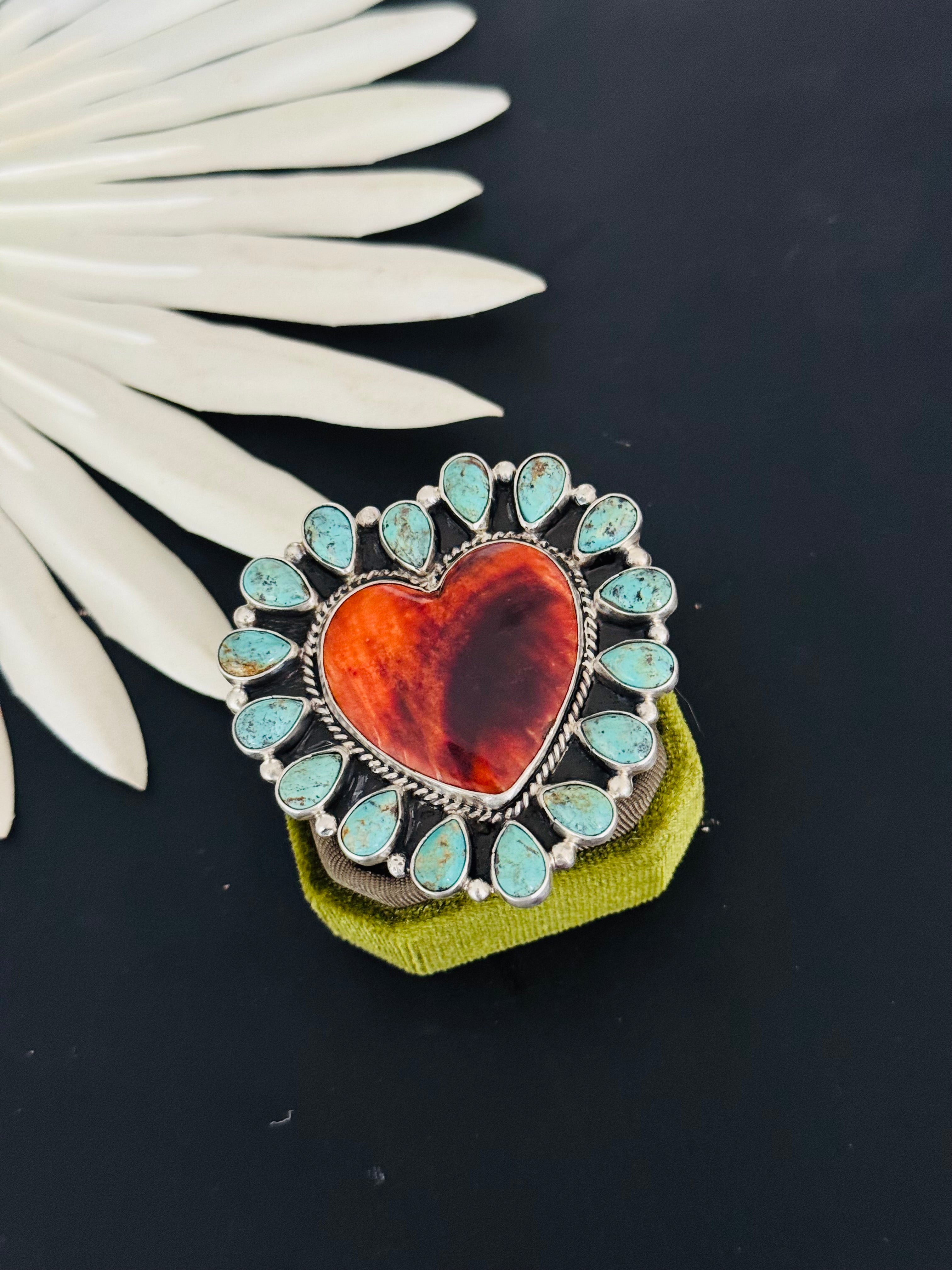 Navajo Made Multi Stone & Sterling Silver Adjustable Heart Cluster Ring