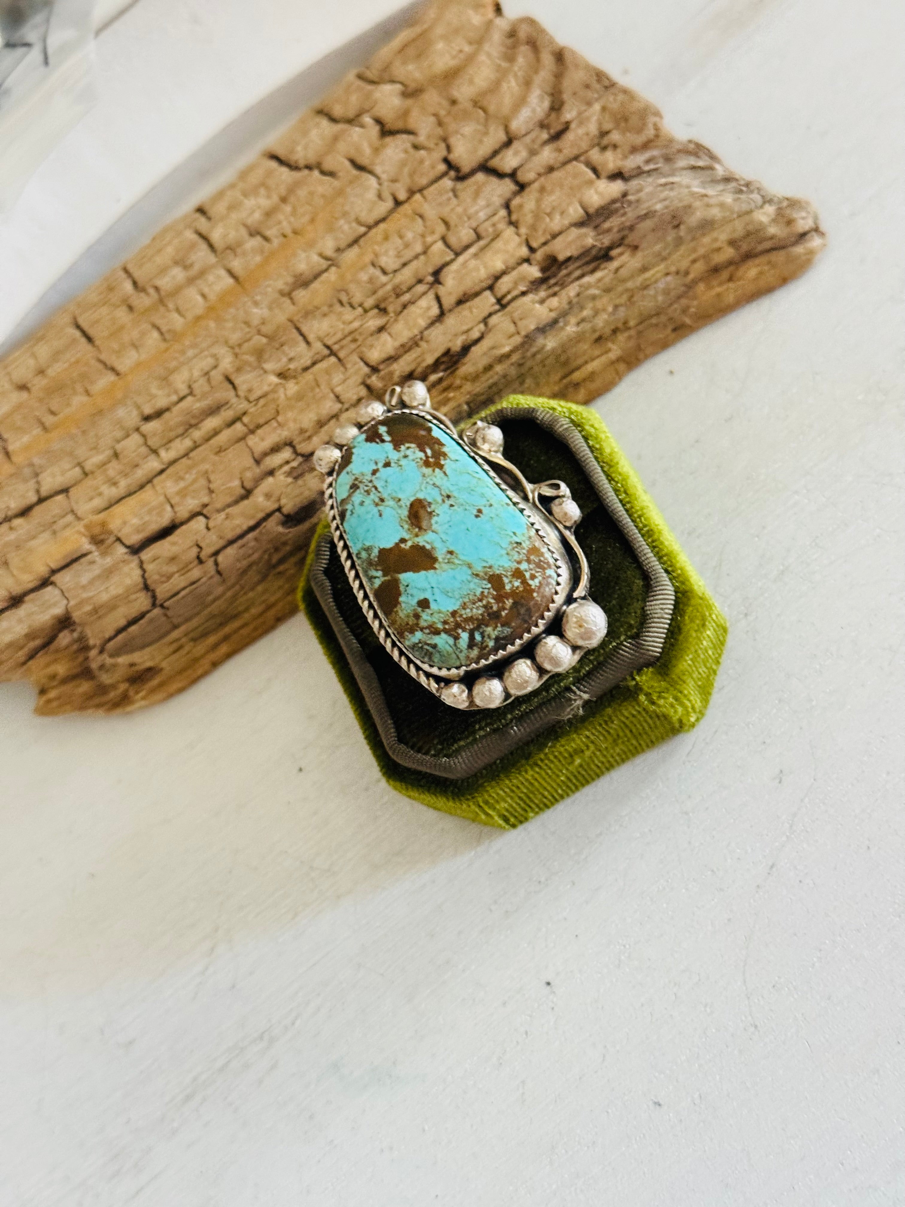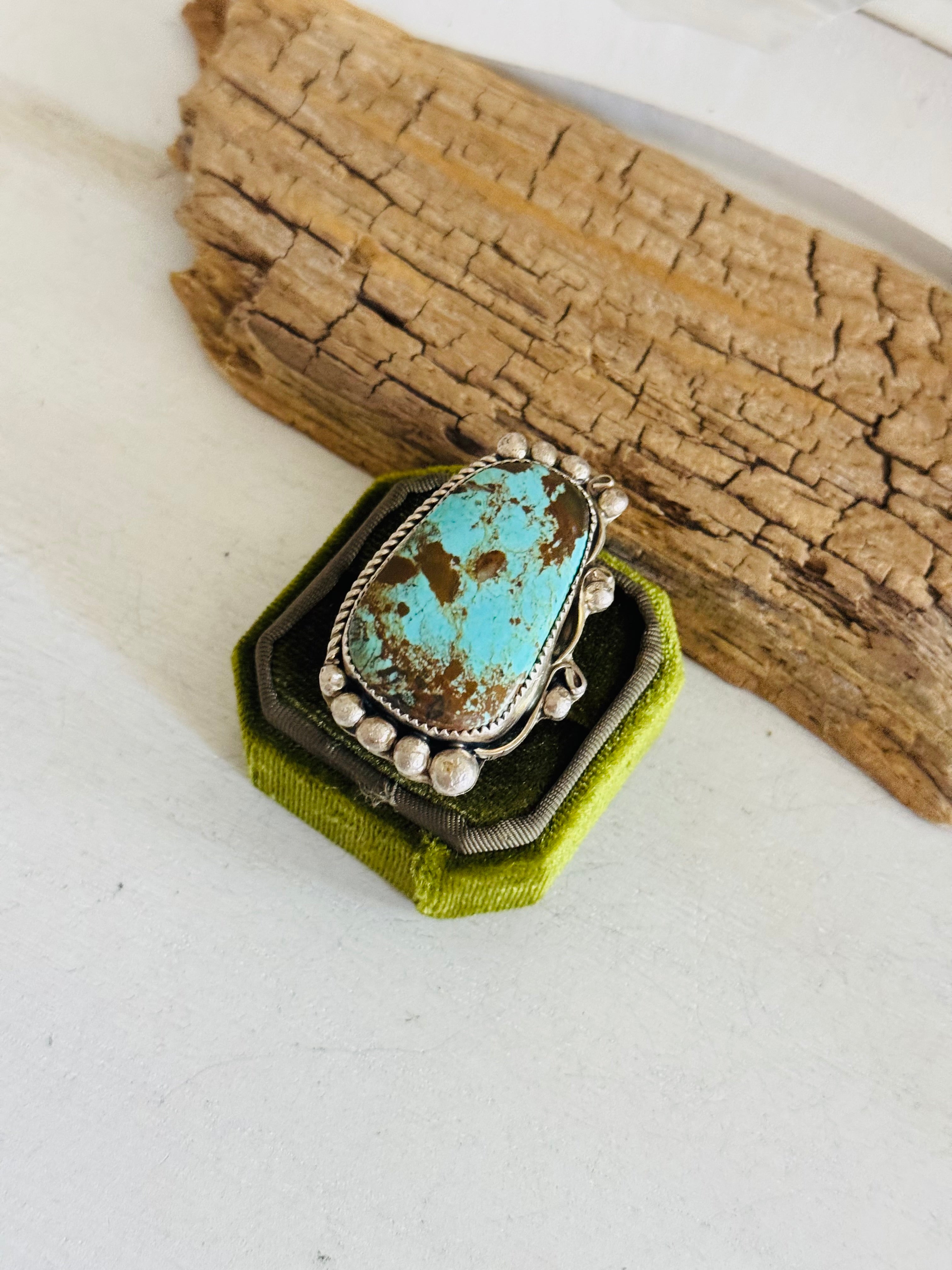 Navajo Made #8 Turquoise & Sterling Silver Adjustable Ring