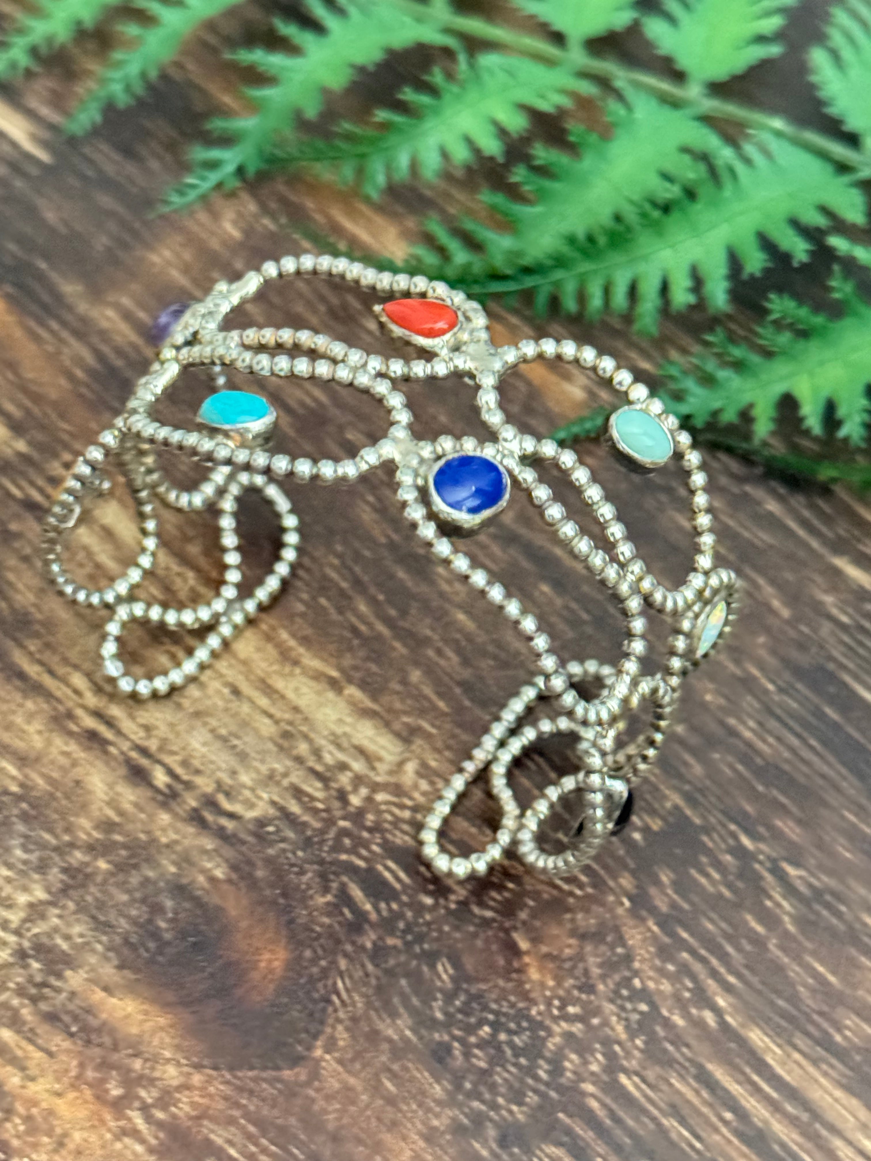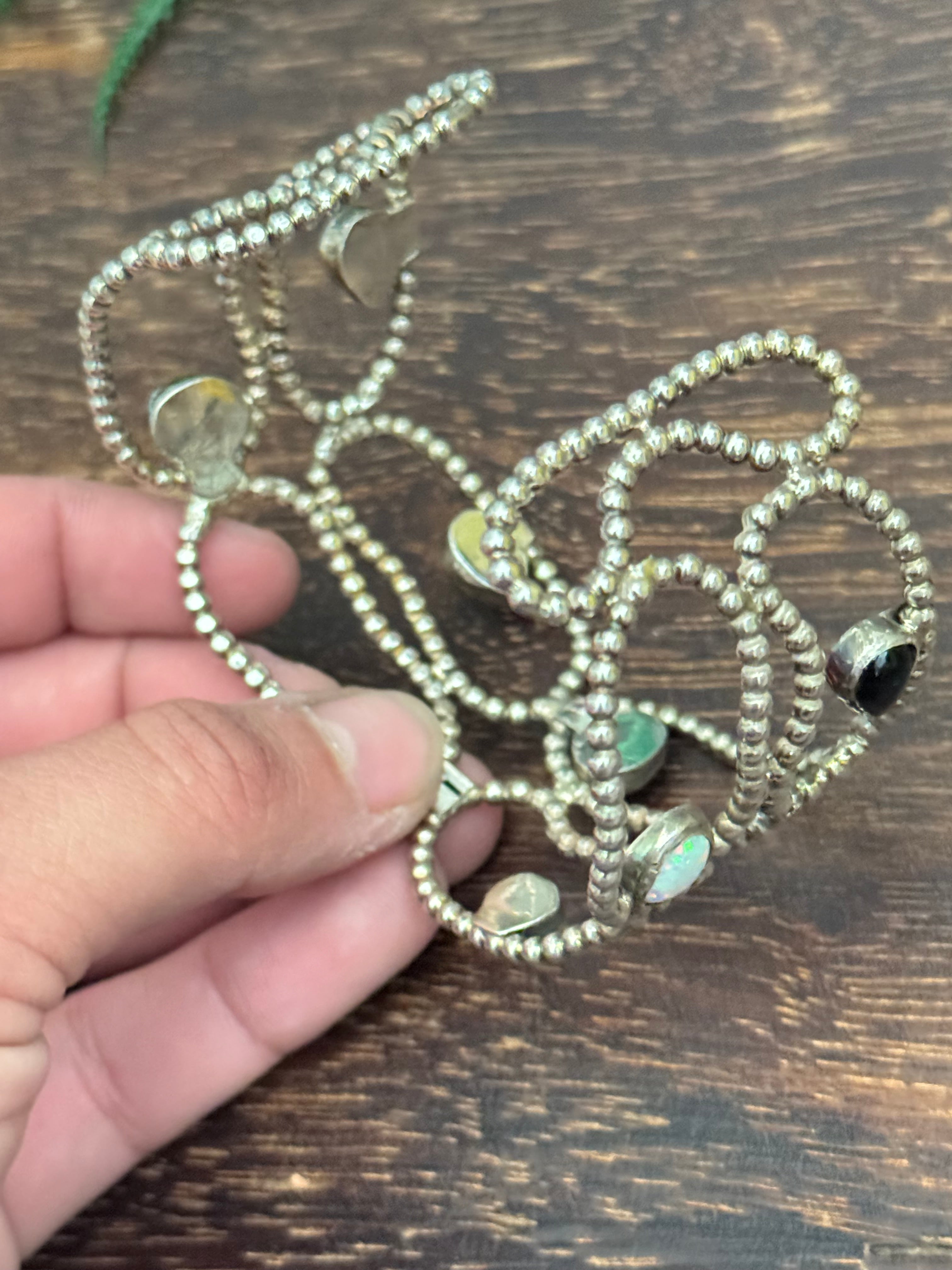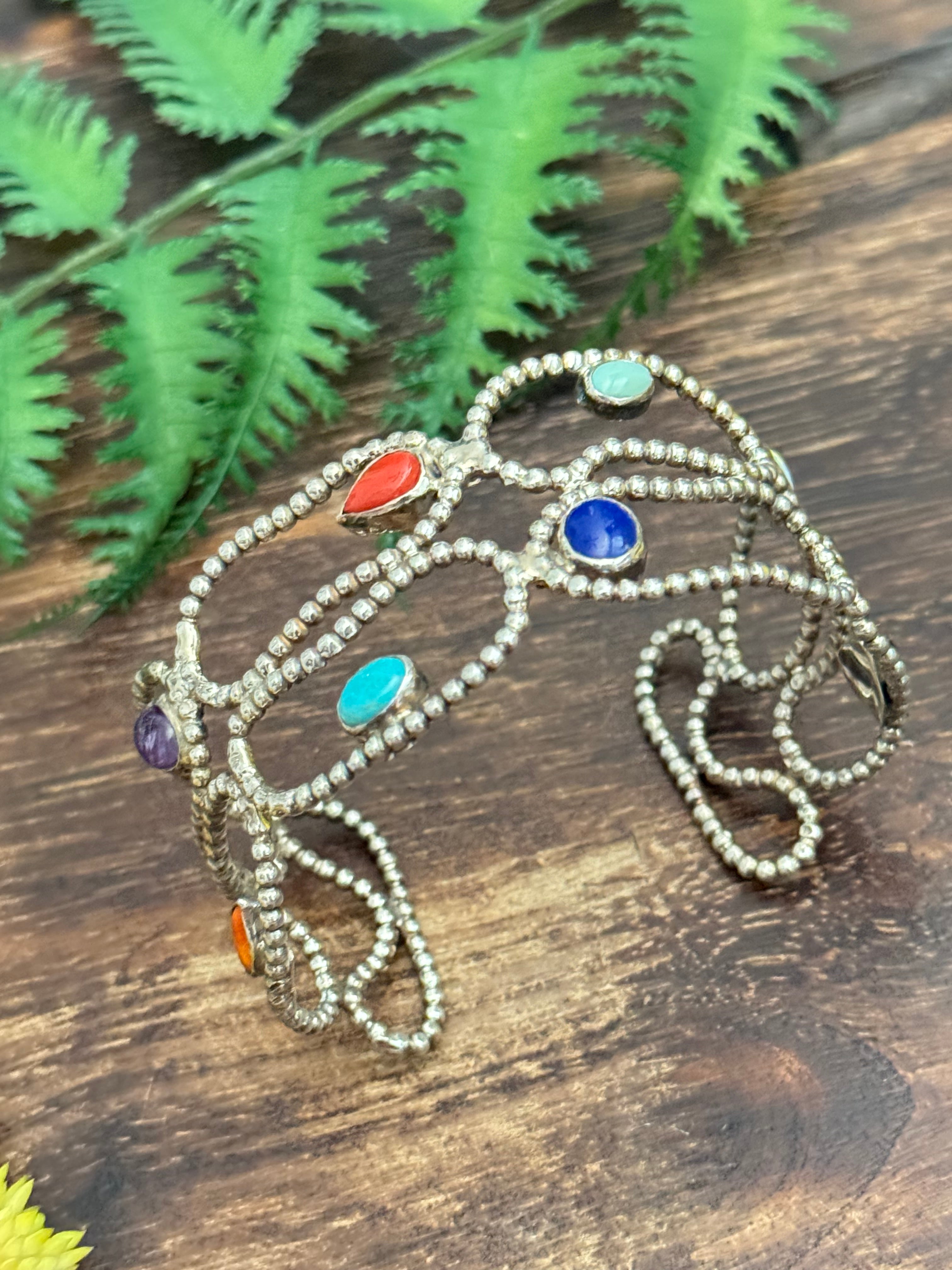 Navajo Made Multi Stone & Sterling Silver Cuff Bracelet