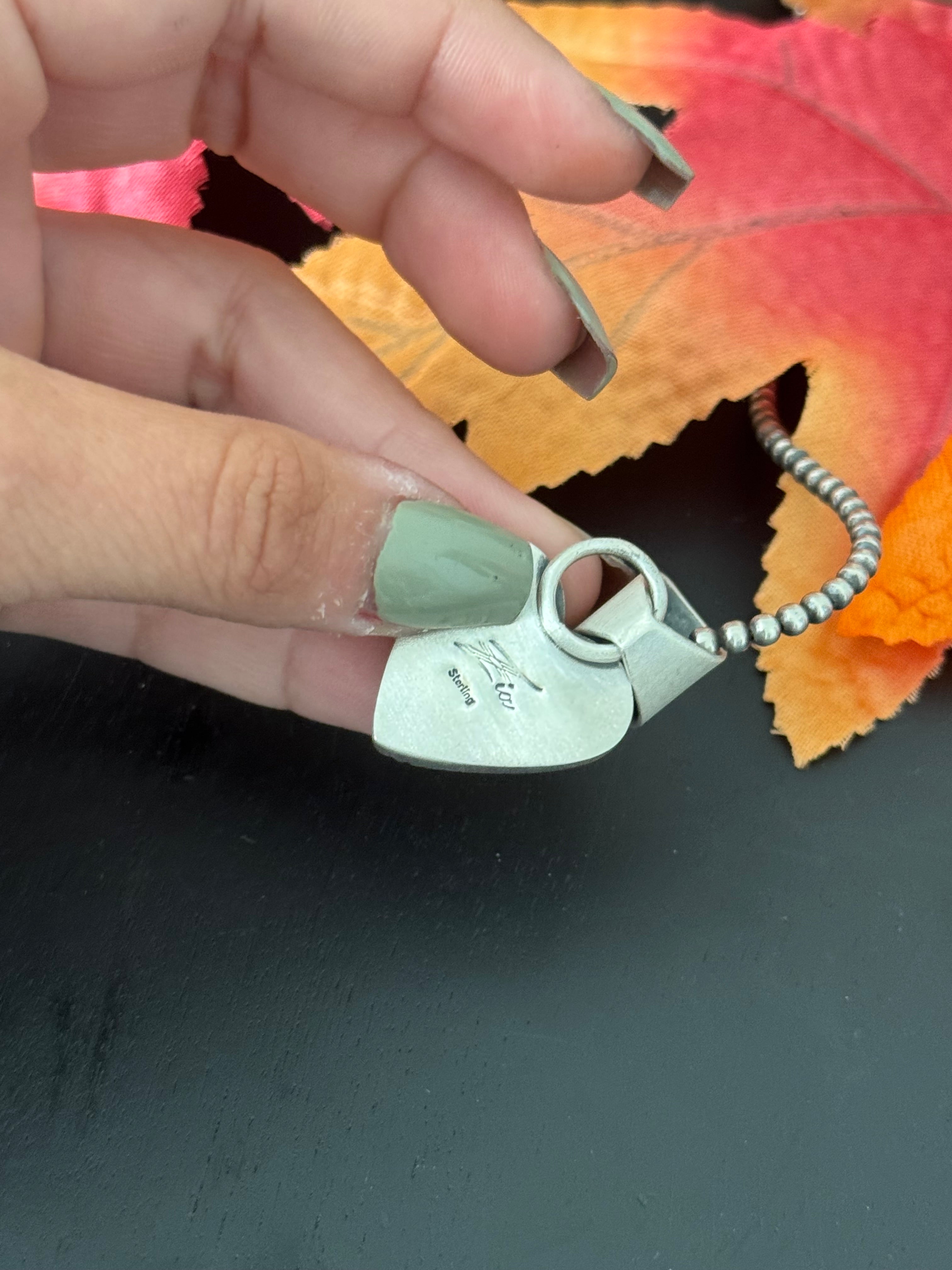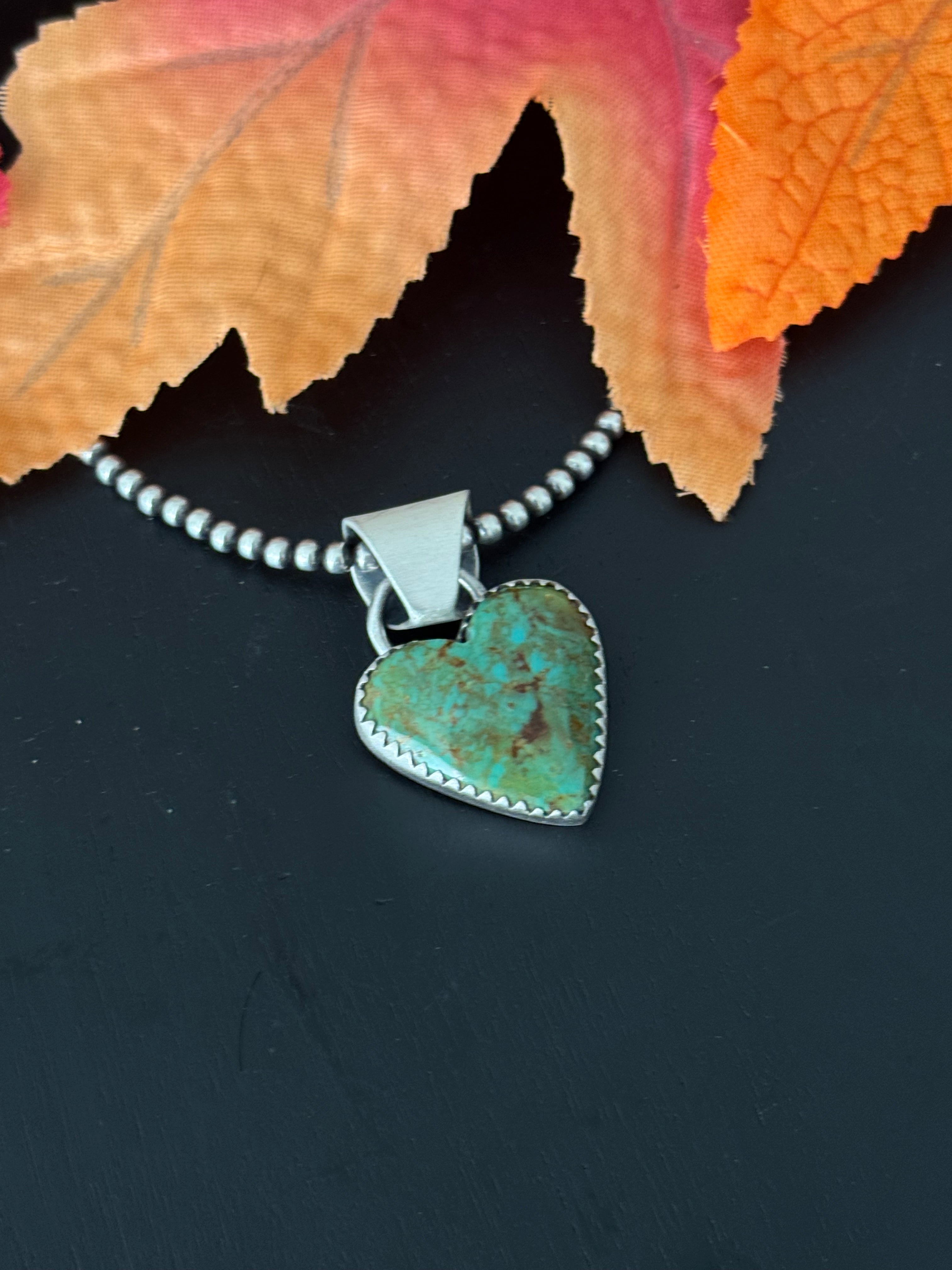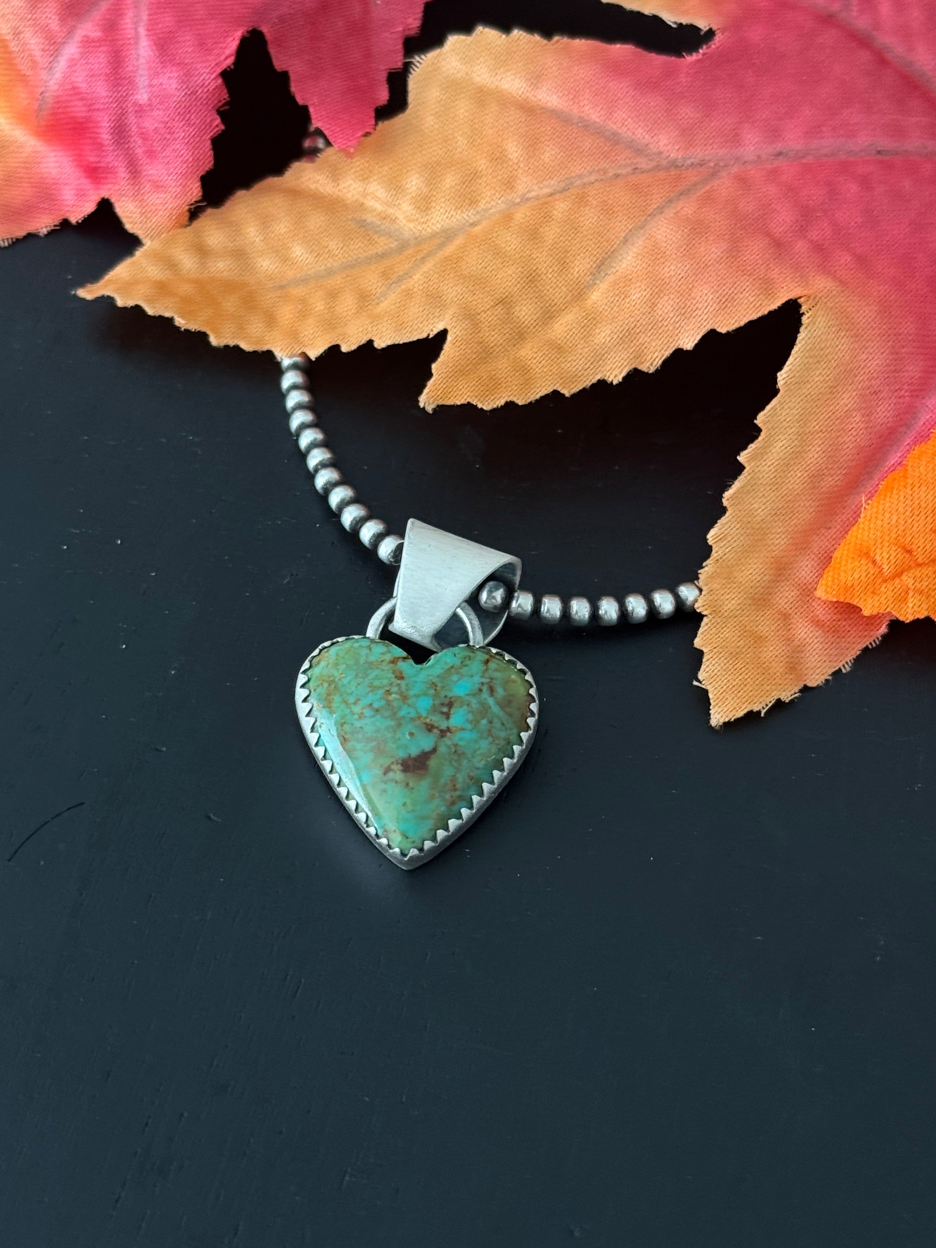 Navajo Made Kingman Turquoise & Sterling Silver Heart Pendant