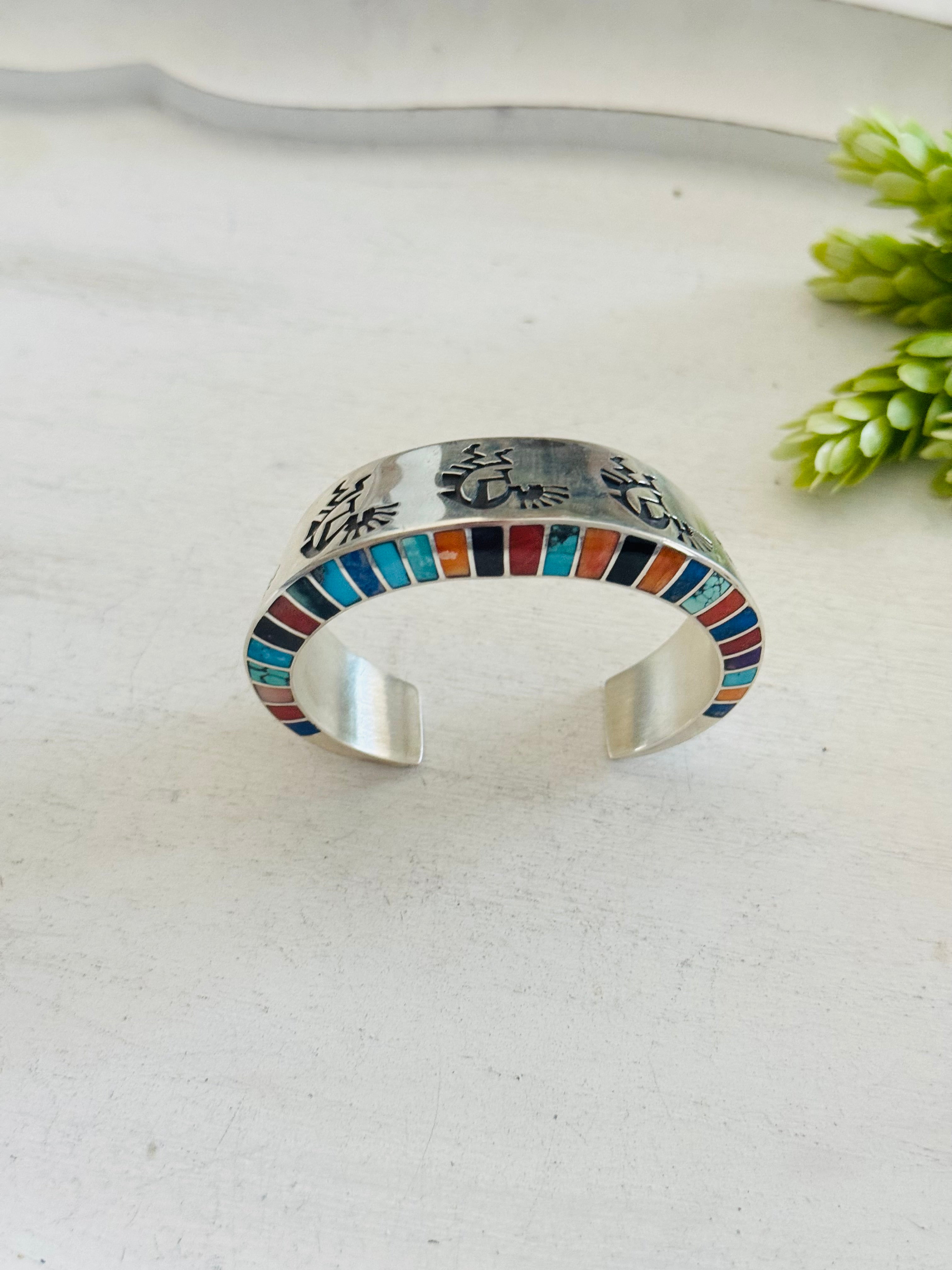 Navajo Made Multi Stone & Sterling Silver Inlay Cuff Bracelet