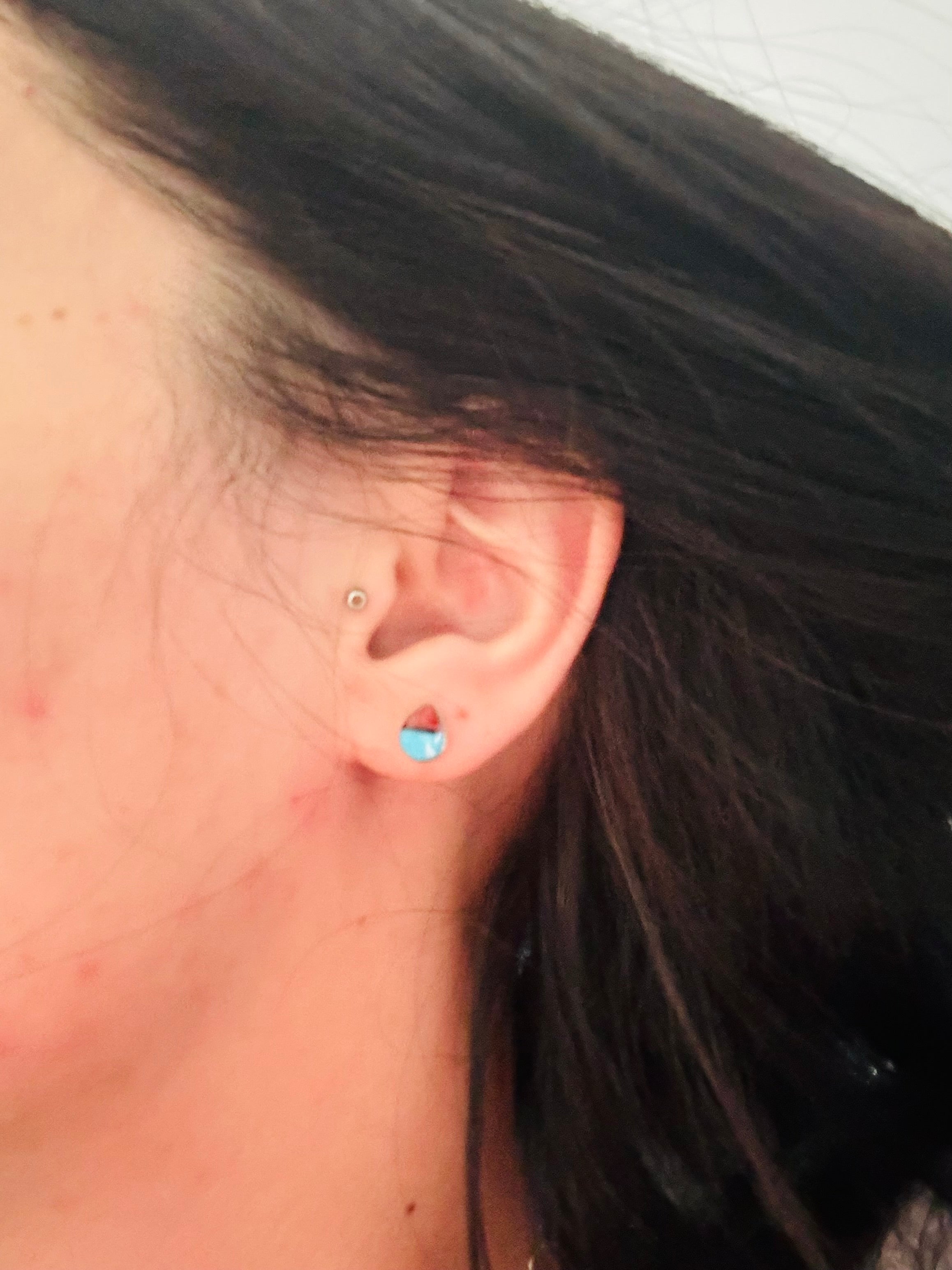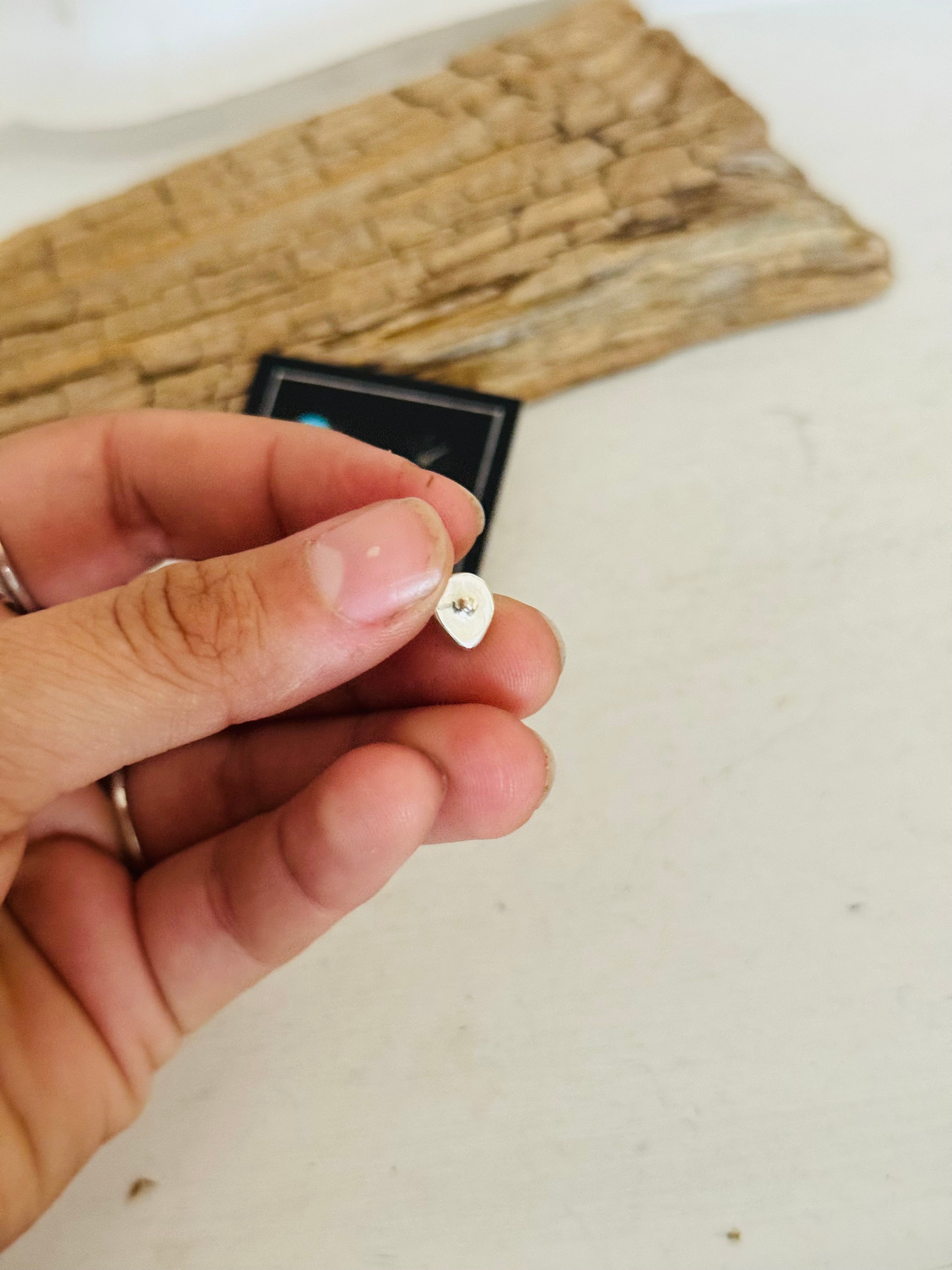 - These are must haves for your everyday wear. Navajo Made Kingman Turquoise & Sterling Silver Inlay Post Earrings. It measures 3/8 of an inch long. Signed by the artist and stamped sterling silver.