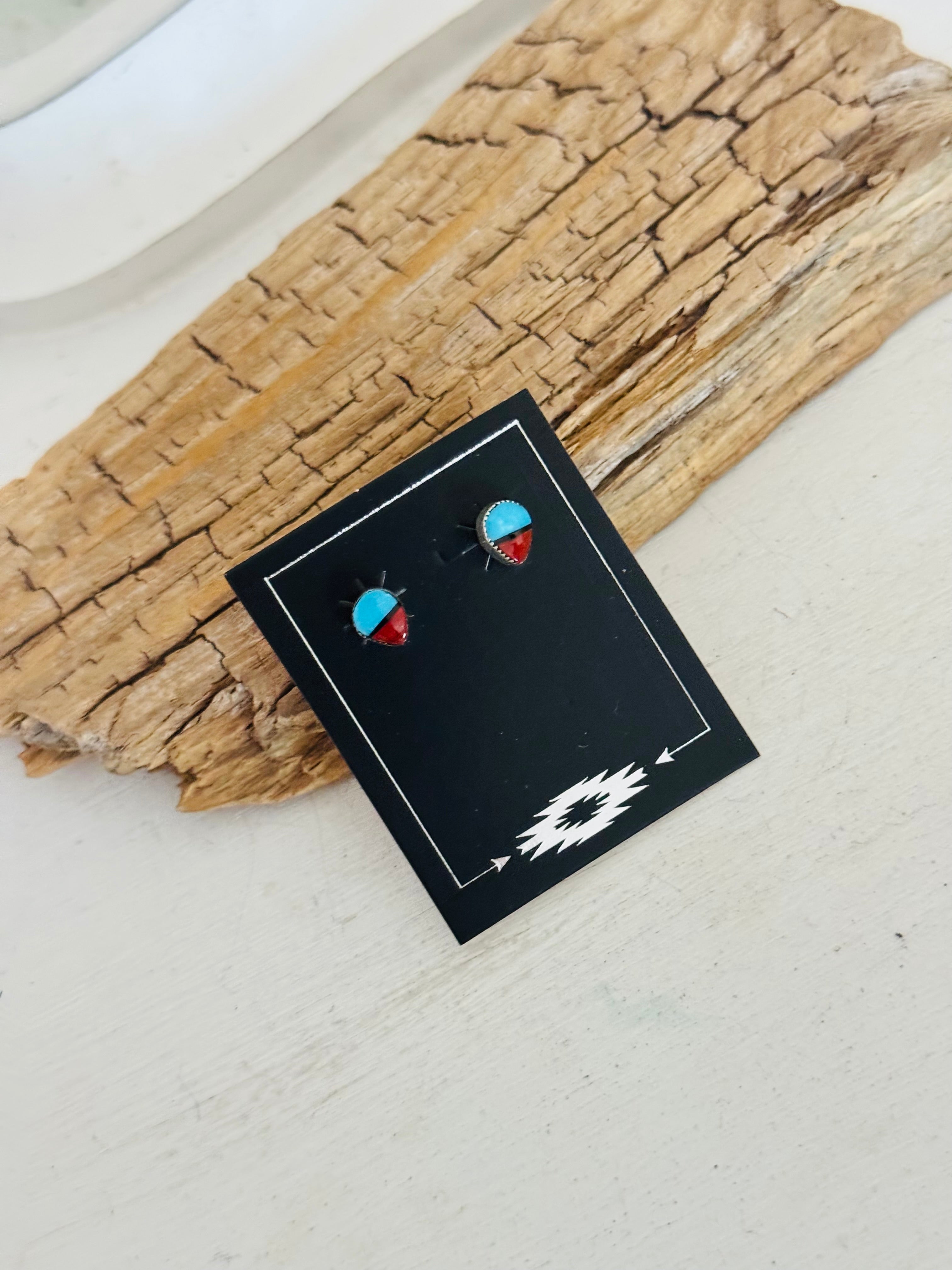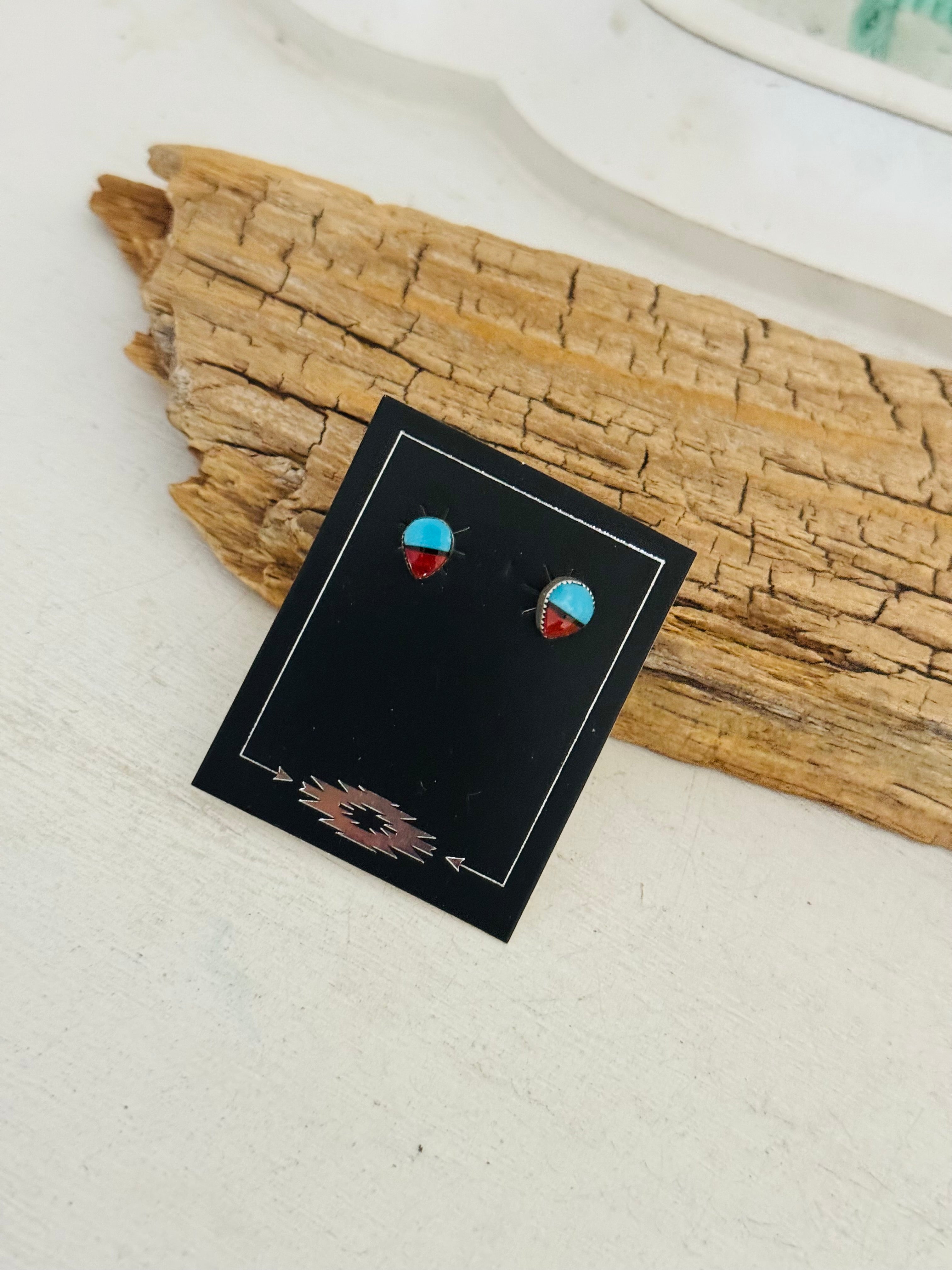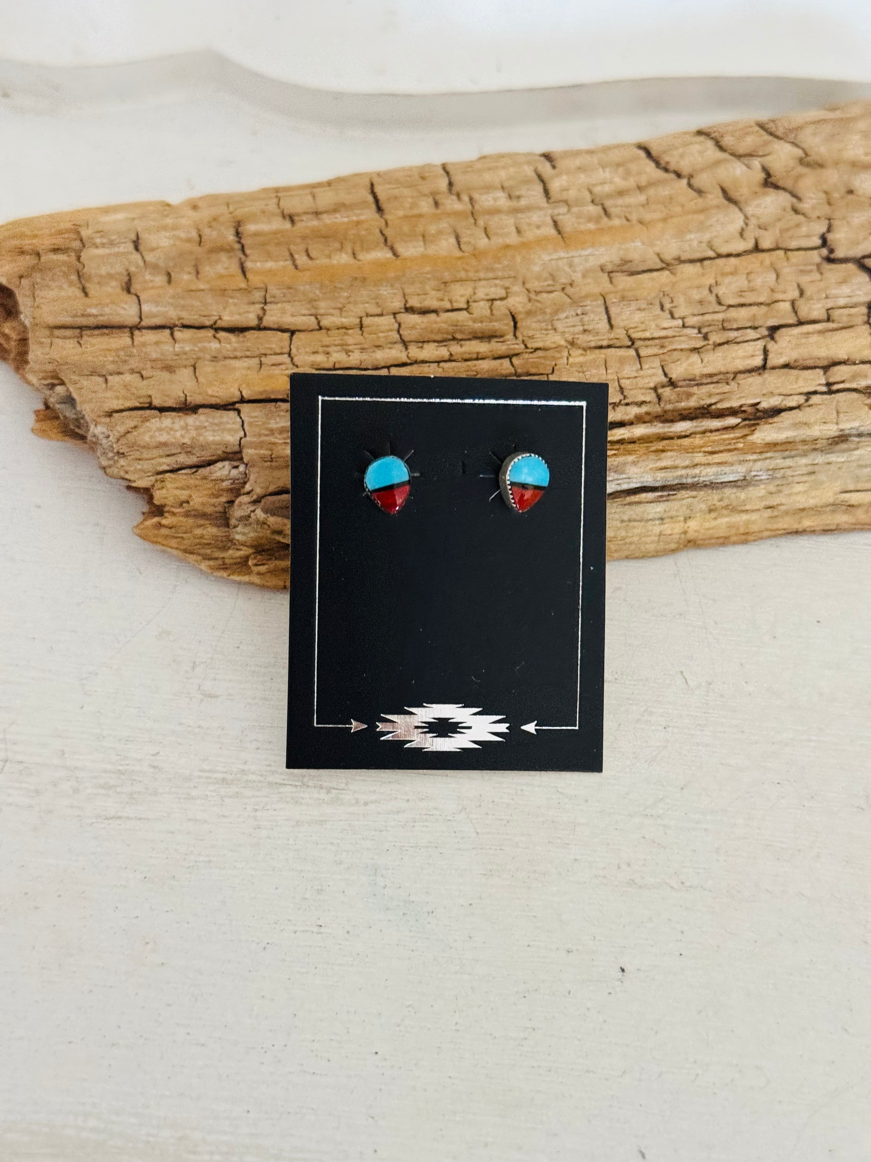 Navajo Made Multi Stone & Sterling Silver Inlay Post Earrings