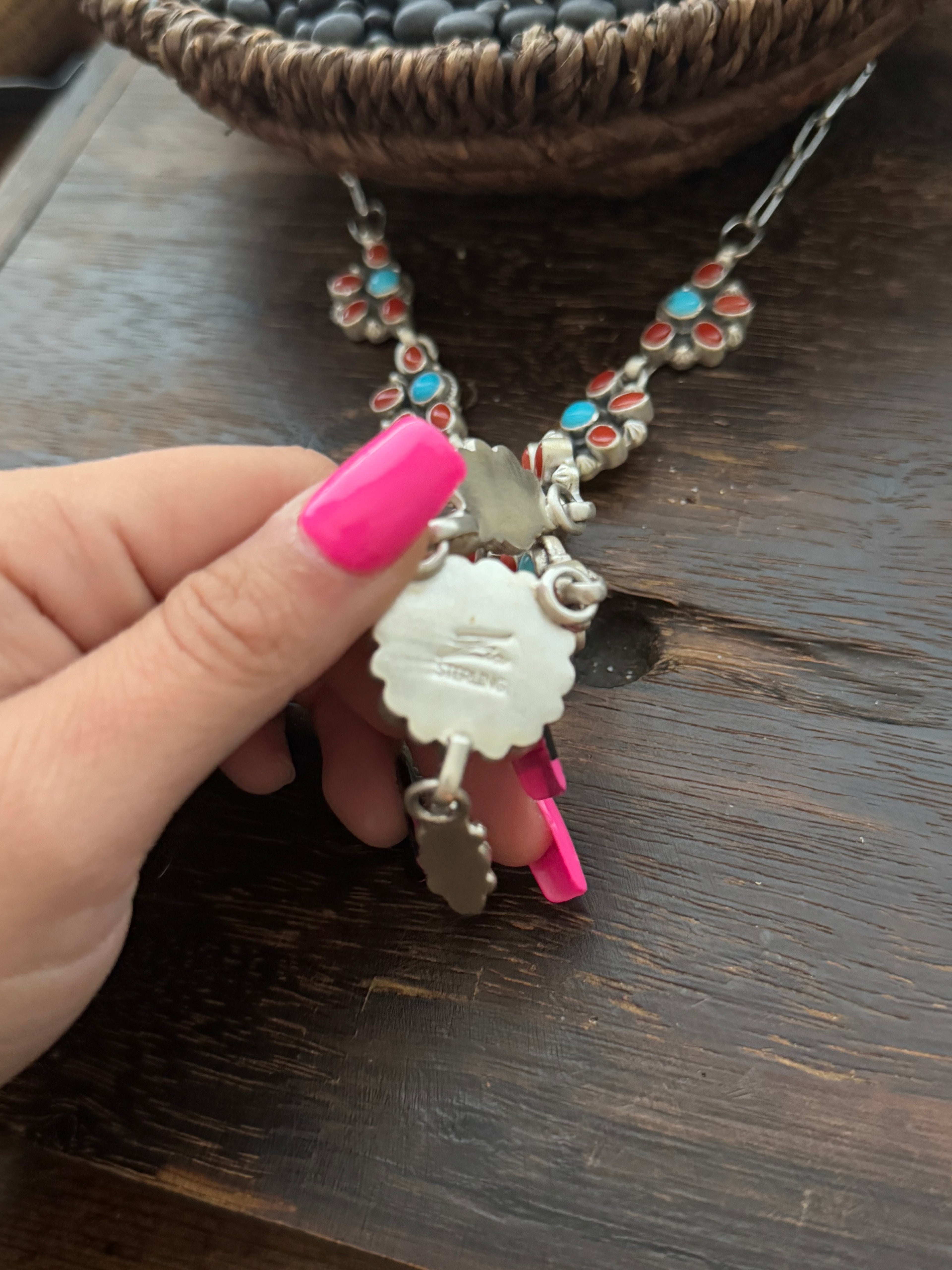 Navajo Made Multi Stone & Sterling Silver Necklace