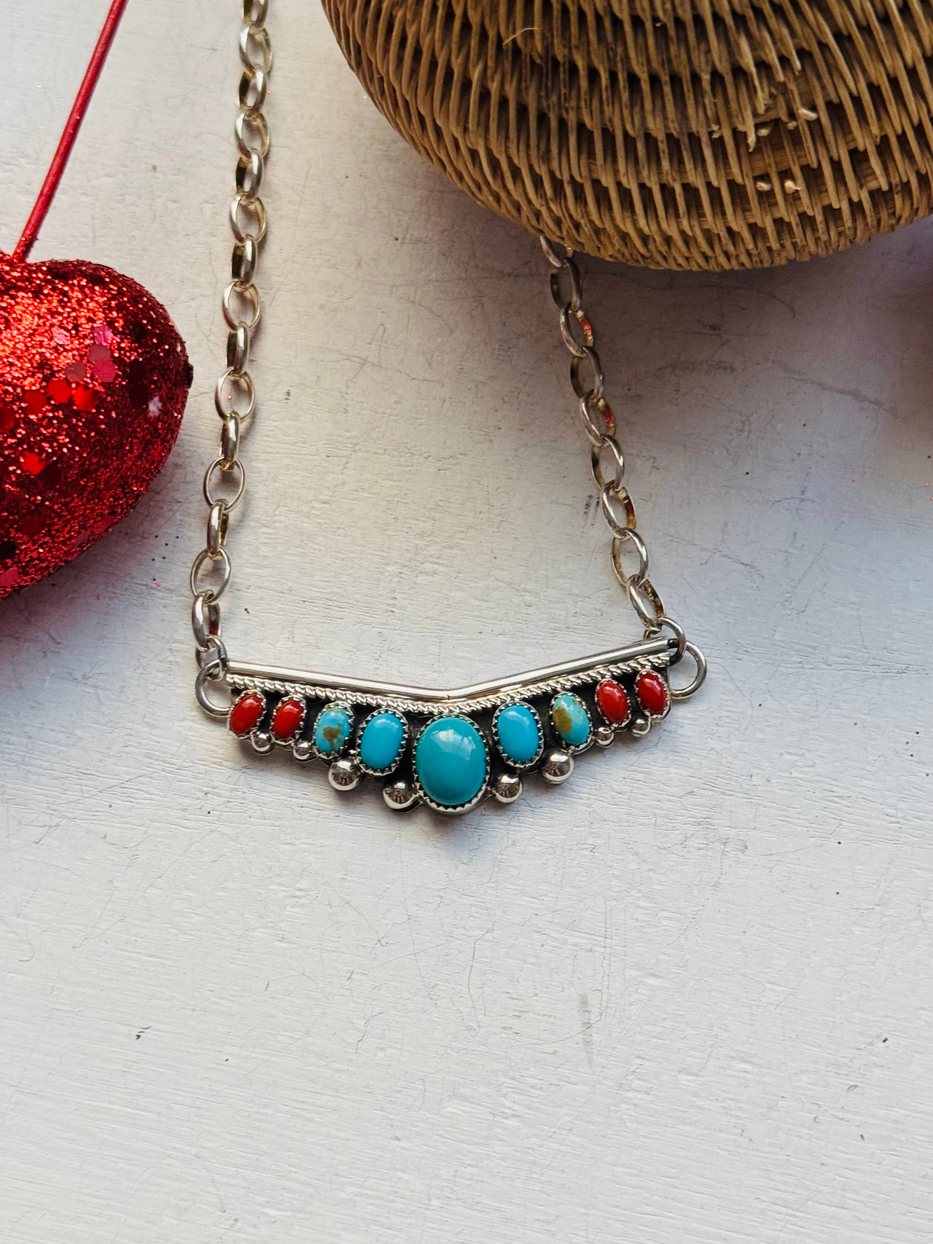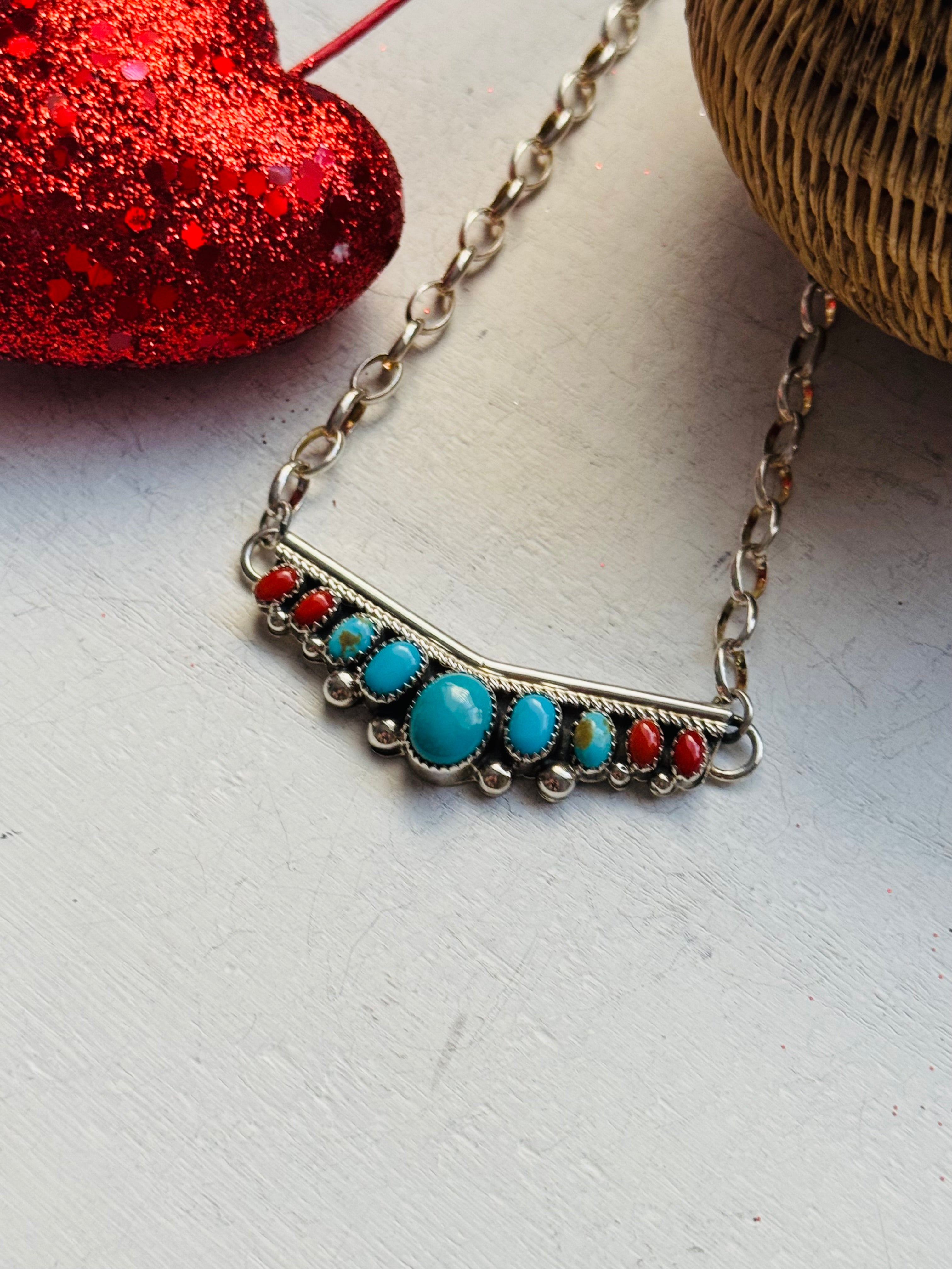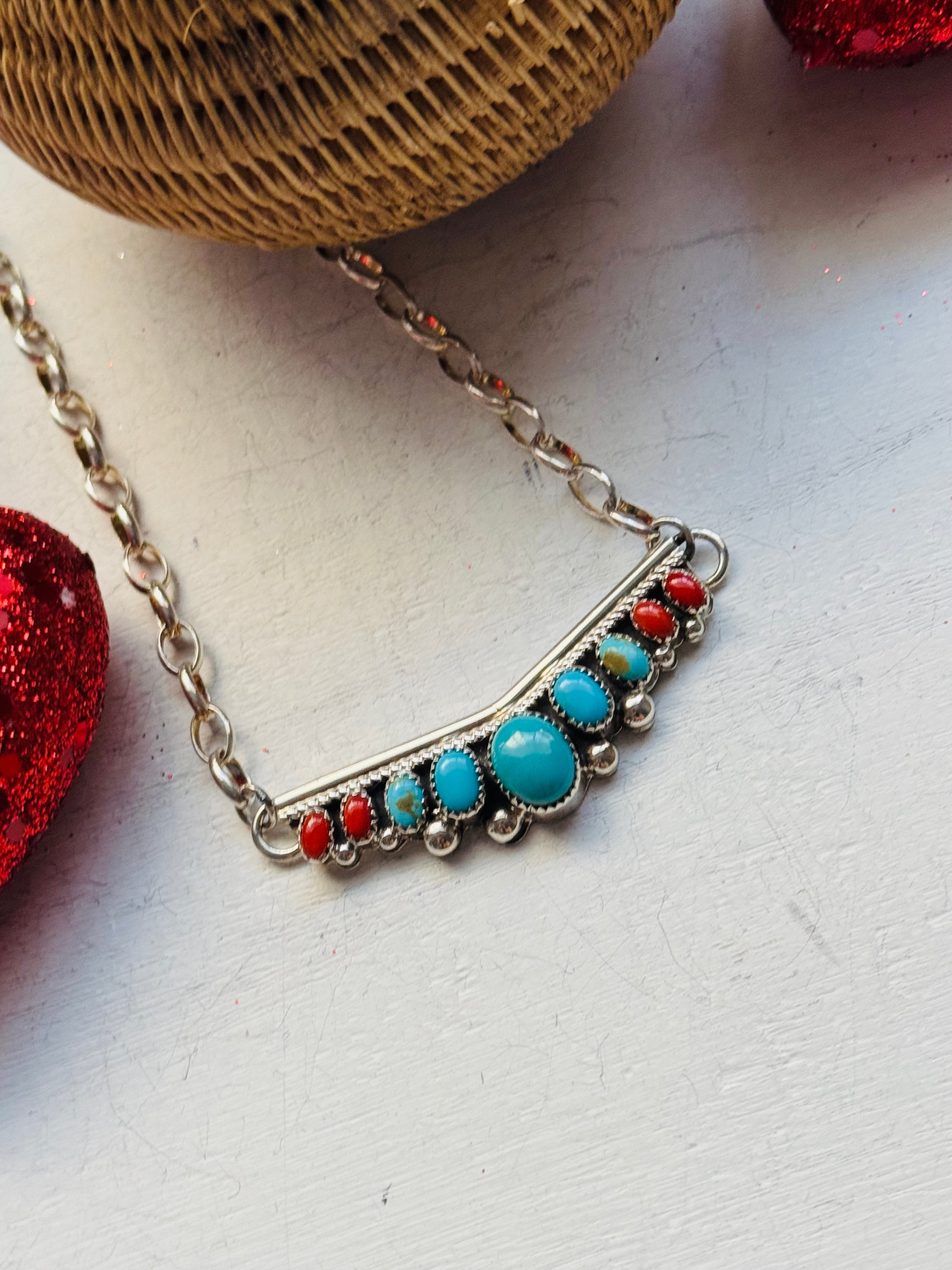 Navajo Made Multi Stone & Sterling Silver Necklace