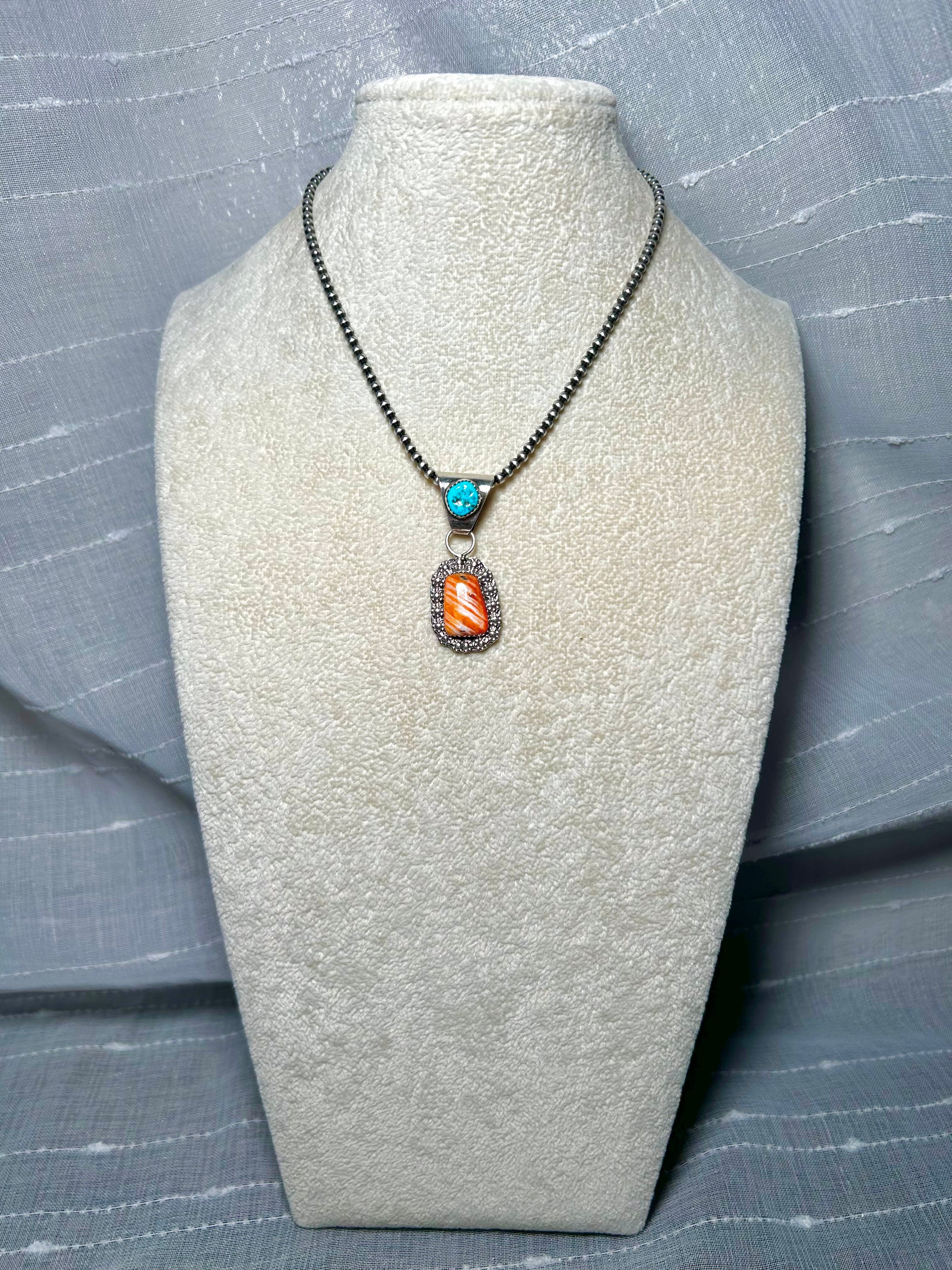 Navajo Made Multi Stone & Sterling Silver Pendant. It measures 1 3/4 inches long and 3/4 of an inch wide. Pendant Only! Signed by the artist and stamped sterling silver.