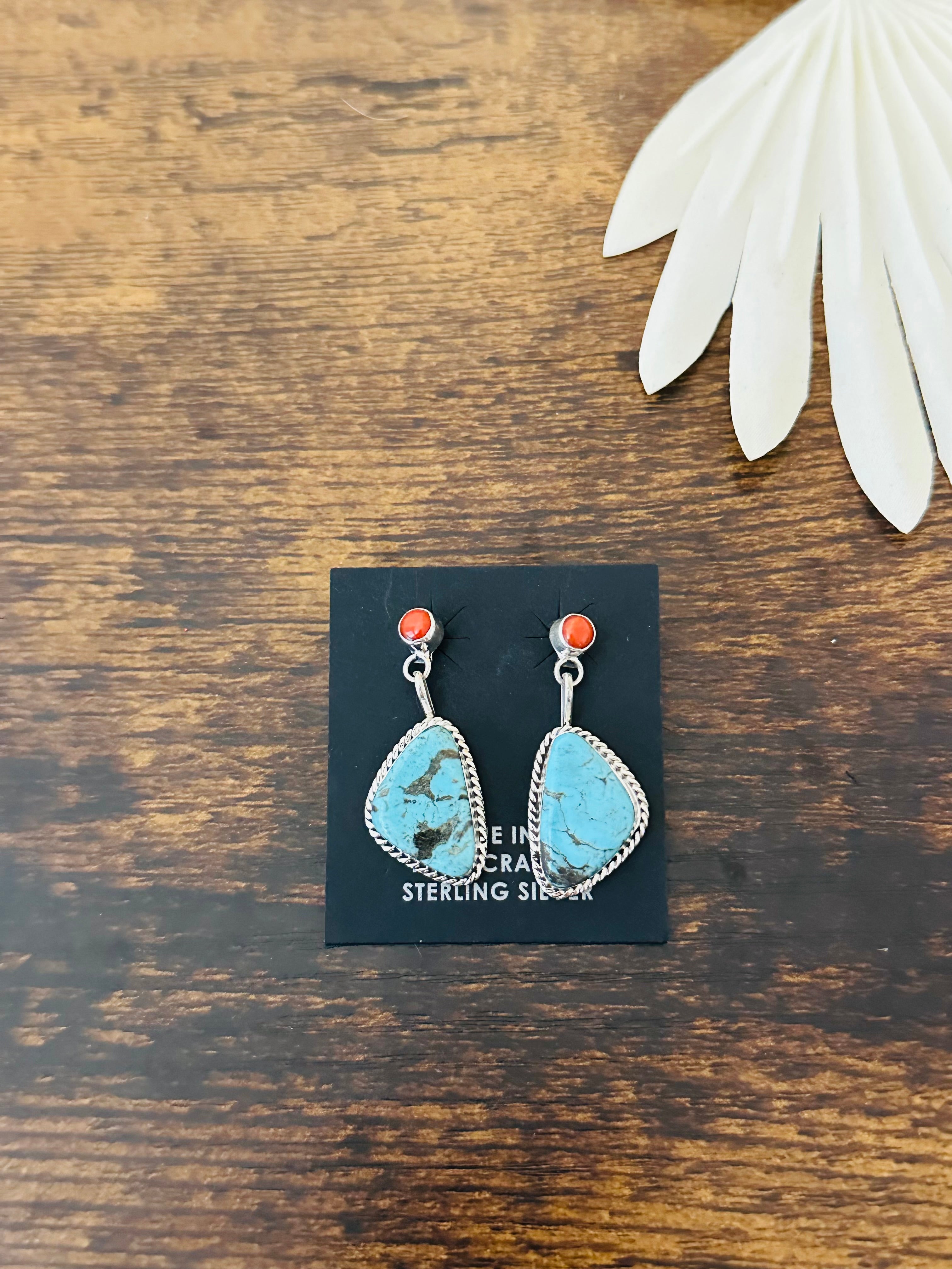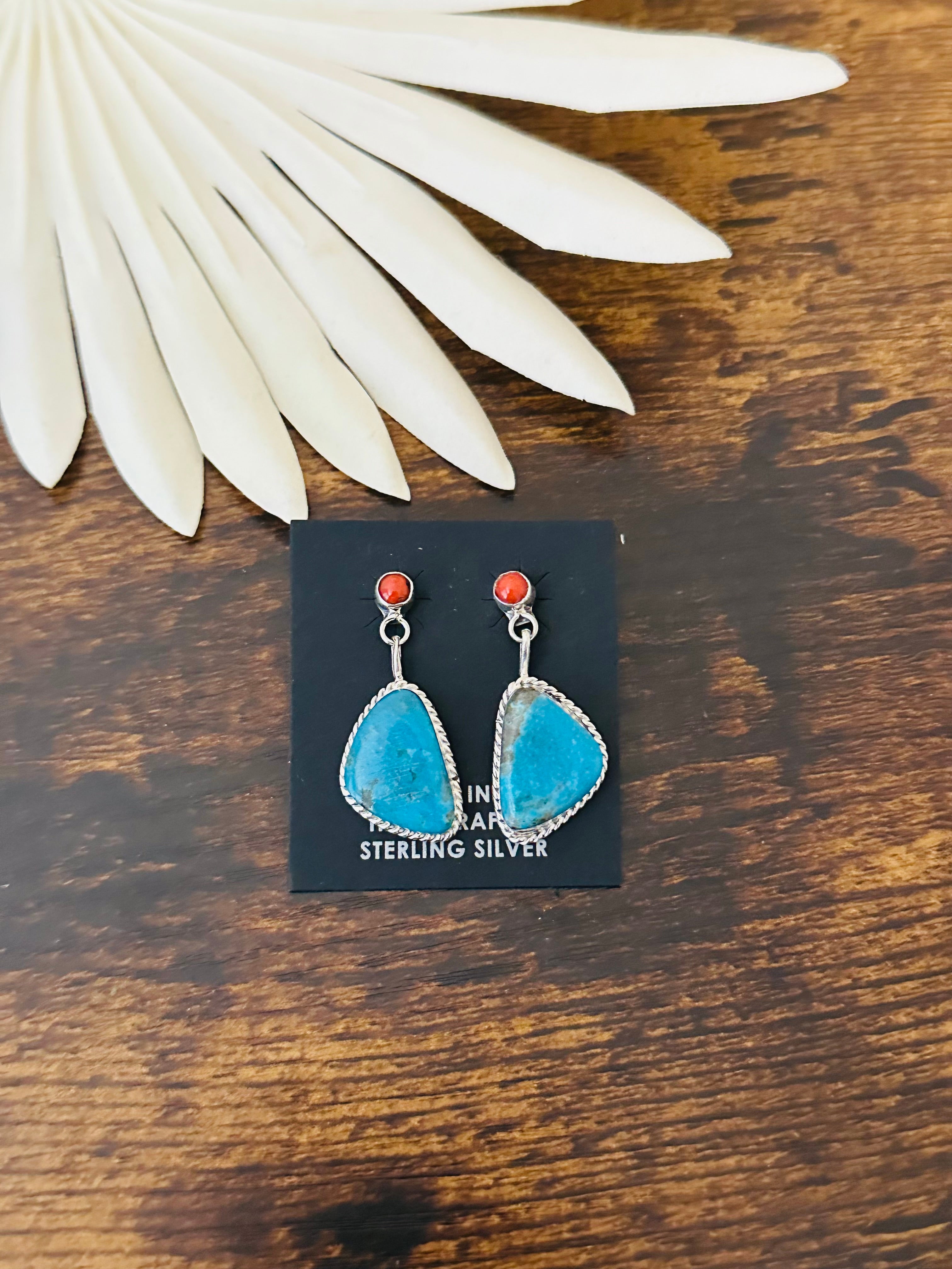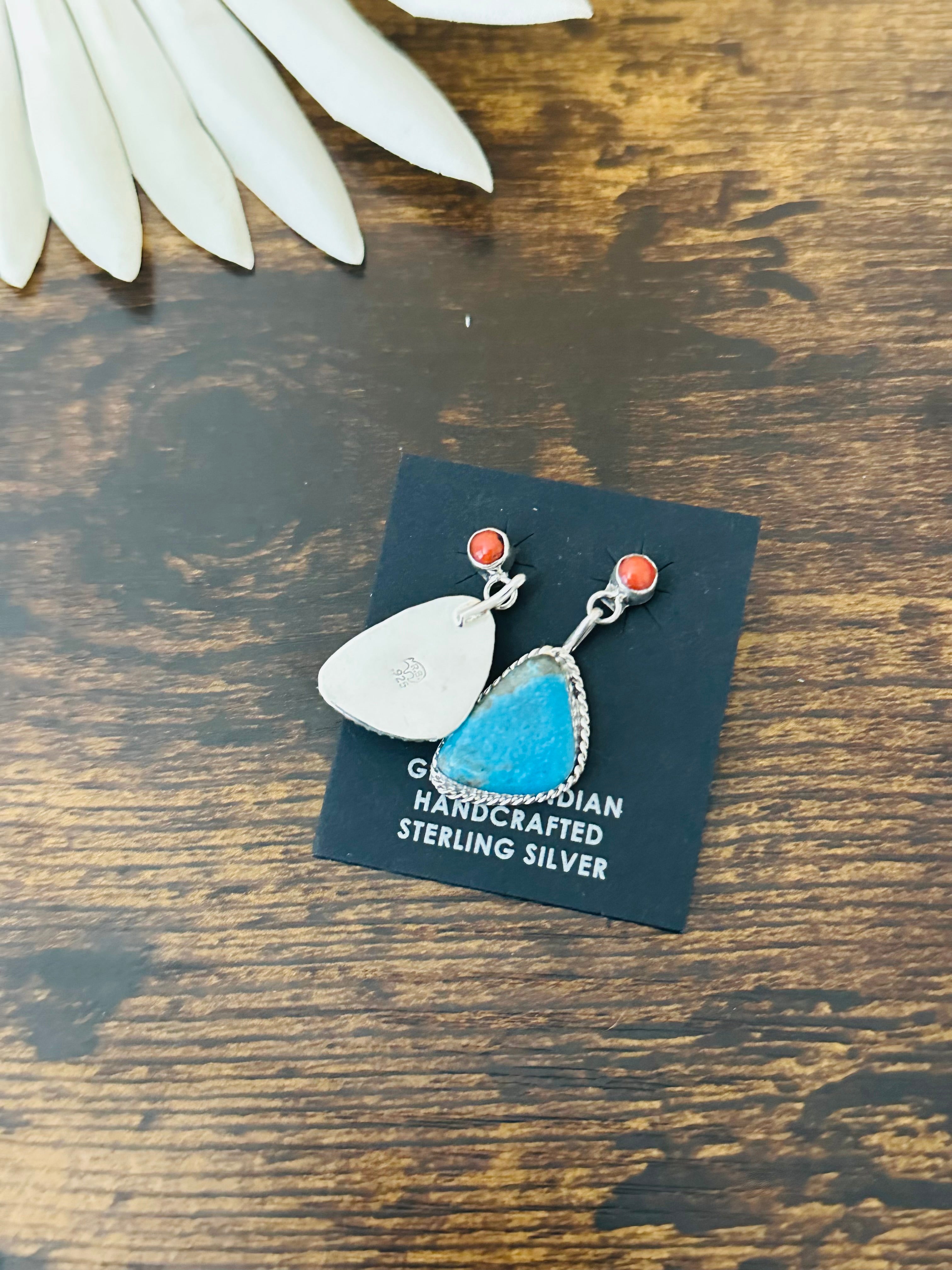 Navajo Made Multi Stone & Sterling Silver Post Dangle Earrings