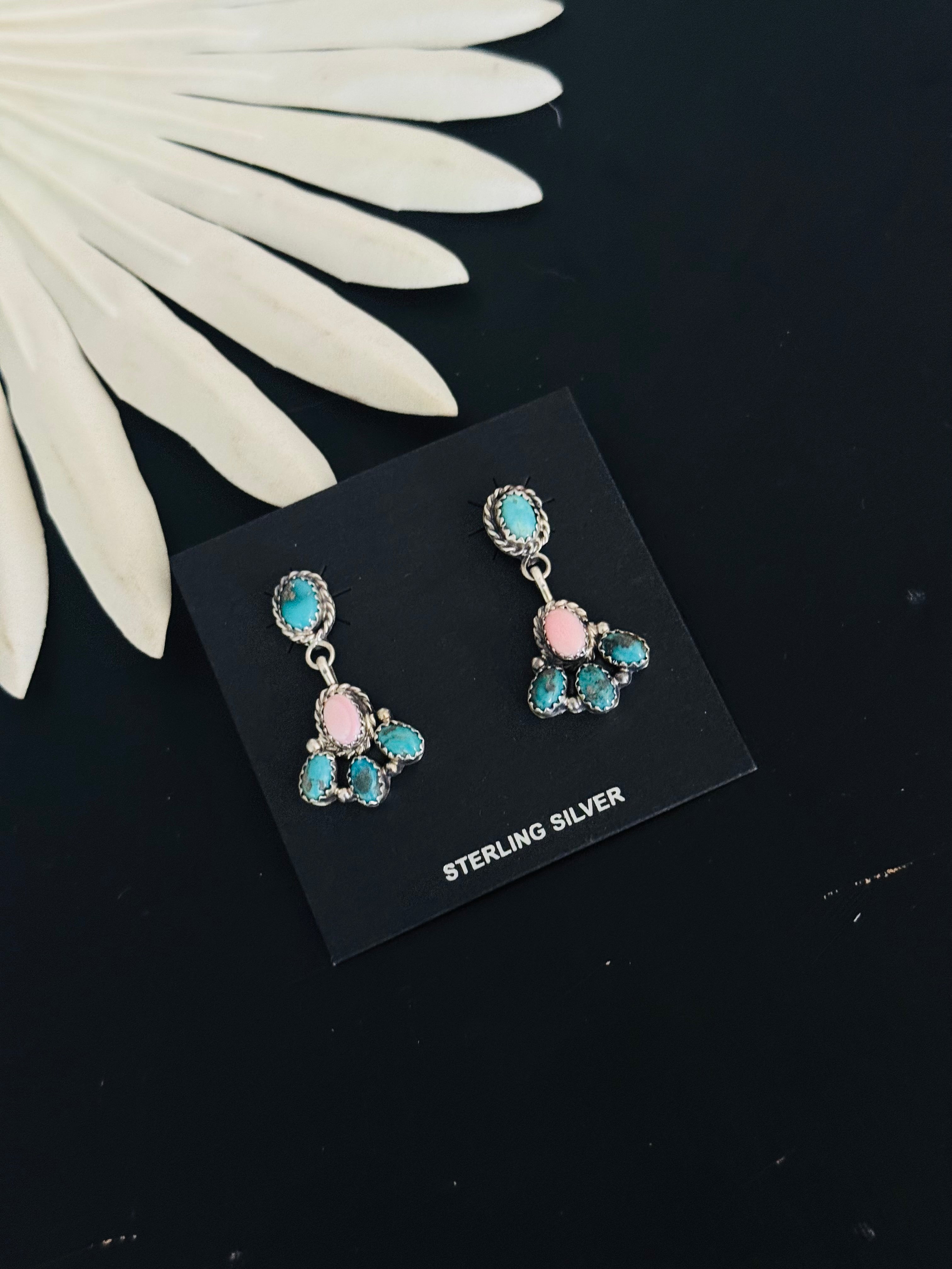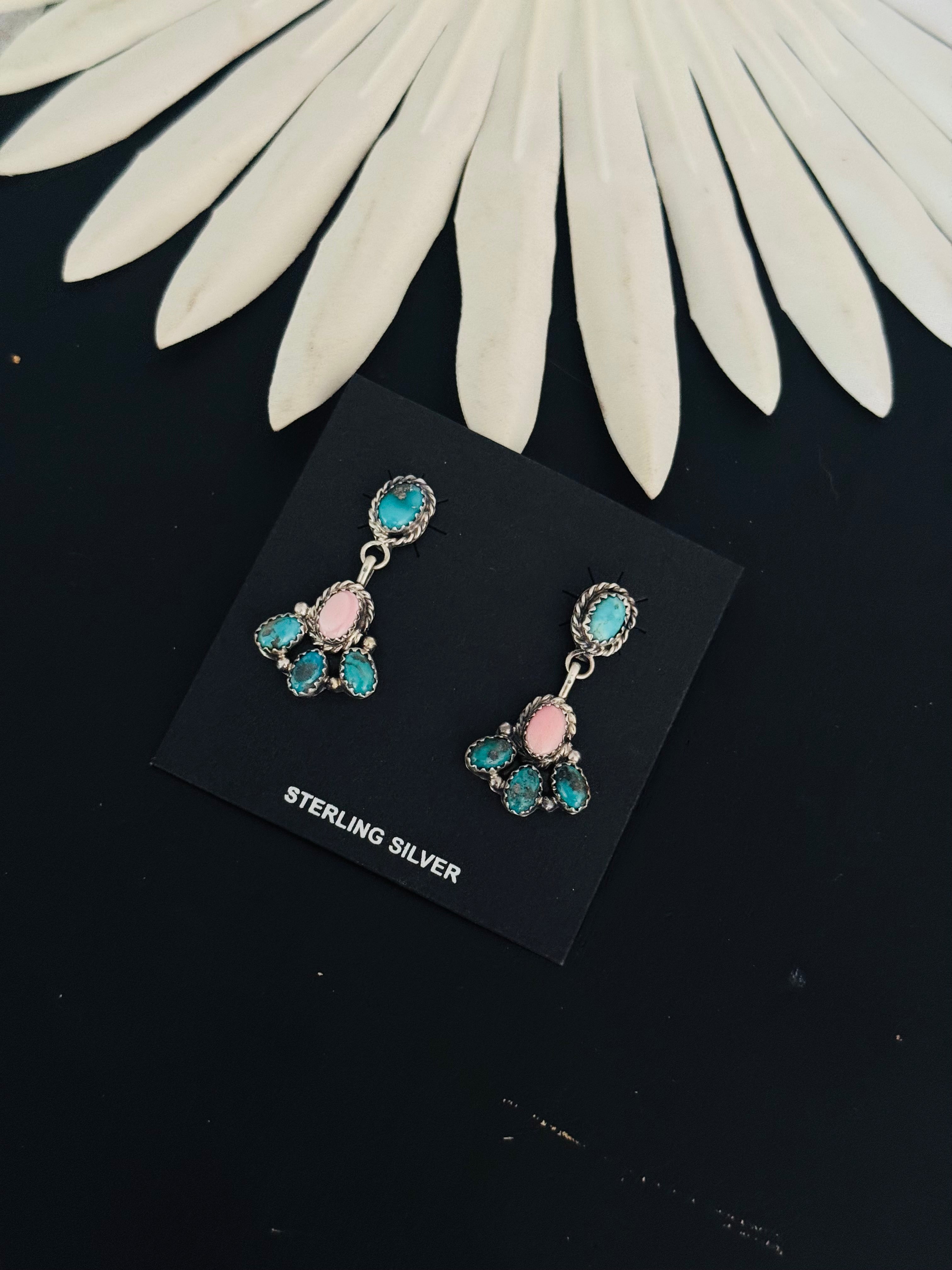 Navajo Made Multi Stone & Sterling Silver Post Dangle Earrings