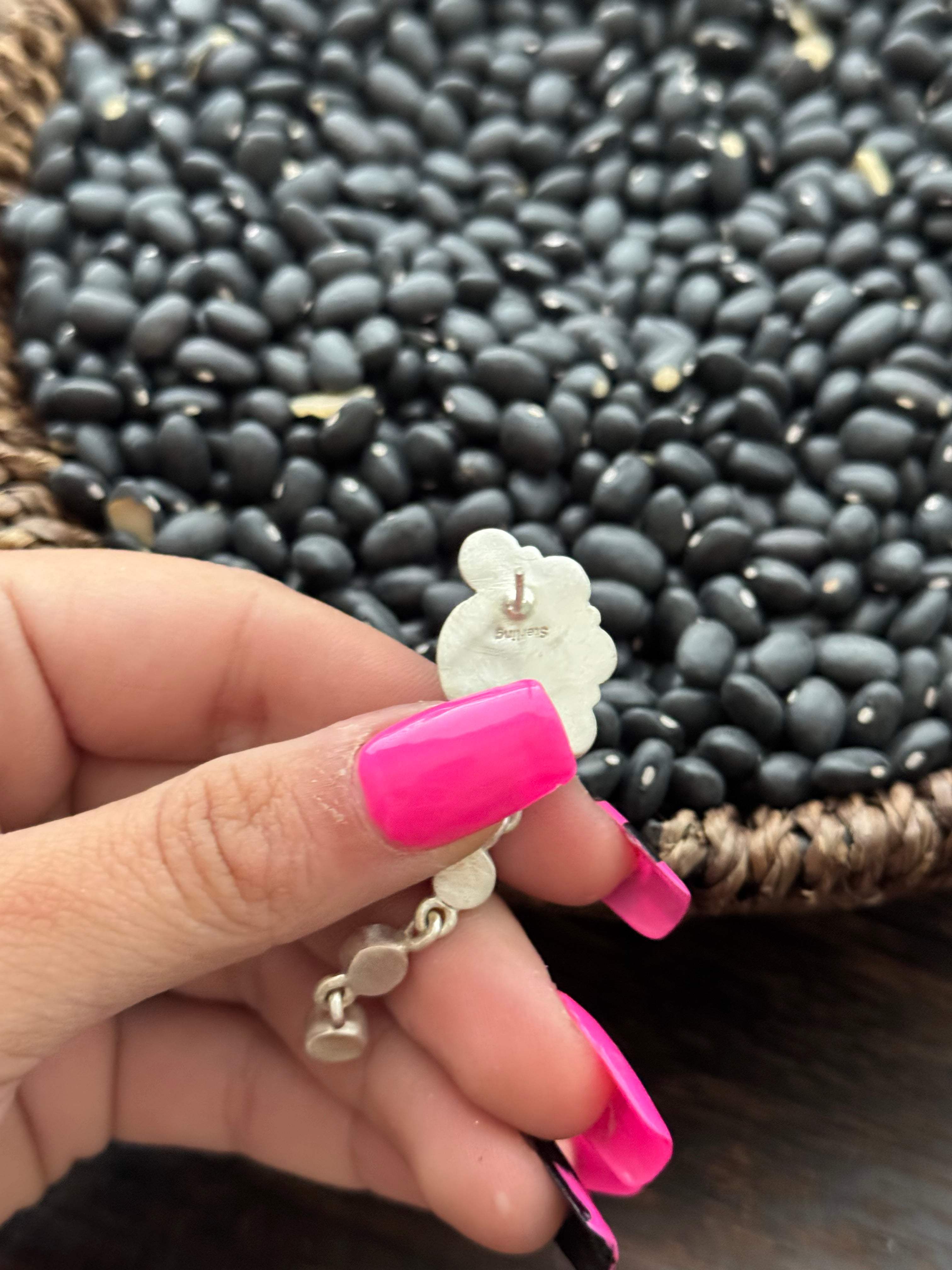 In love with these everyday dangle earrings. Navajo Made Multi Stone & Sterling Silver Post Dangle Earrings. It measures 2 3/8 inches long and 5/8 of an inch wide. Signed and stamped.