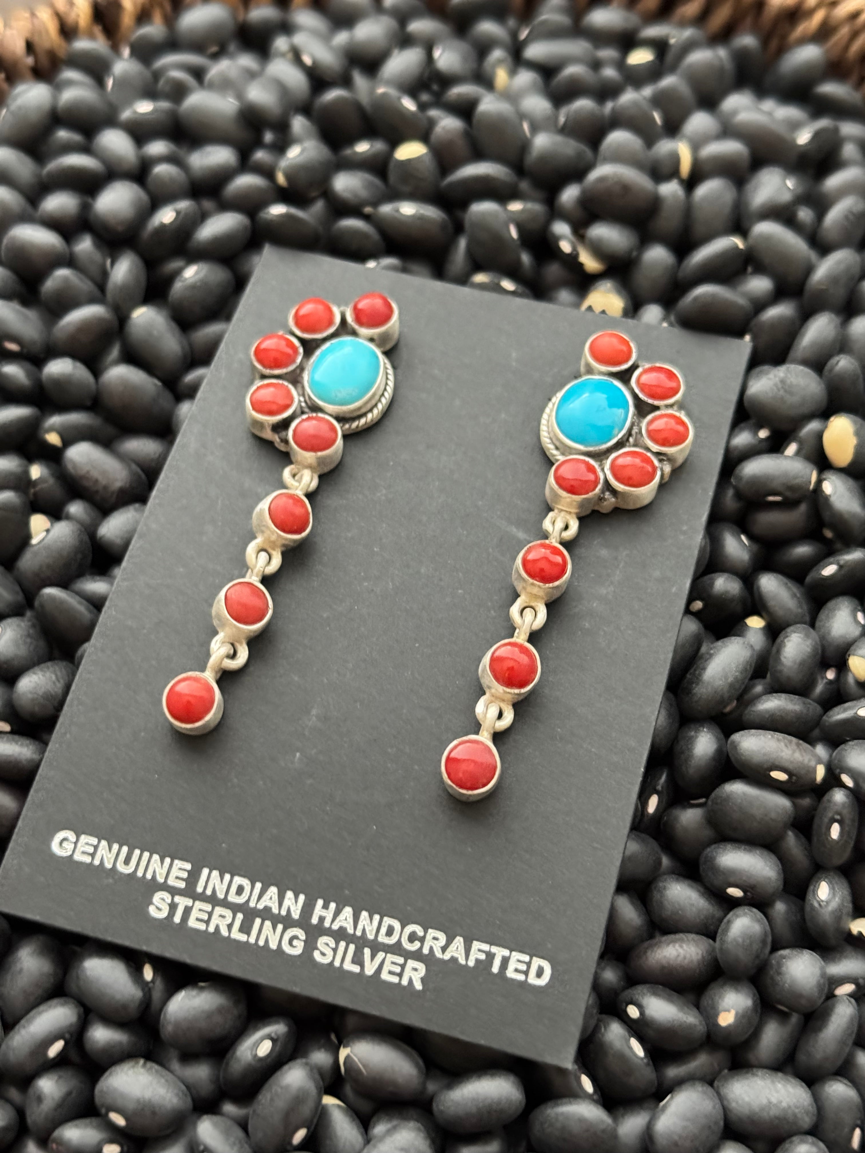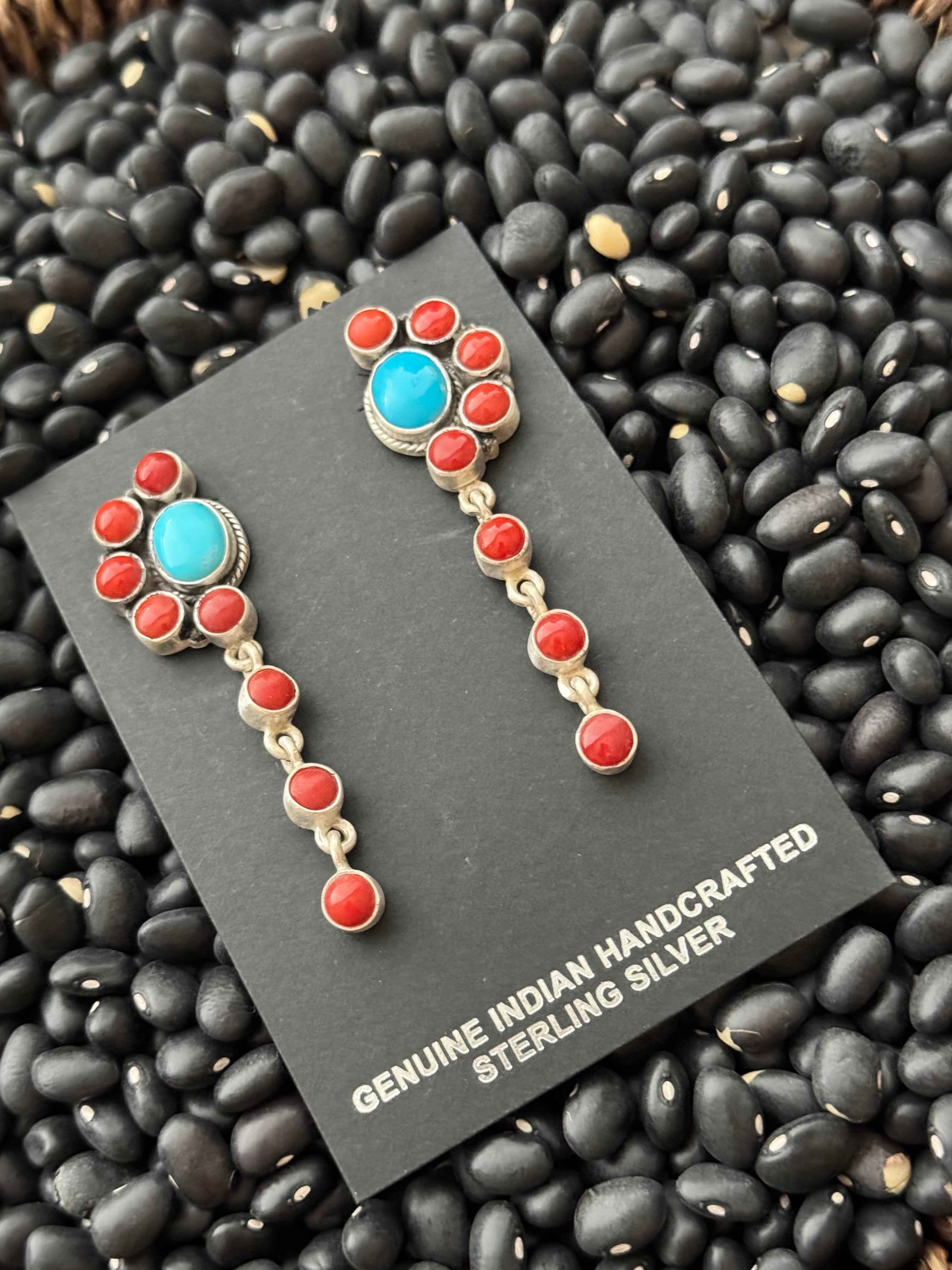 Navajo Made Multi Stone & Sterling Silver Post Dangle Earrings