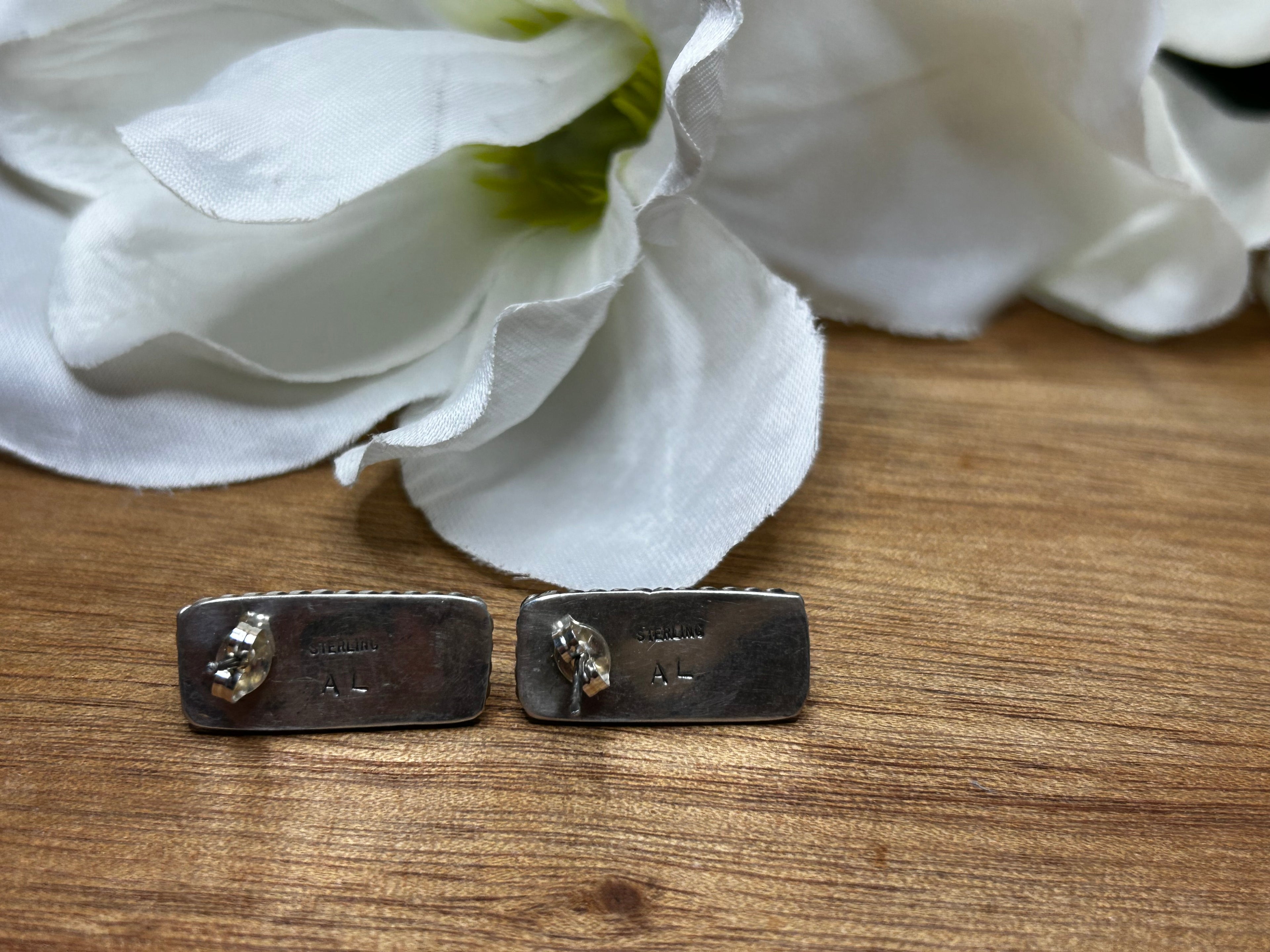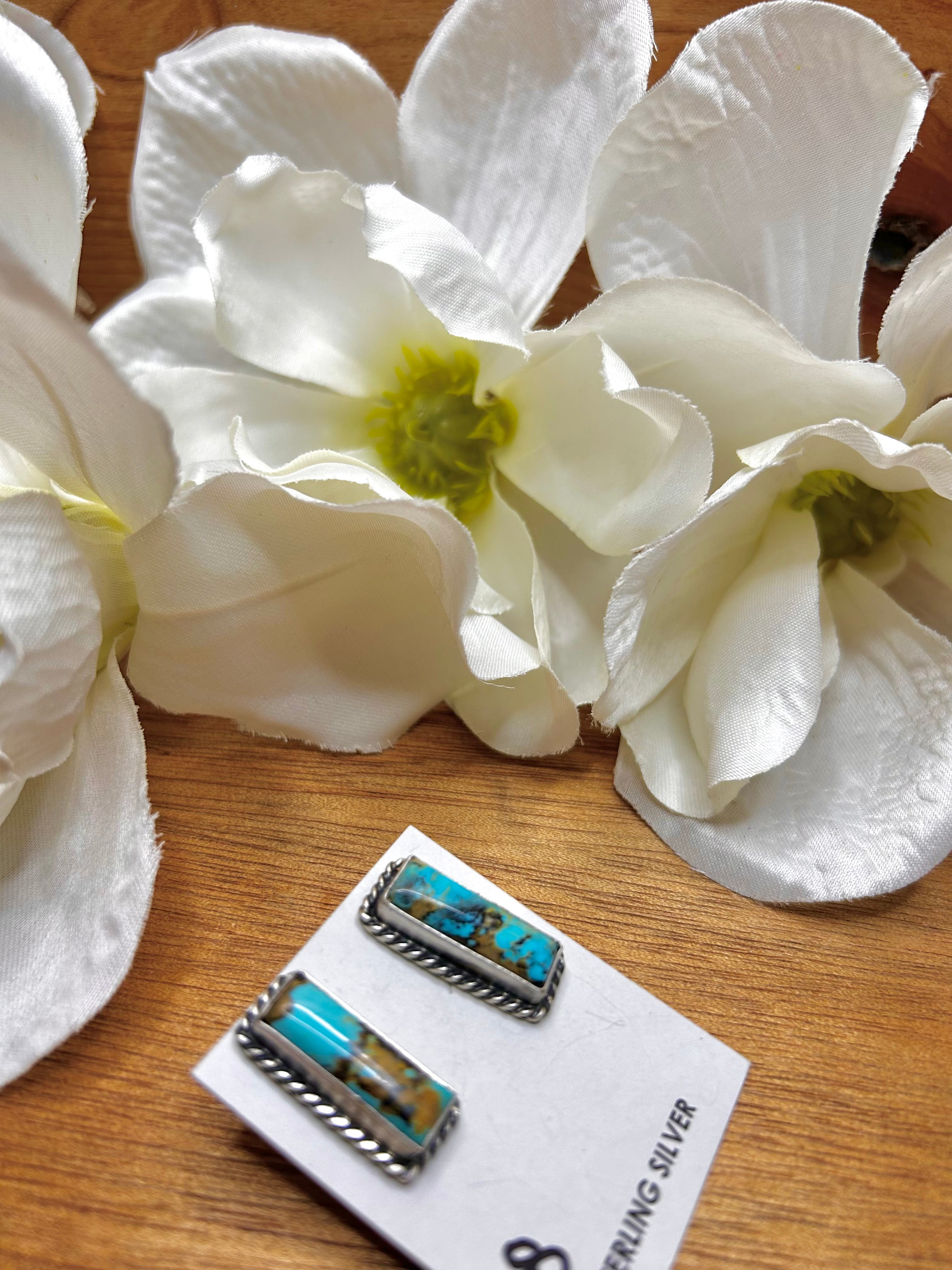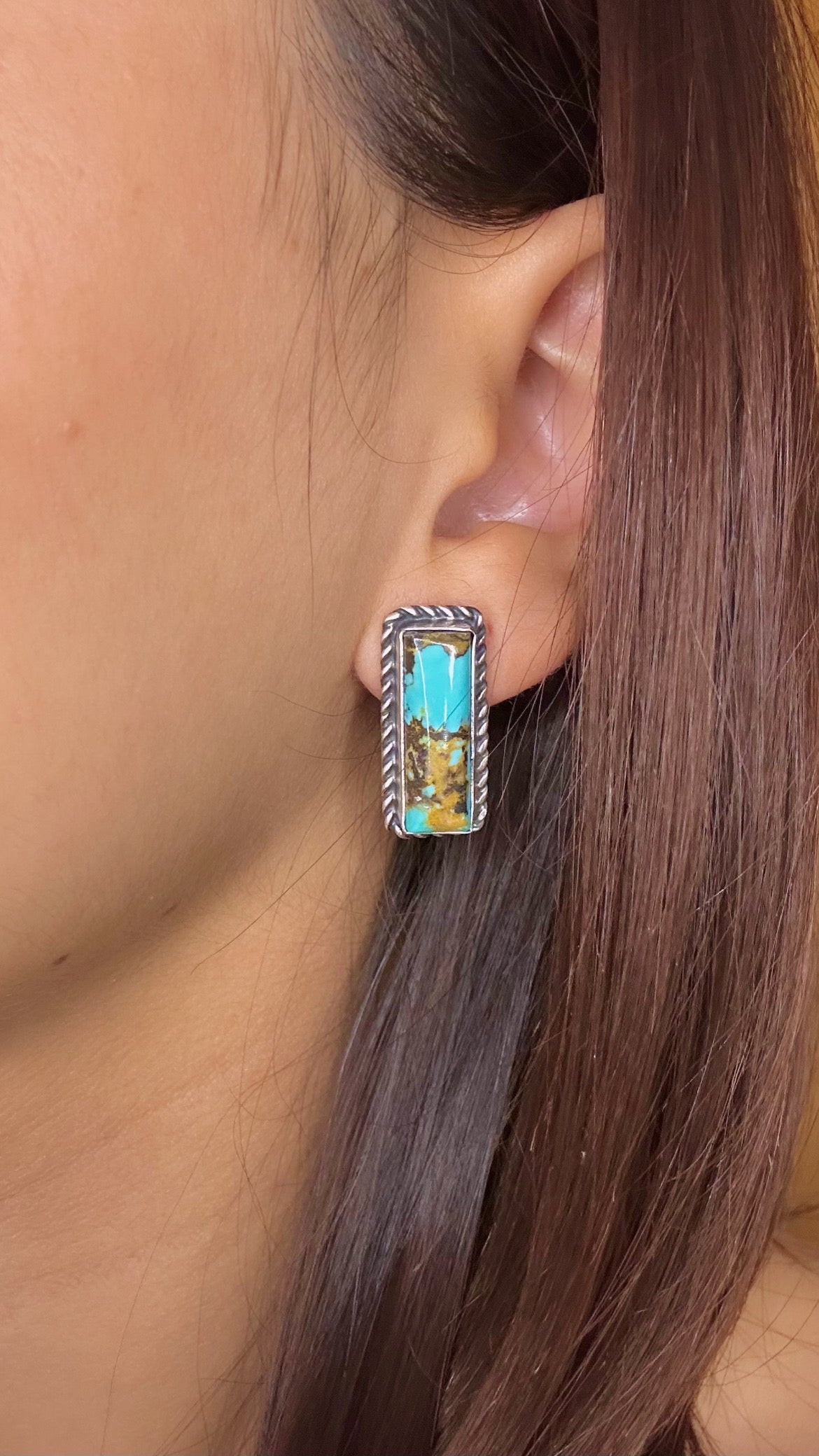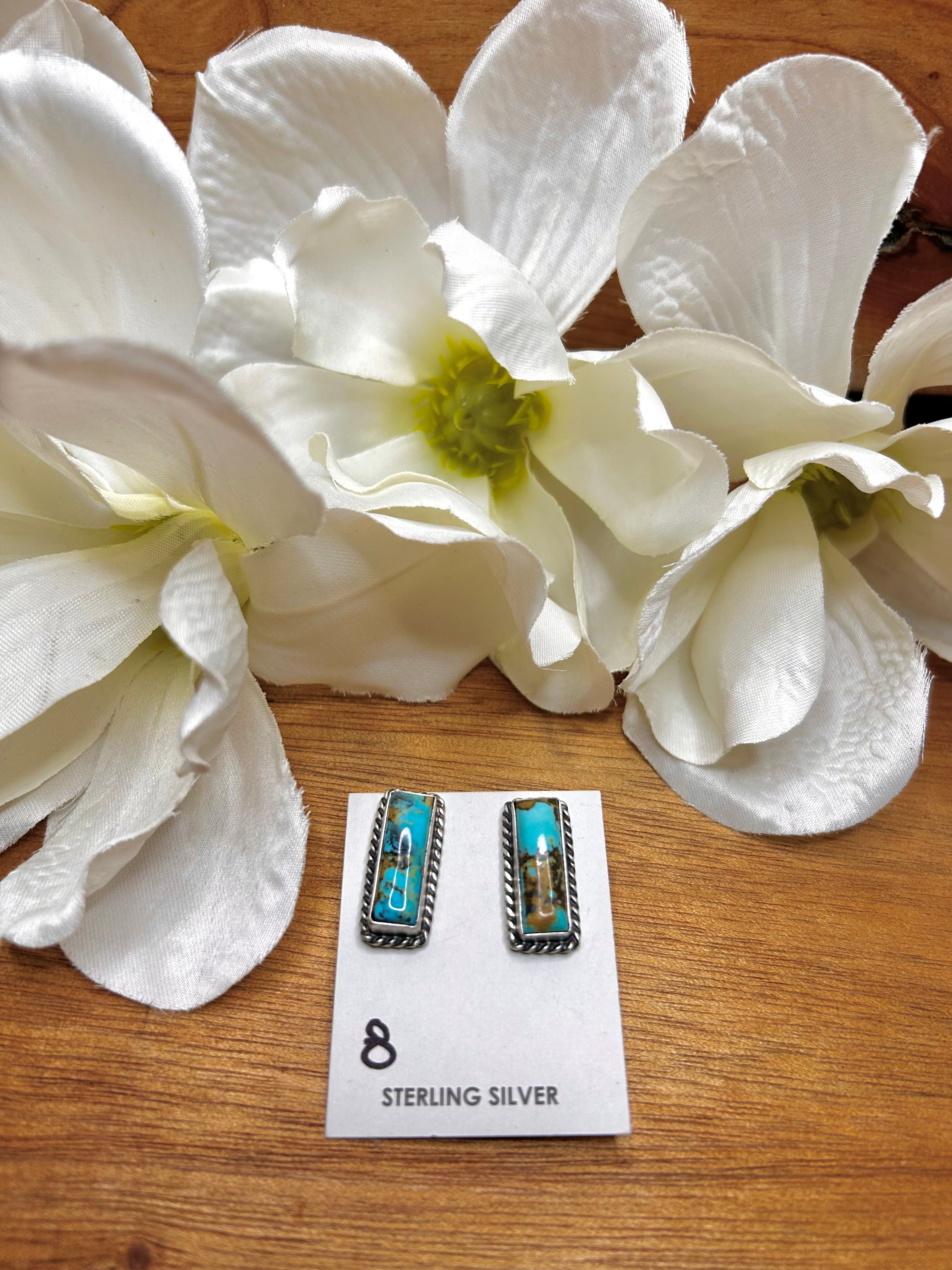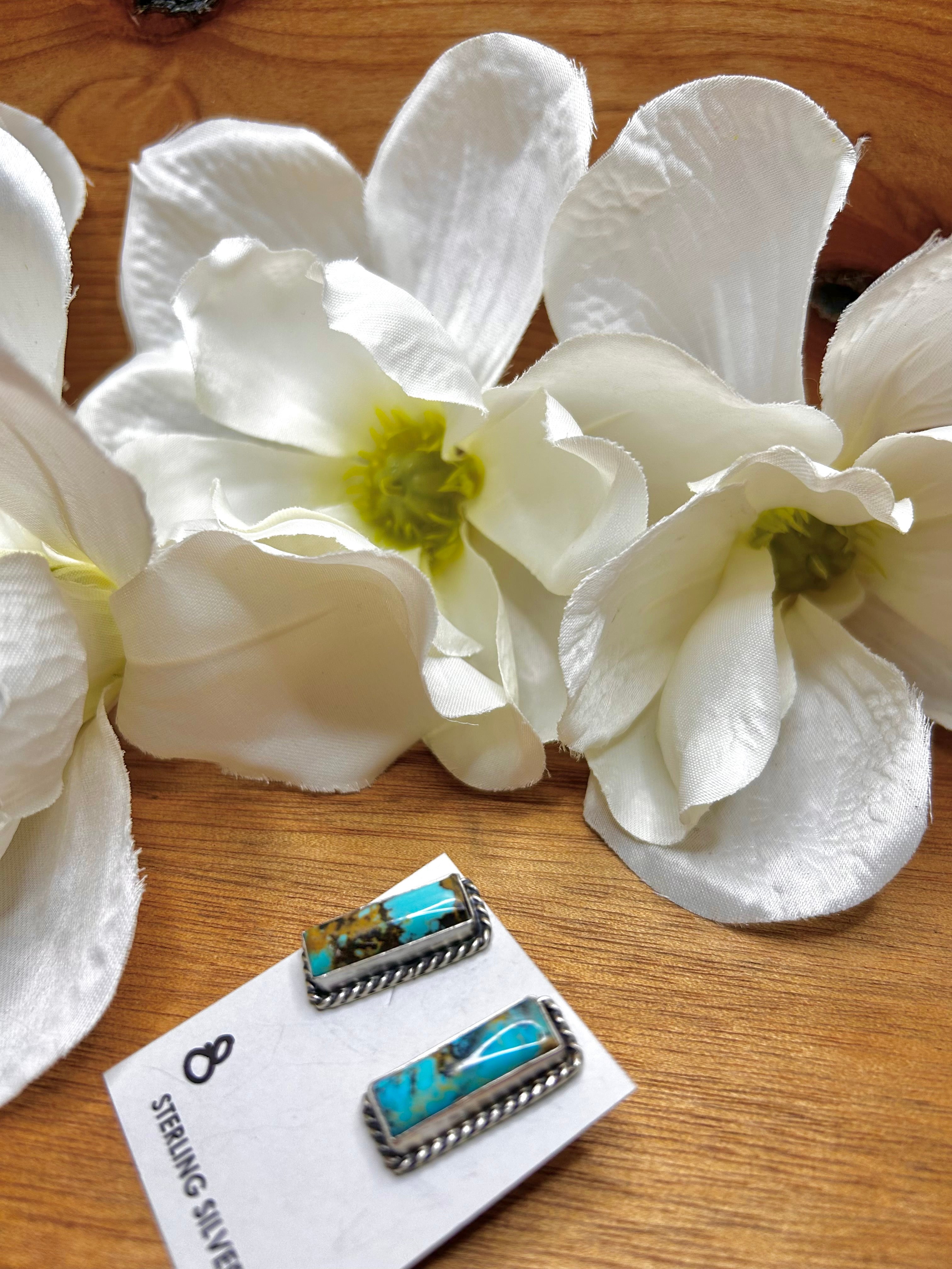 Augustine Largo Kingman Turquoise & Sterling Silver Post Earrings. It measures 1 inch long and 1/2 of an inch wide.