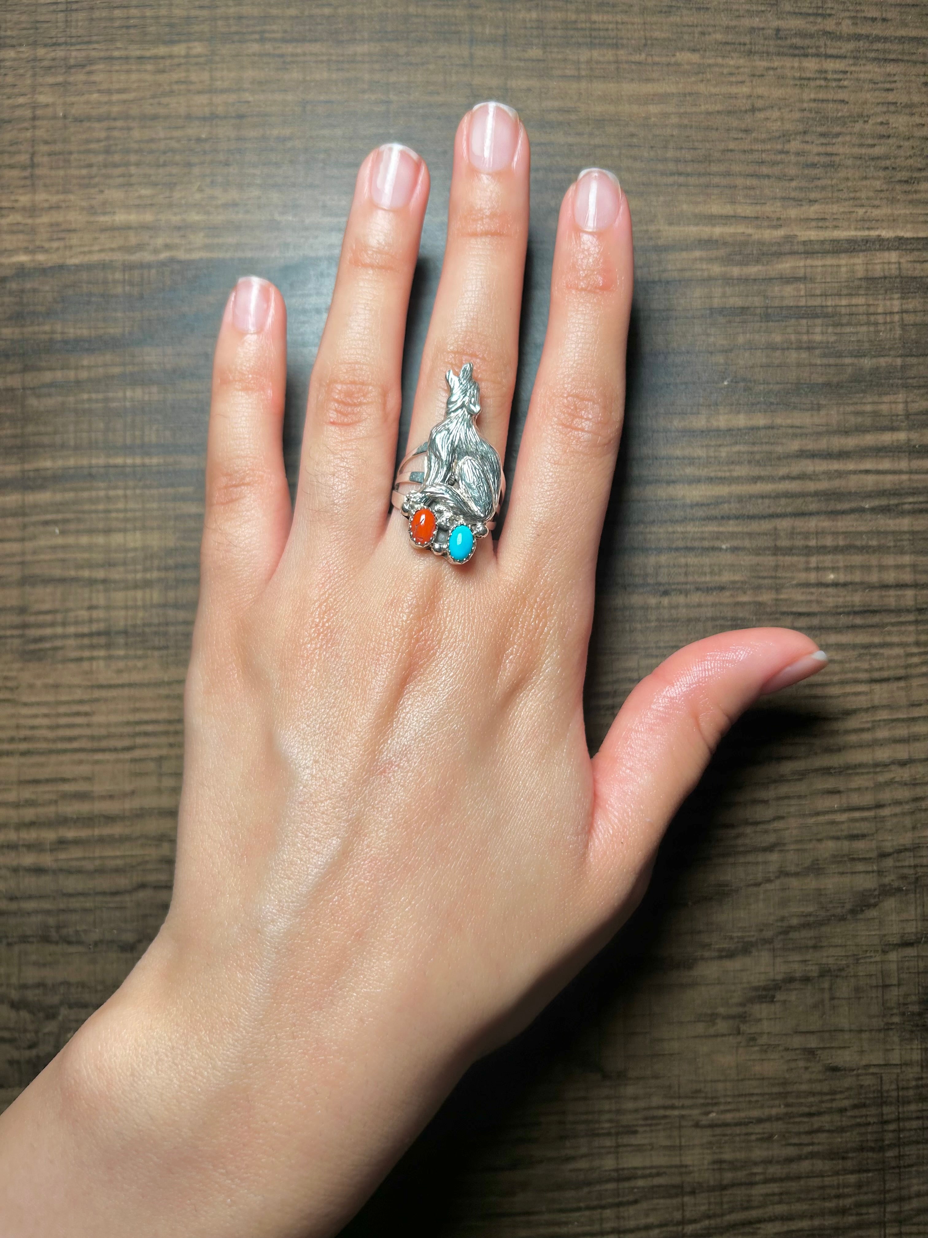 Navajo Made Multi Stone & Sterling Silver Ring Size 7. It measures 1 3/8 inches long and 1/2 of an inch wide.
