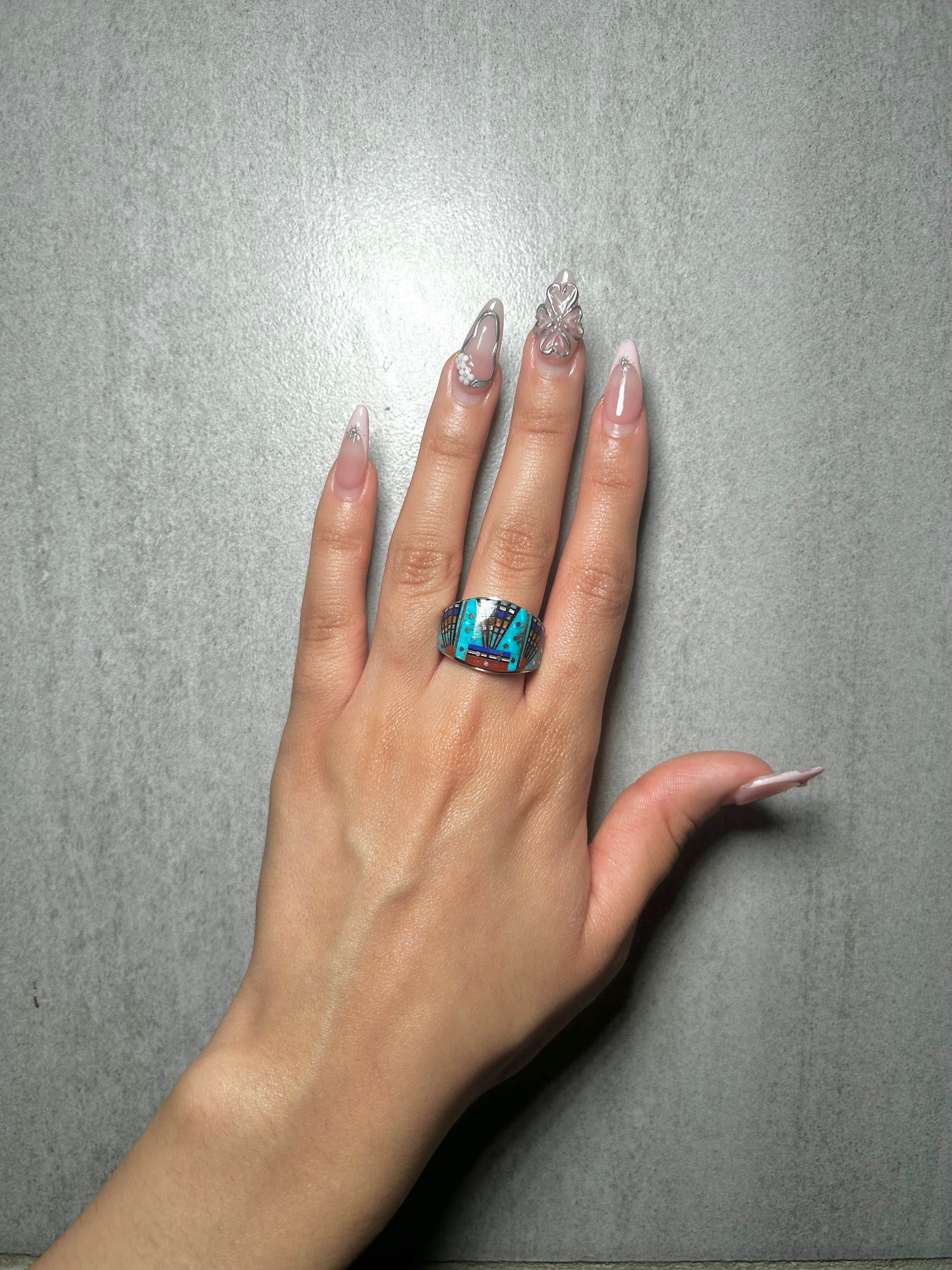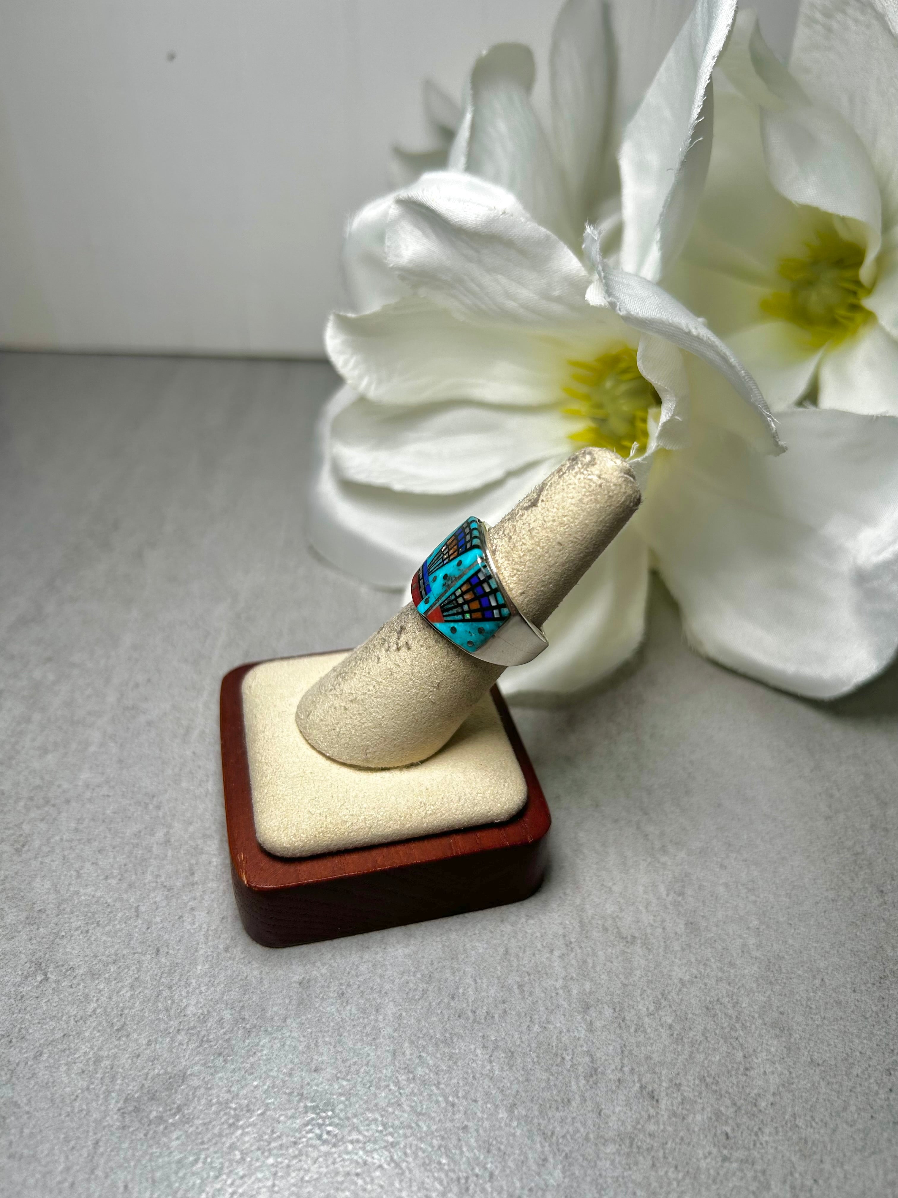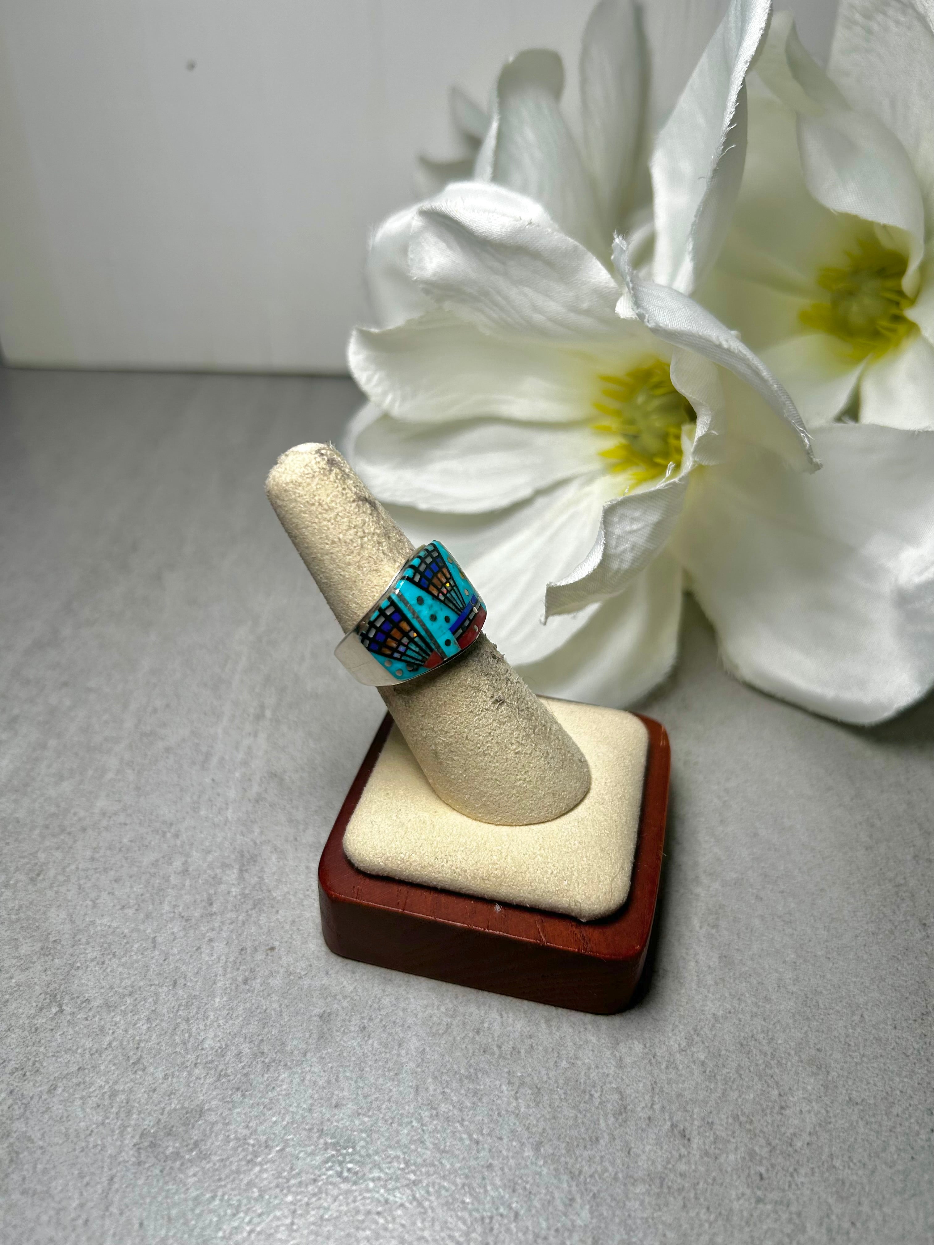 Navajo Made Multi Stone Galaxy Inlay & Sterling Silver Ring Size 6.25