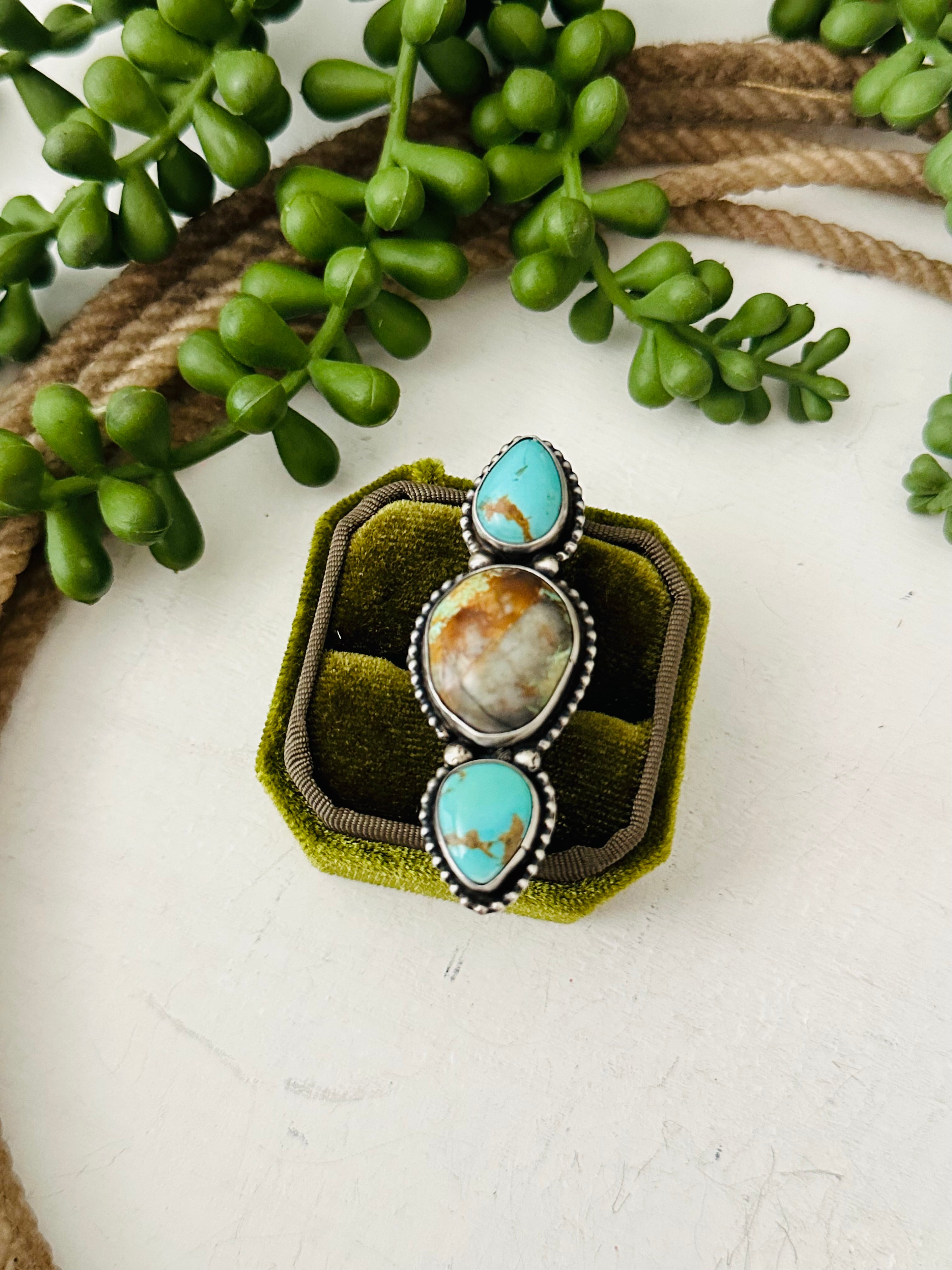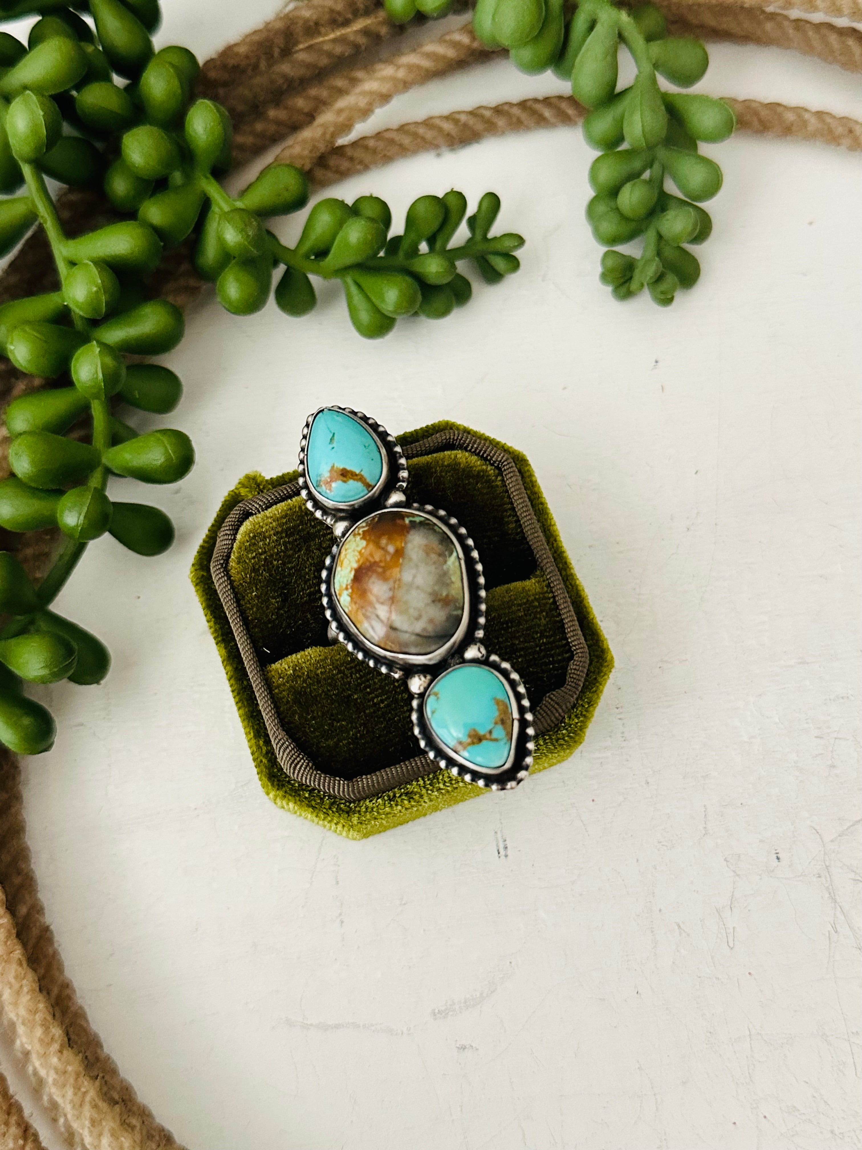 Navajo Made Multi Turquoise & Sterling Silver Adjustable Ring