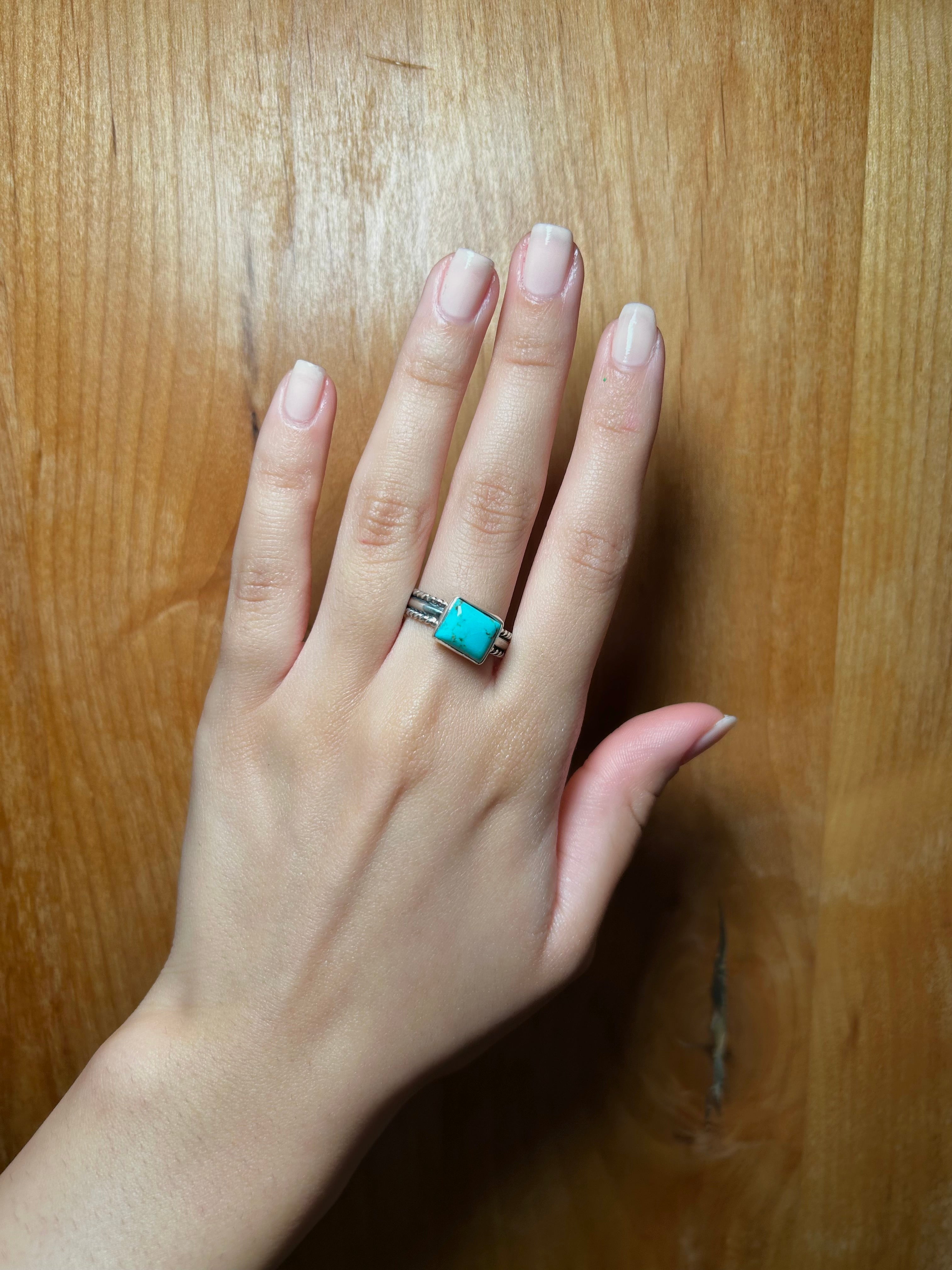 Navajo Made Kingman Turquoise & Sterling Silver Ring Size 9.5