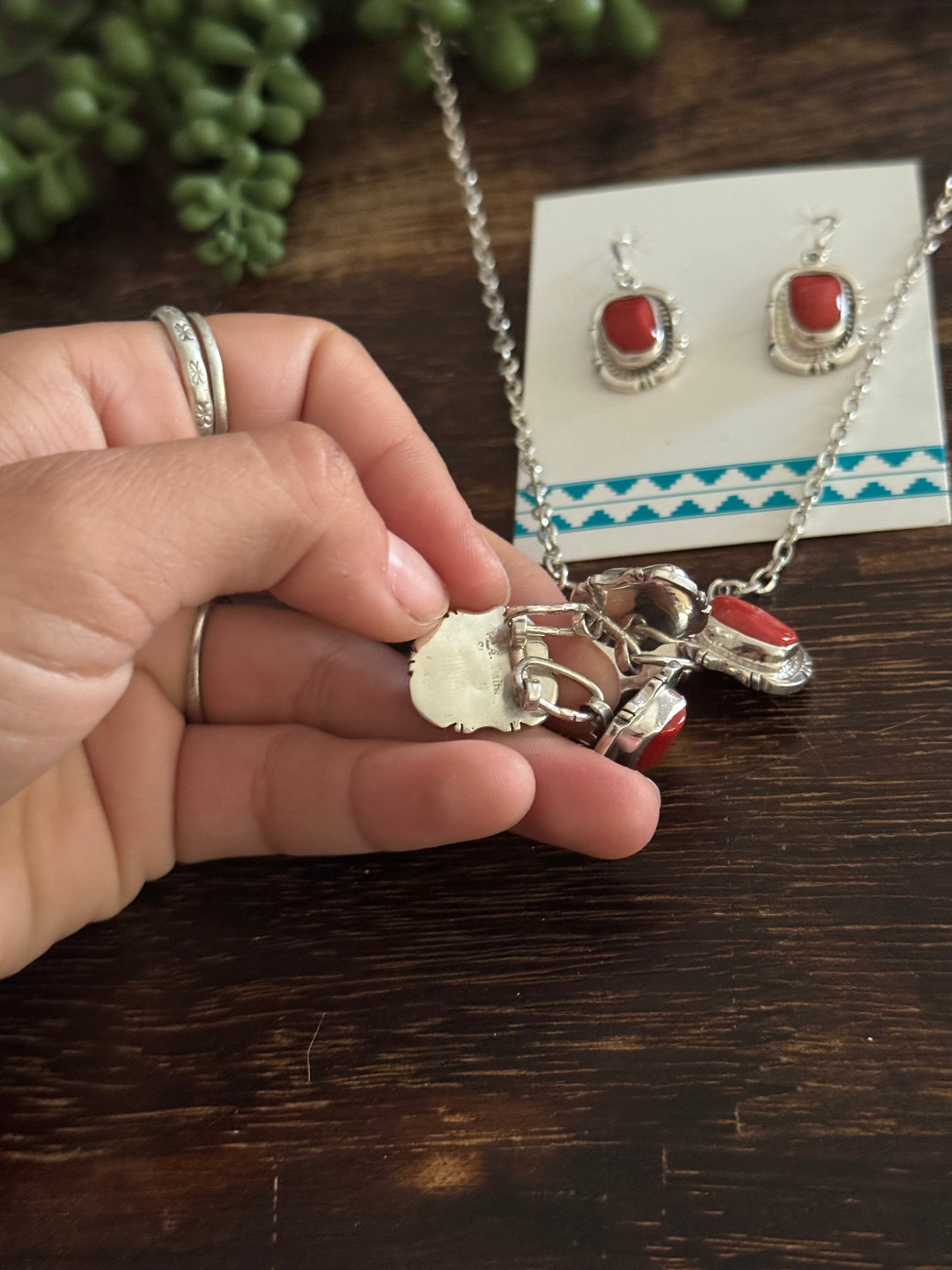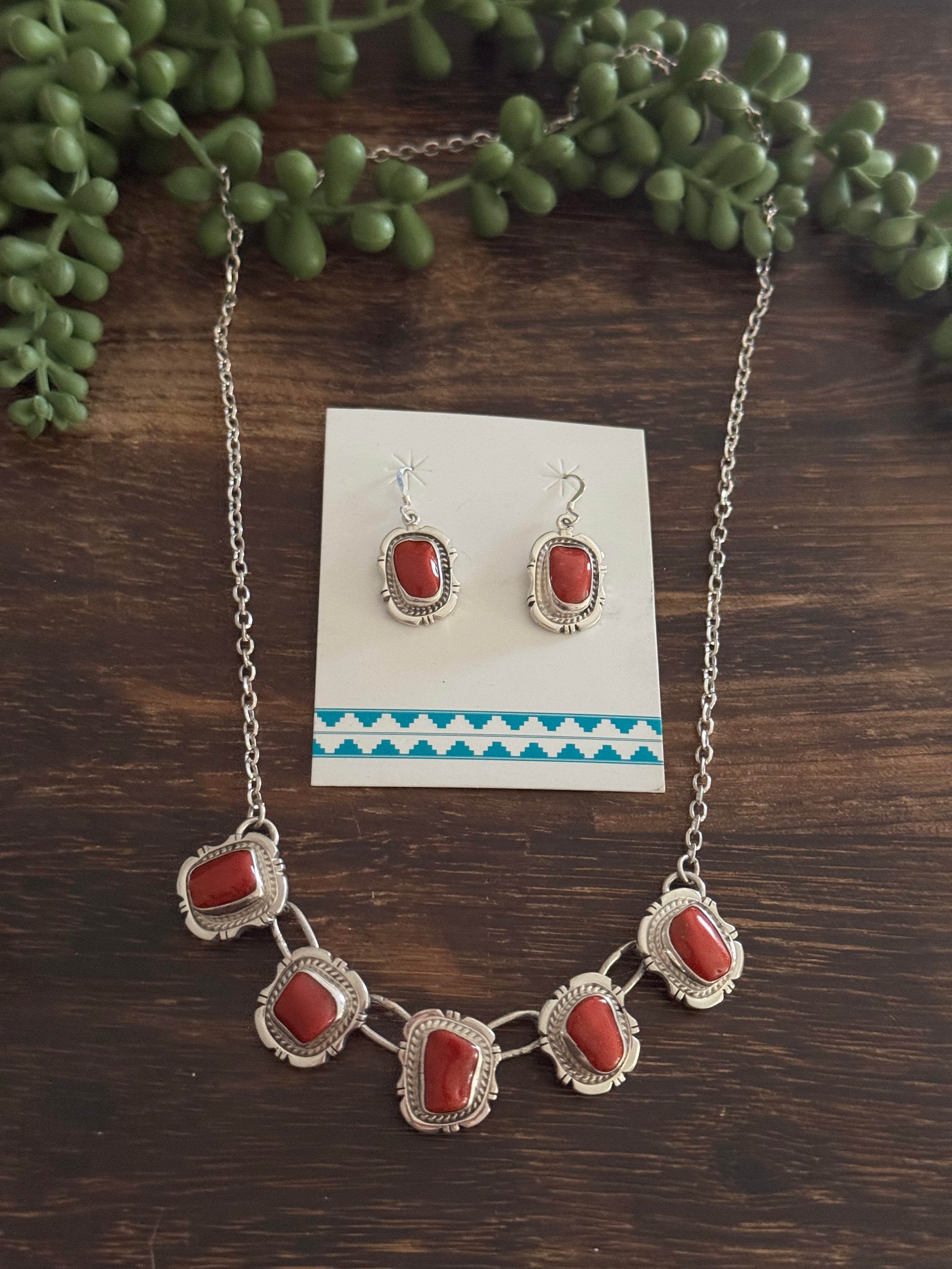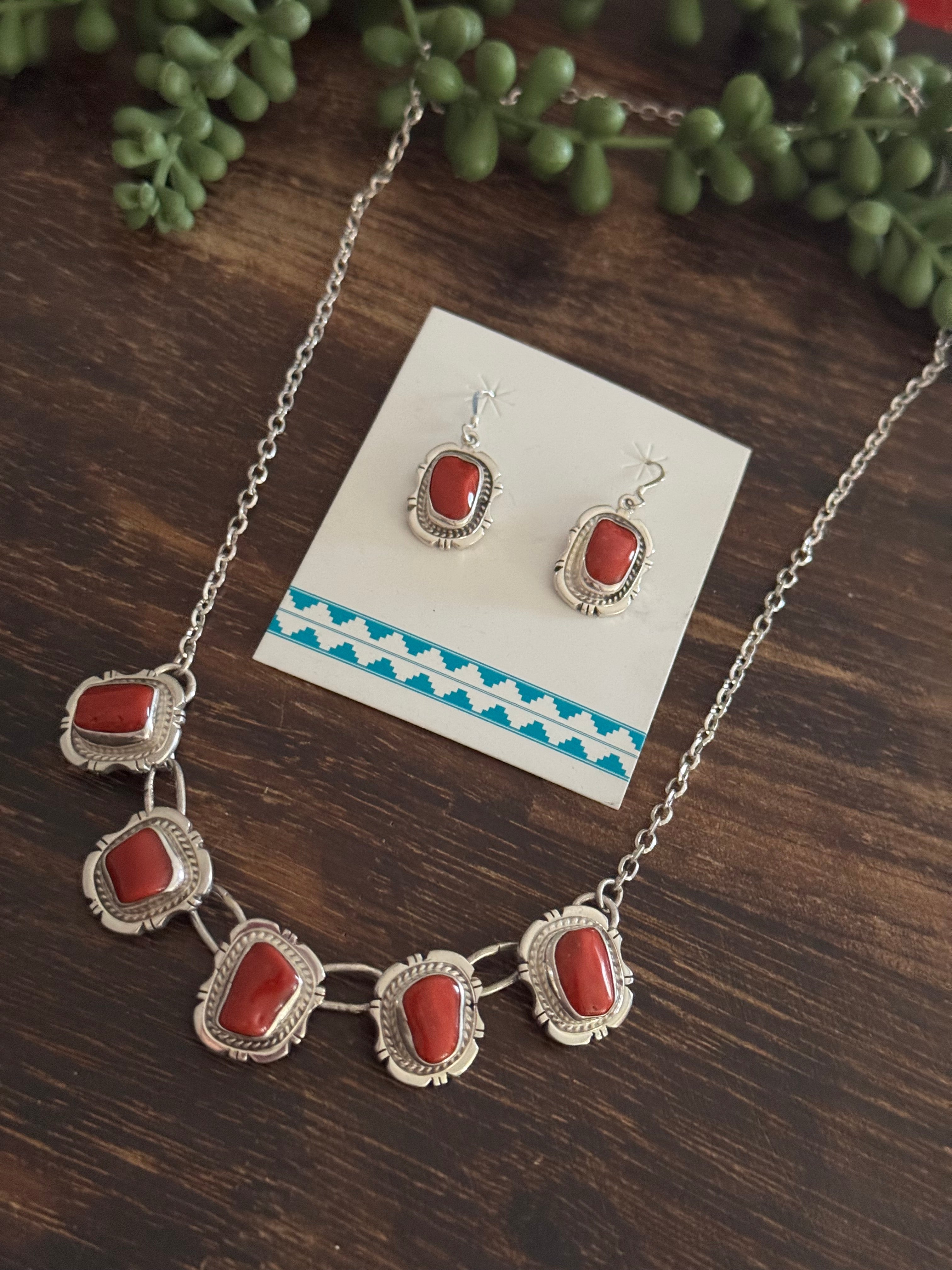 Navajo Made Natural Coral & Sterling Silver Necklace Set