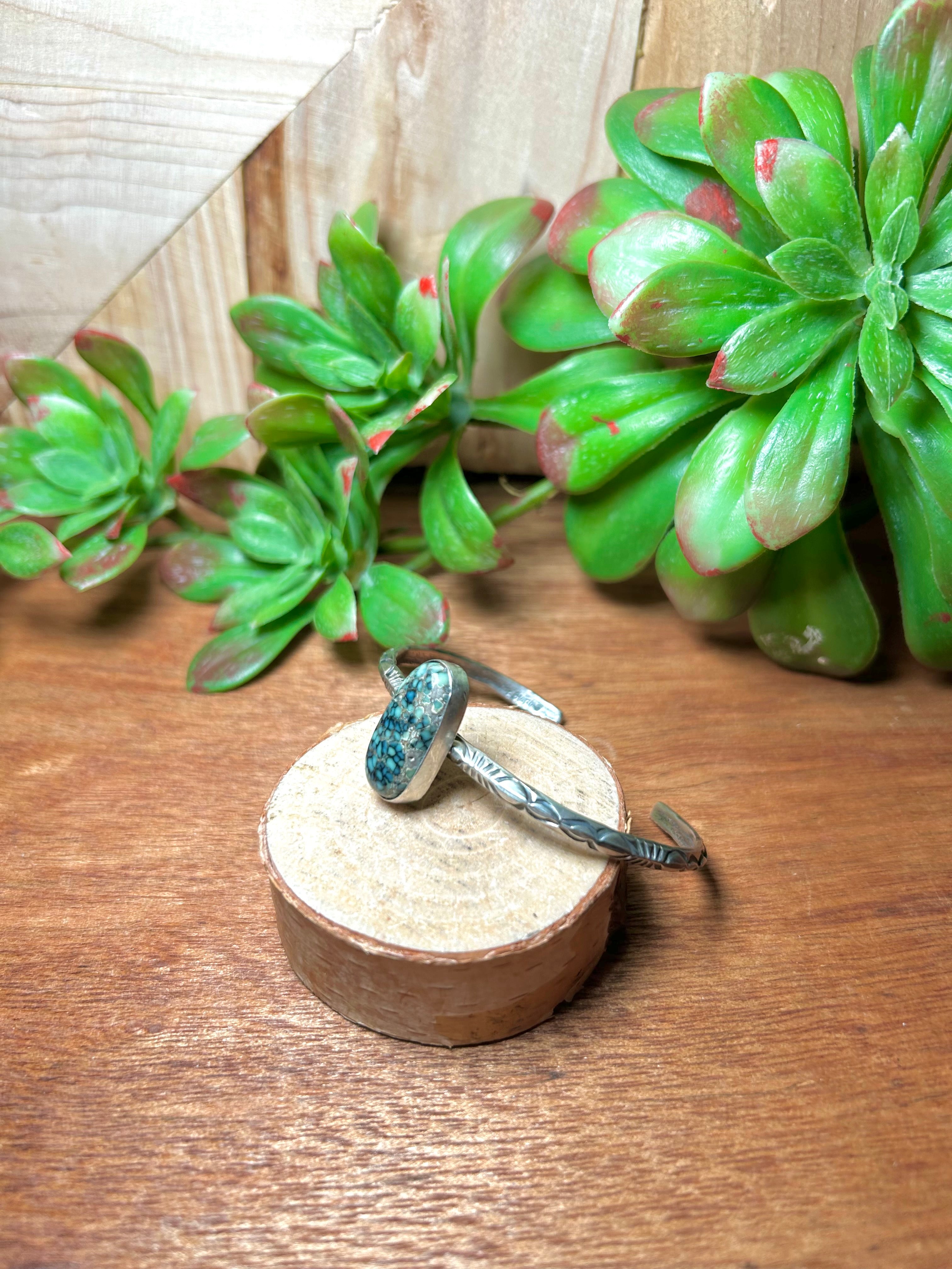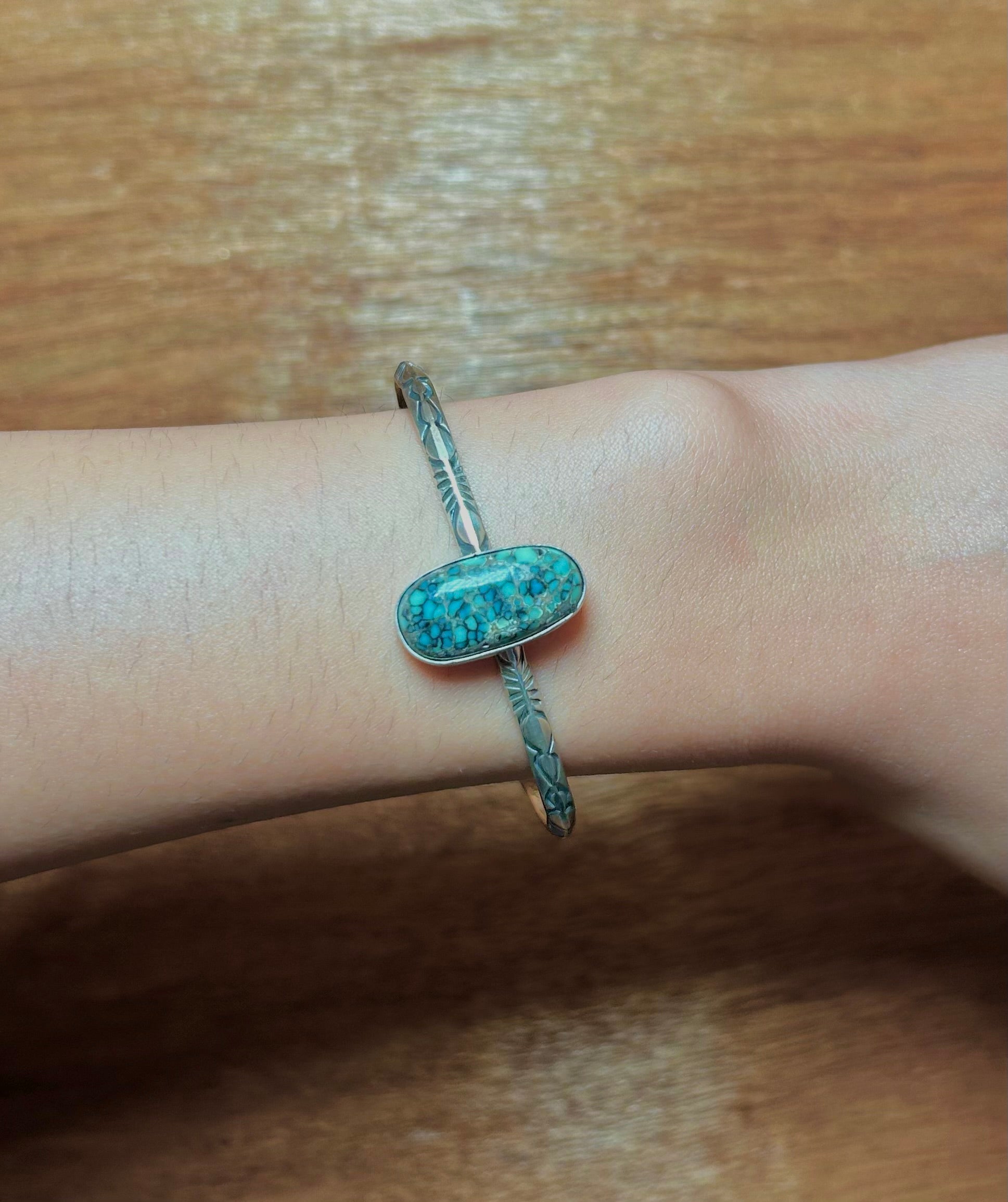 Navajo Made New Lander Varicsite & Sterling Silver Cuff Bracelet