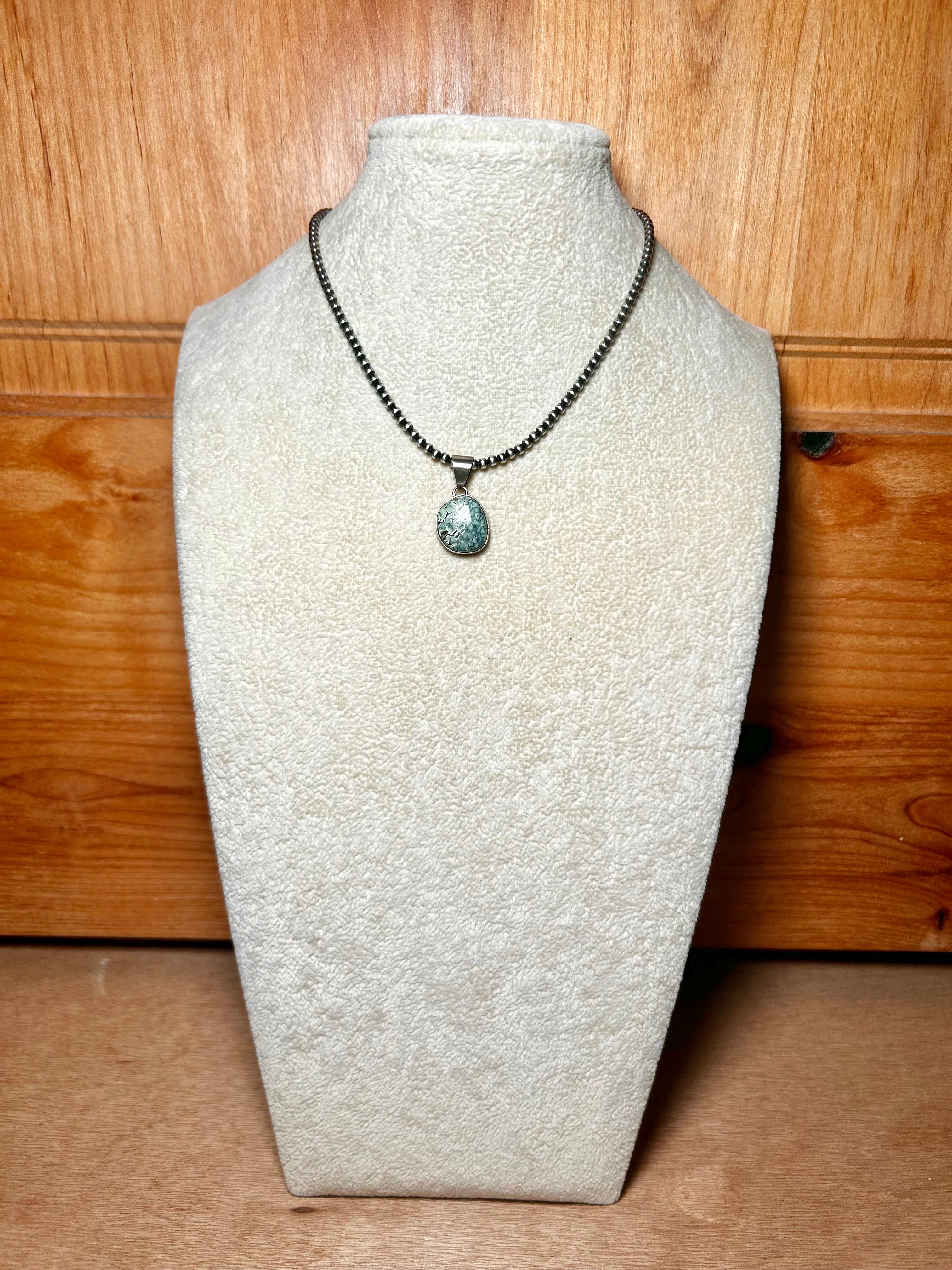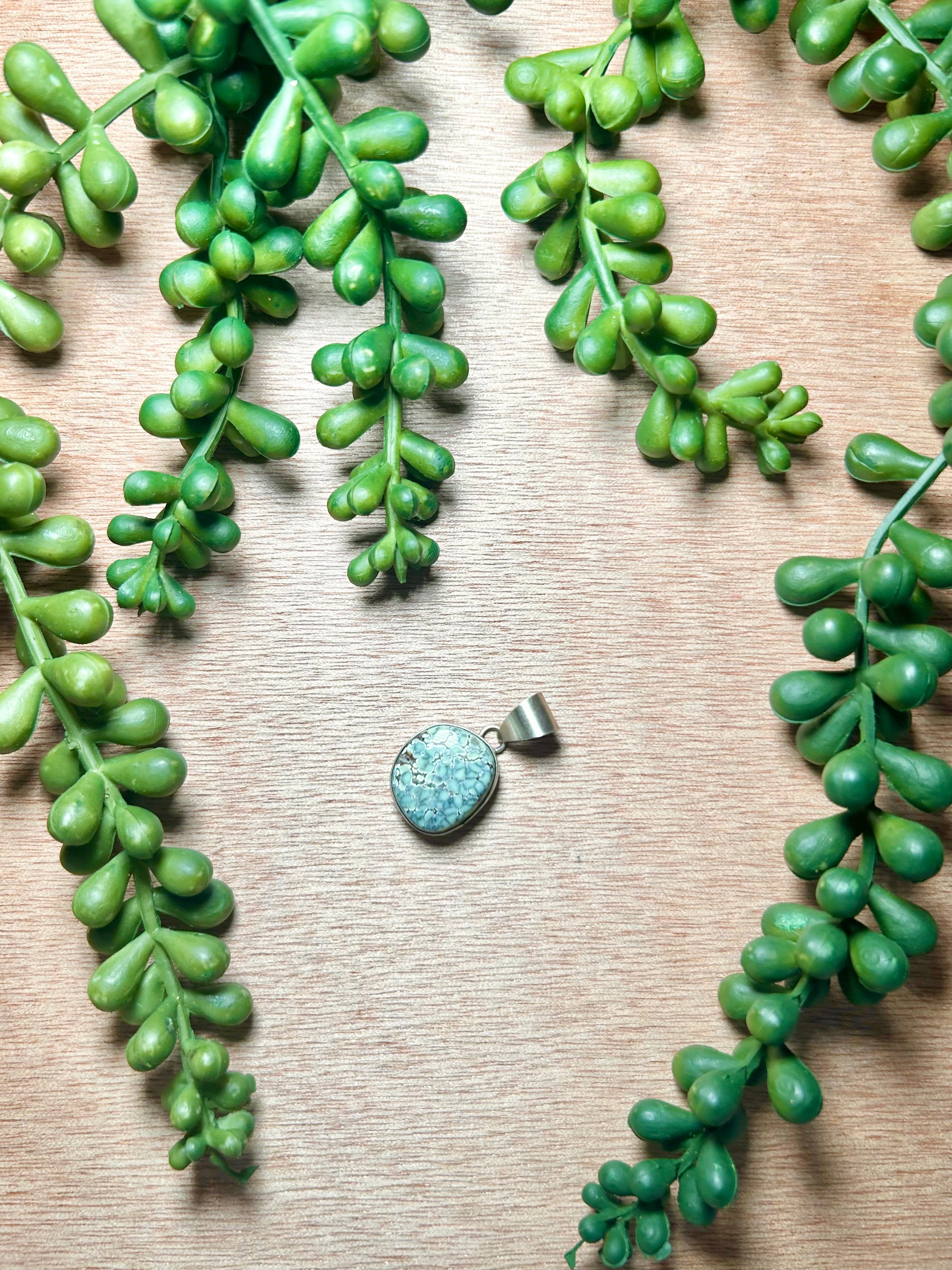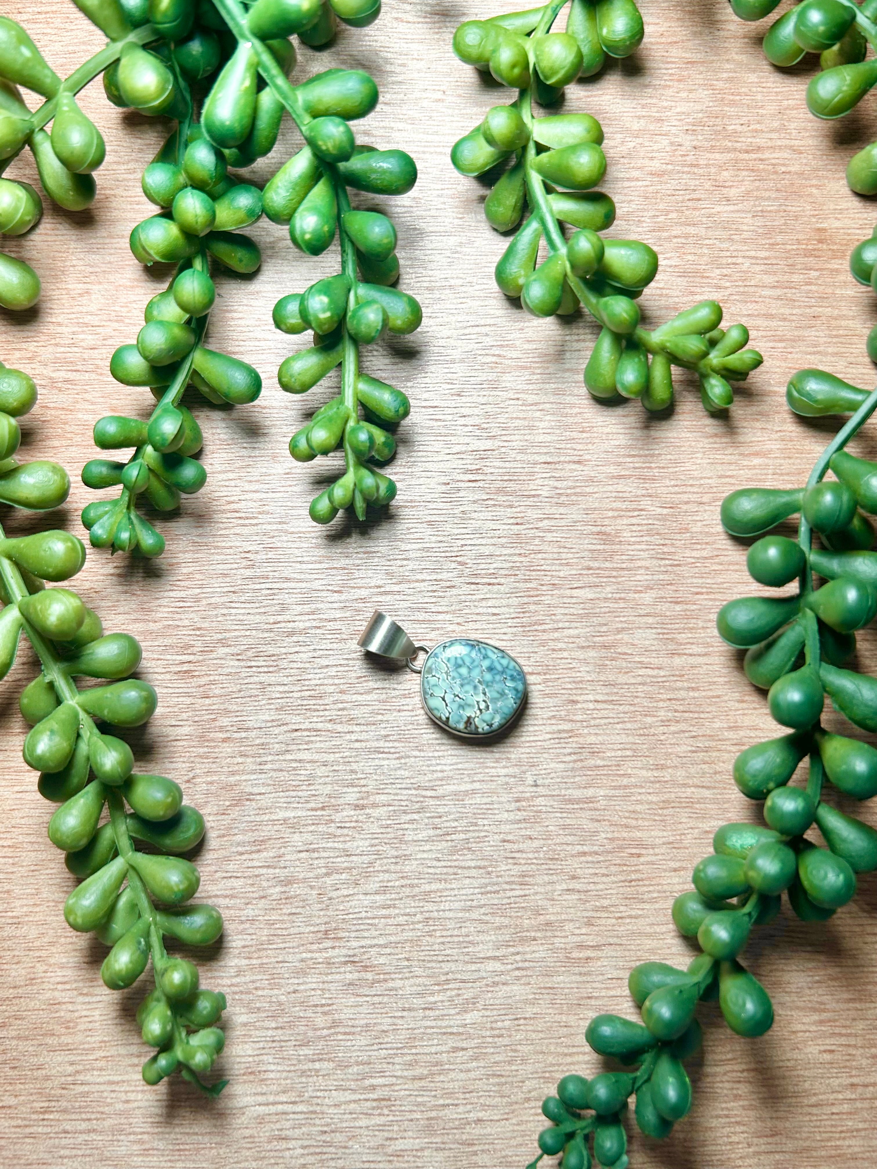 Navajo Made New Lander Variscite & Sterling Silver Pendant
