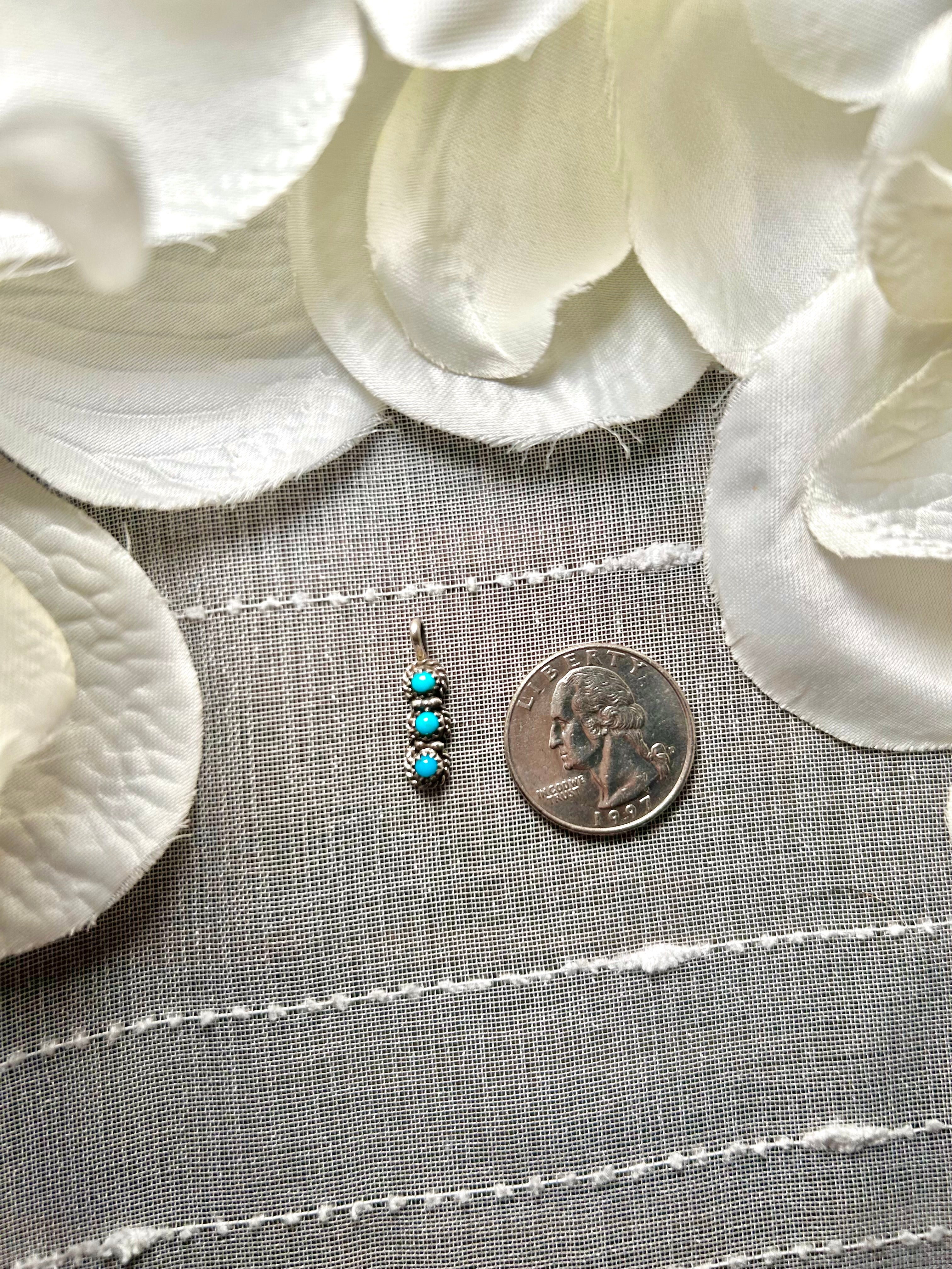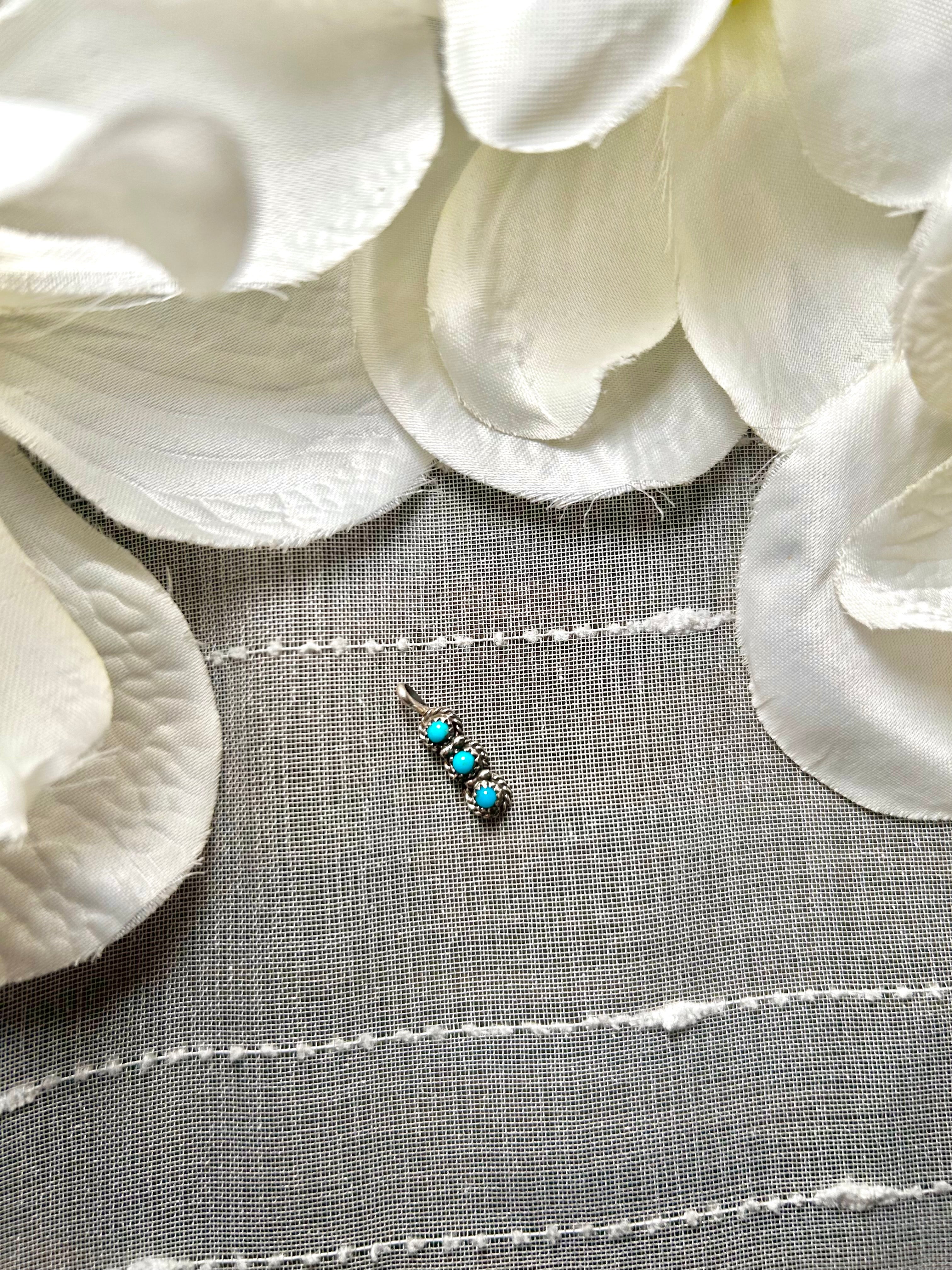 Navajo Made Kingman Turquoise & Sterling Silver Pendant. It measures 7/8 of an inch long and 1/4 of an inch wide. Pendant Only! Signed by the artist and stamped sterling silver.