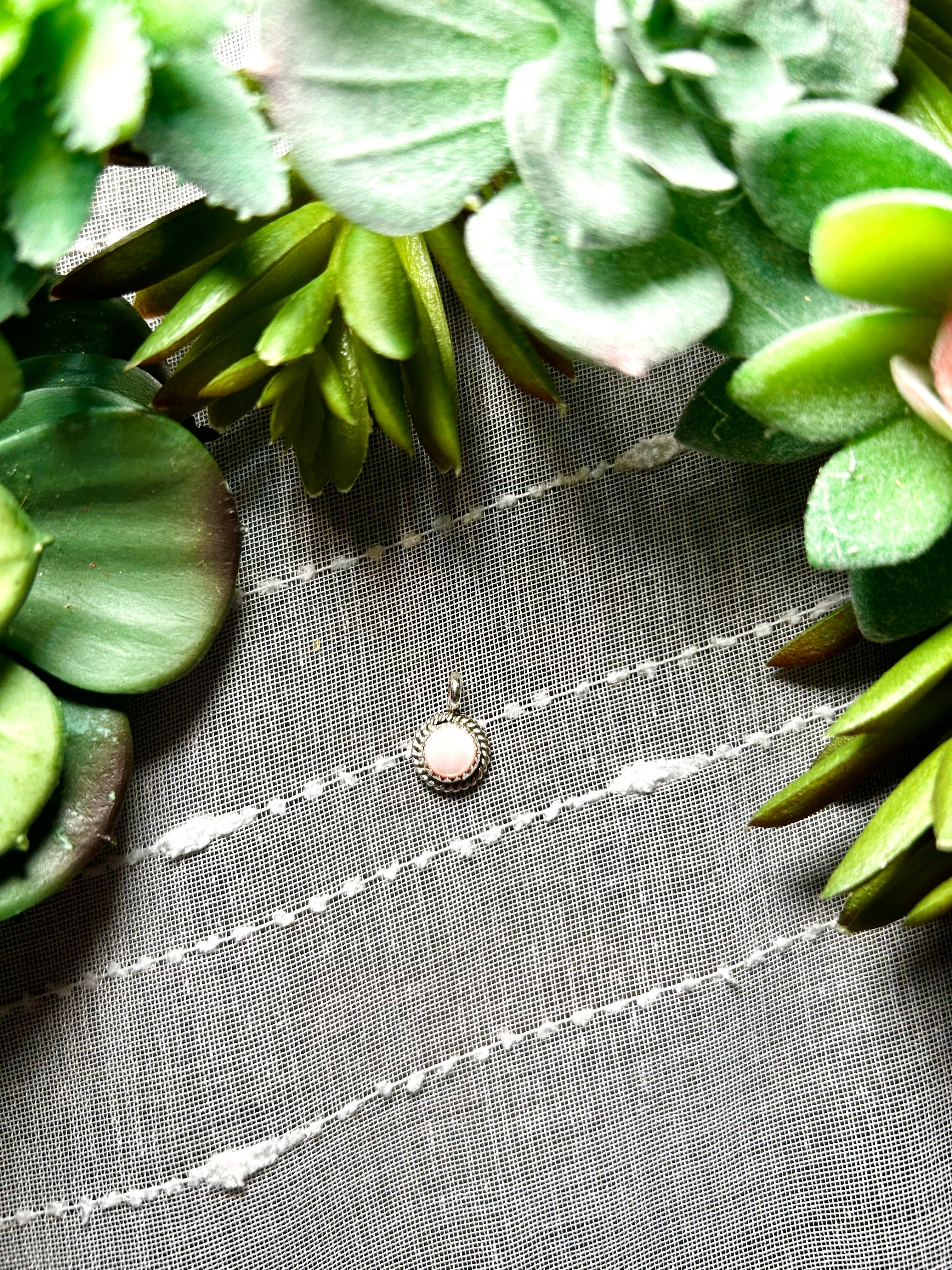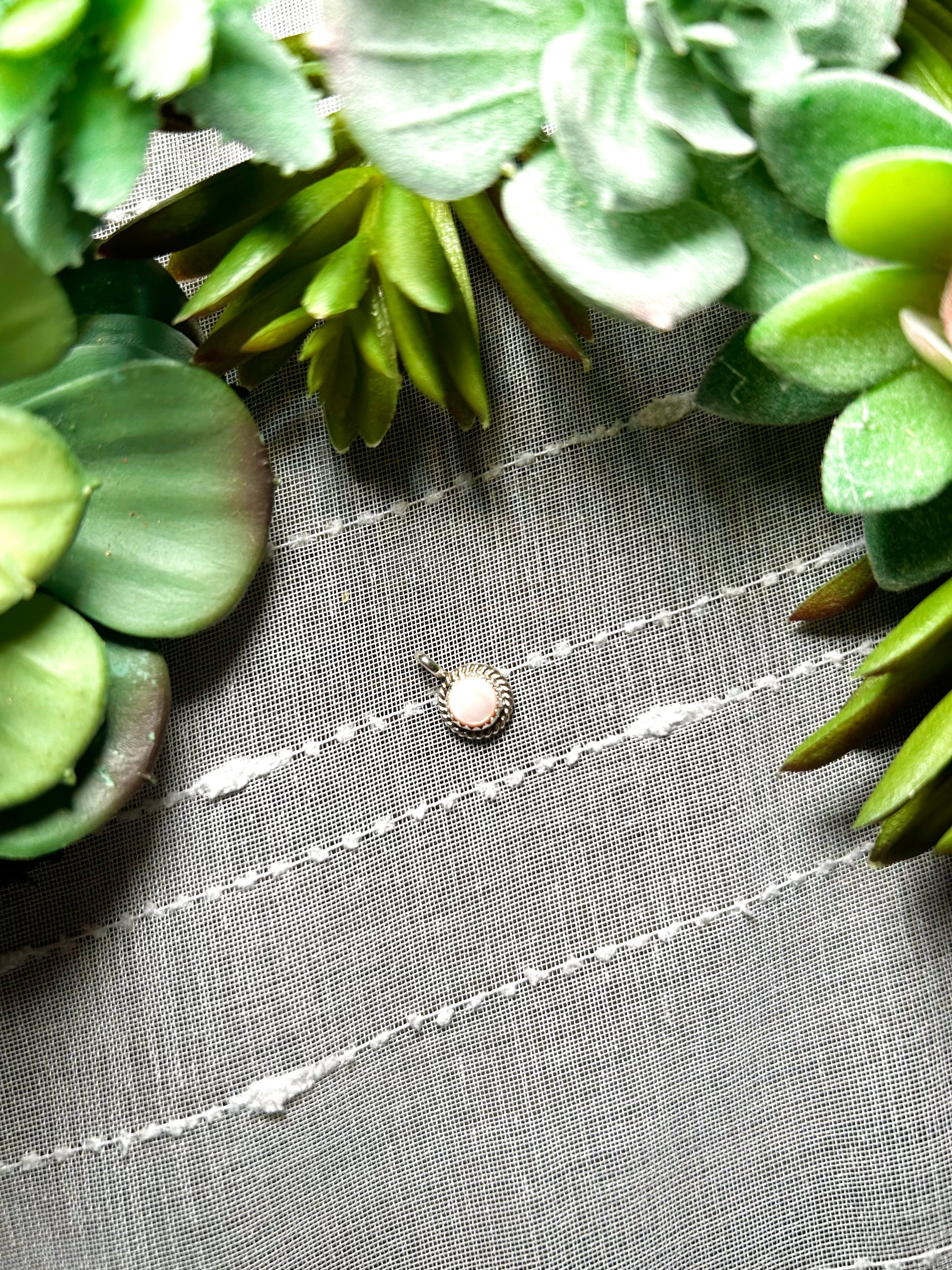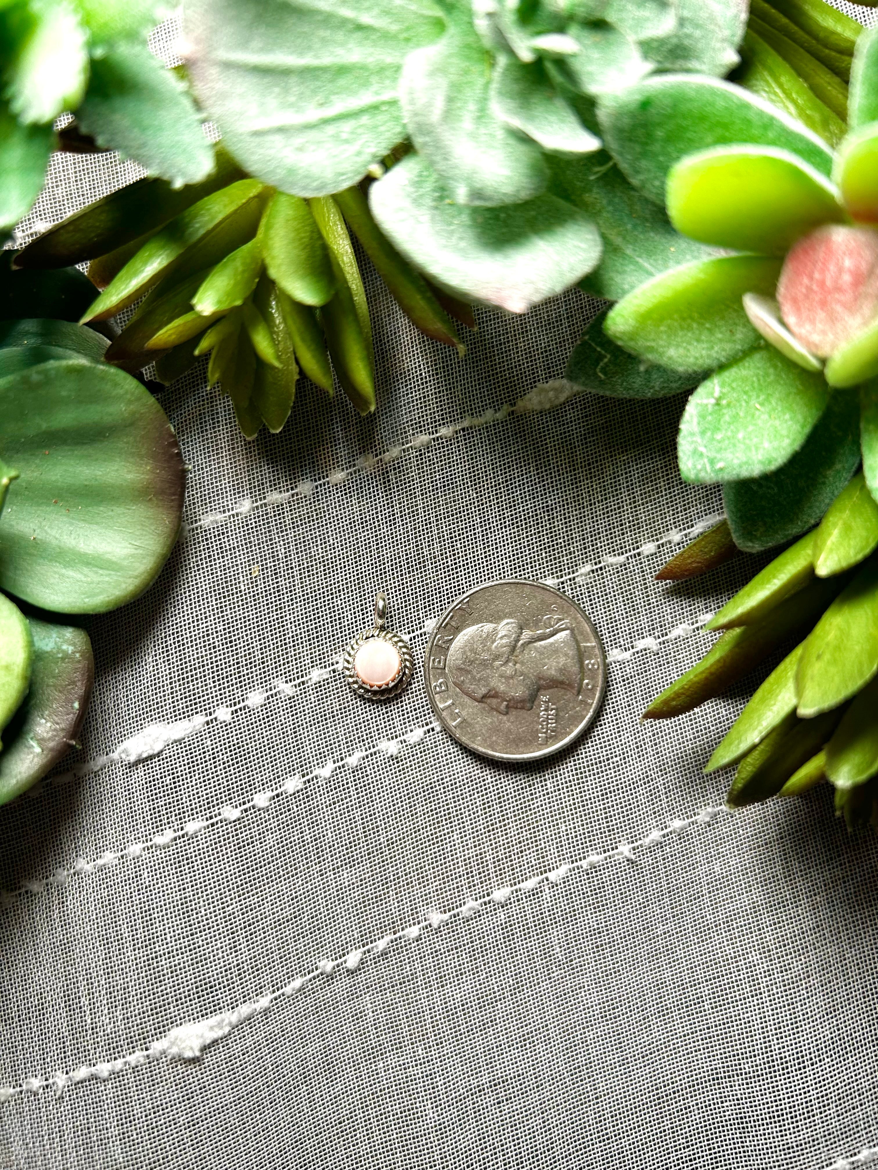Navajo Made Mother of Pearl & Sterling Silver Pendant. It measures 1/2 of an inch long and 3/8 of an inch wide. Pendant Only! Signed by the artist and stamped sterling silver.